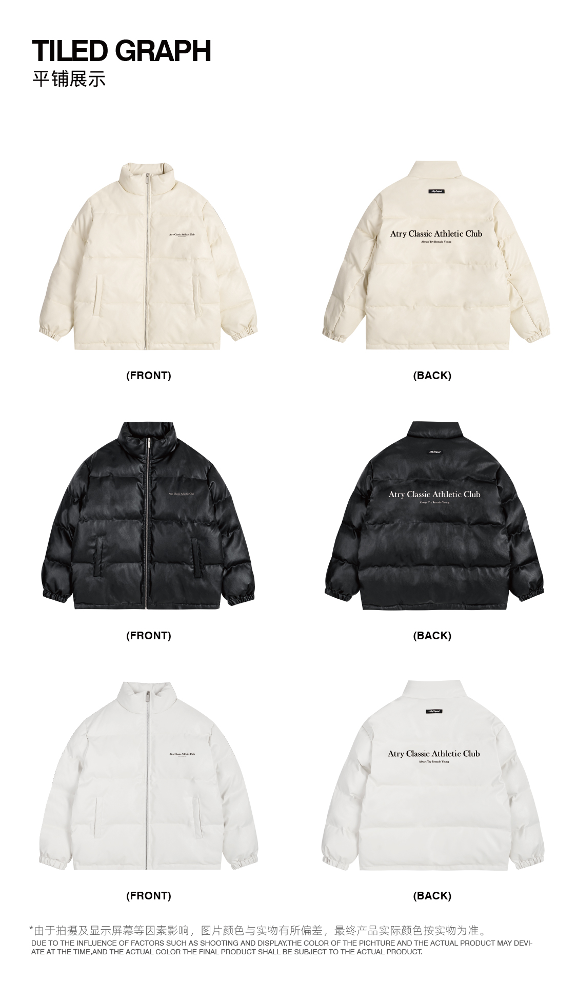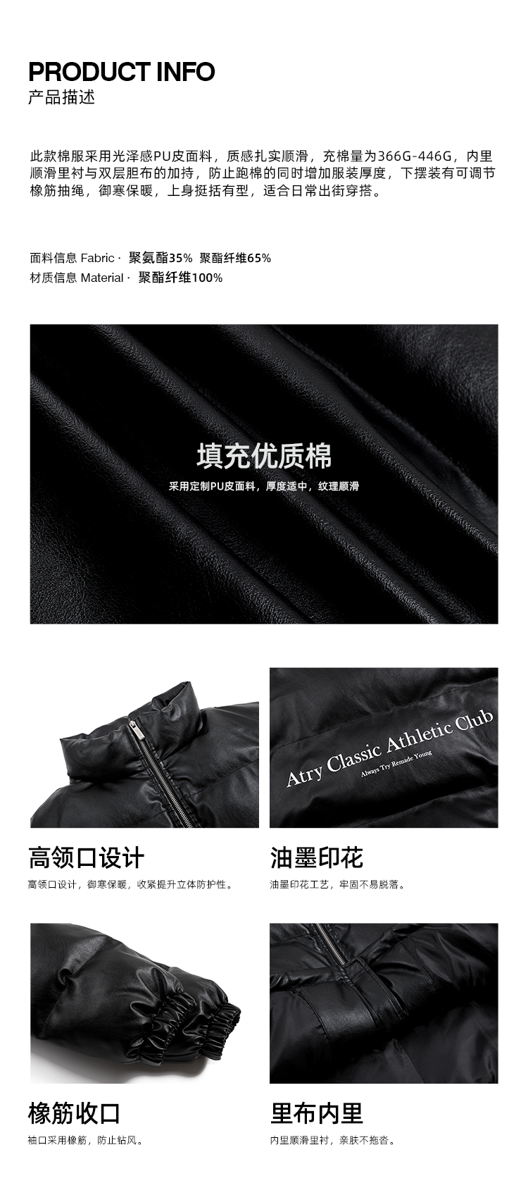 Atry Slogan Pu Leather Cotton Jacket Autumn and Winter New Trendy Brand Loose Thickened American Retro Warm Cotton Coat for Men
