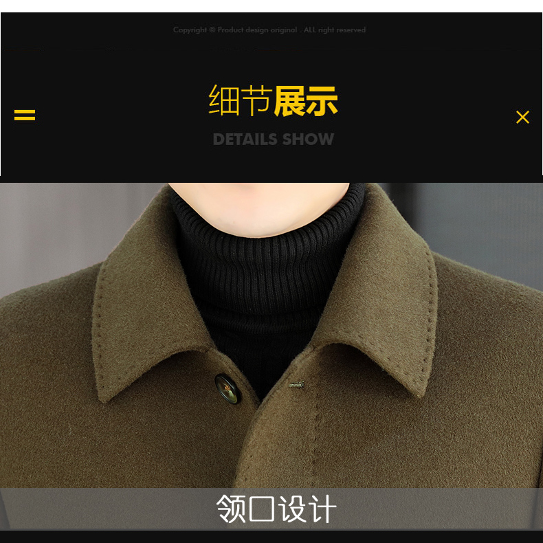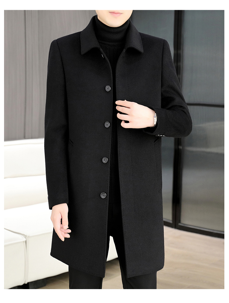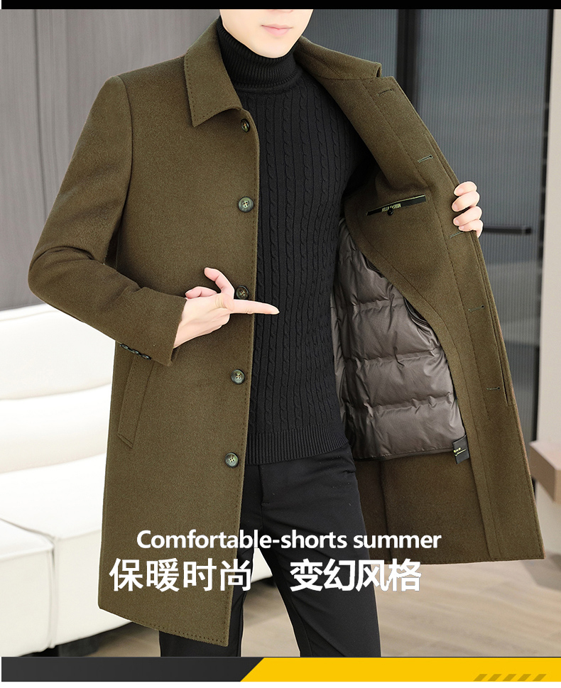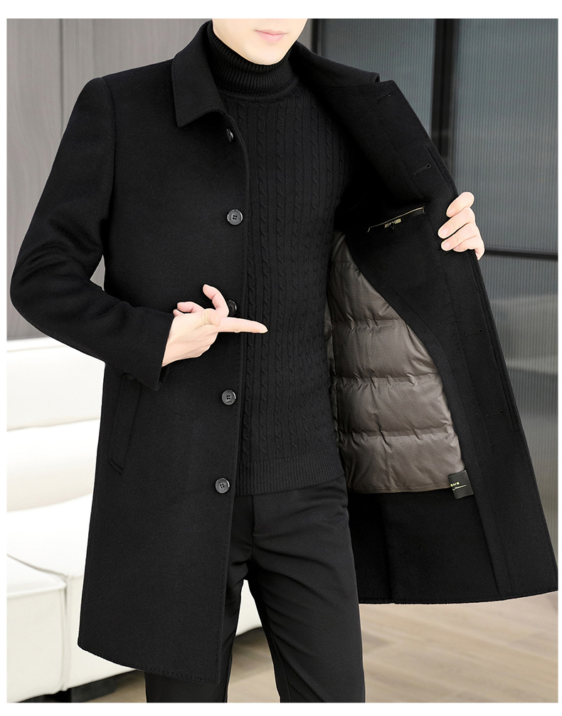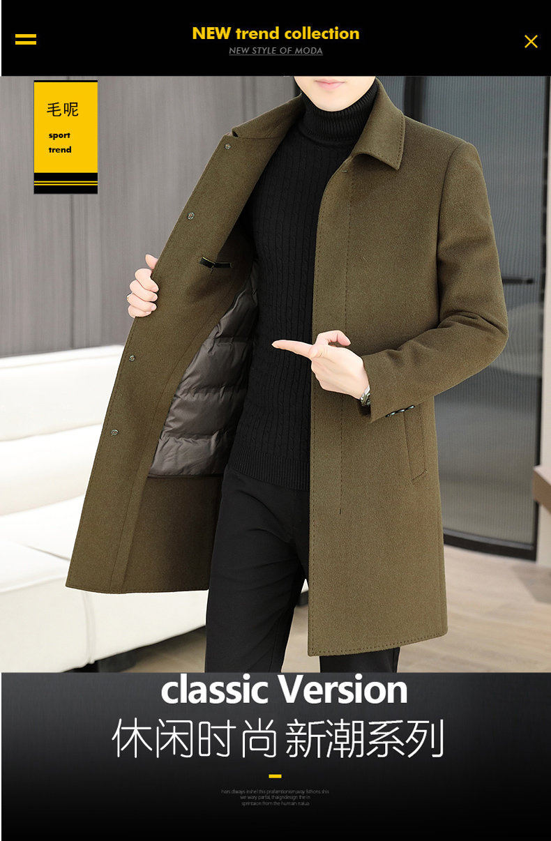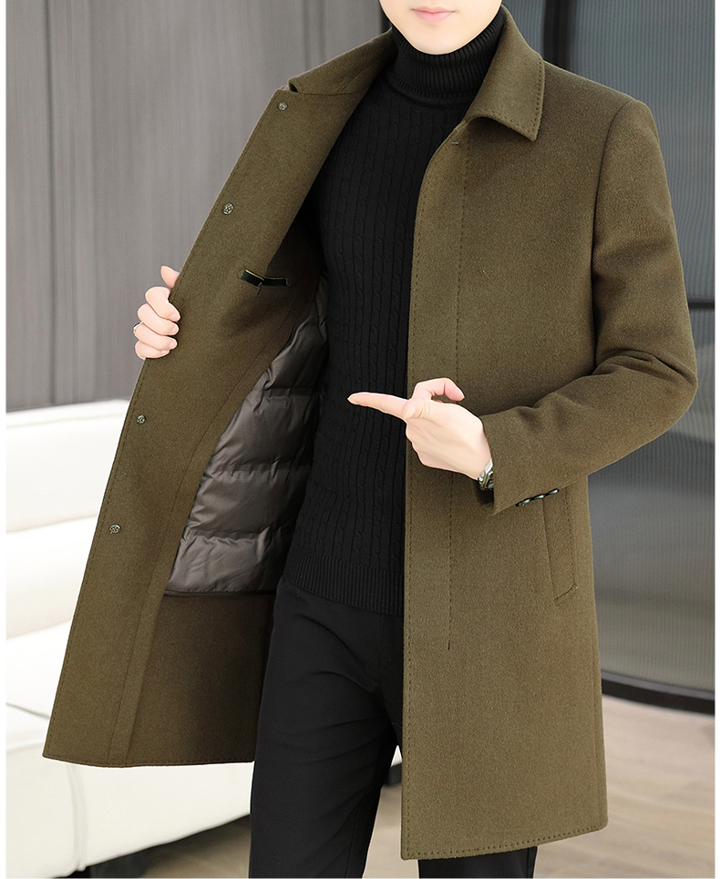 Hengyuanxiang Double-Sided Woolen Coat for Men, Long Business Casual Thickened Trench Coat with down Lining and Cashmere for Autumn and Winter