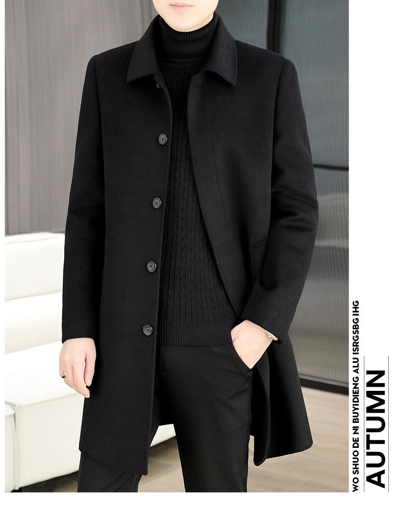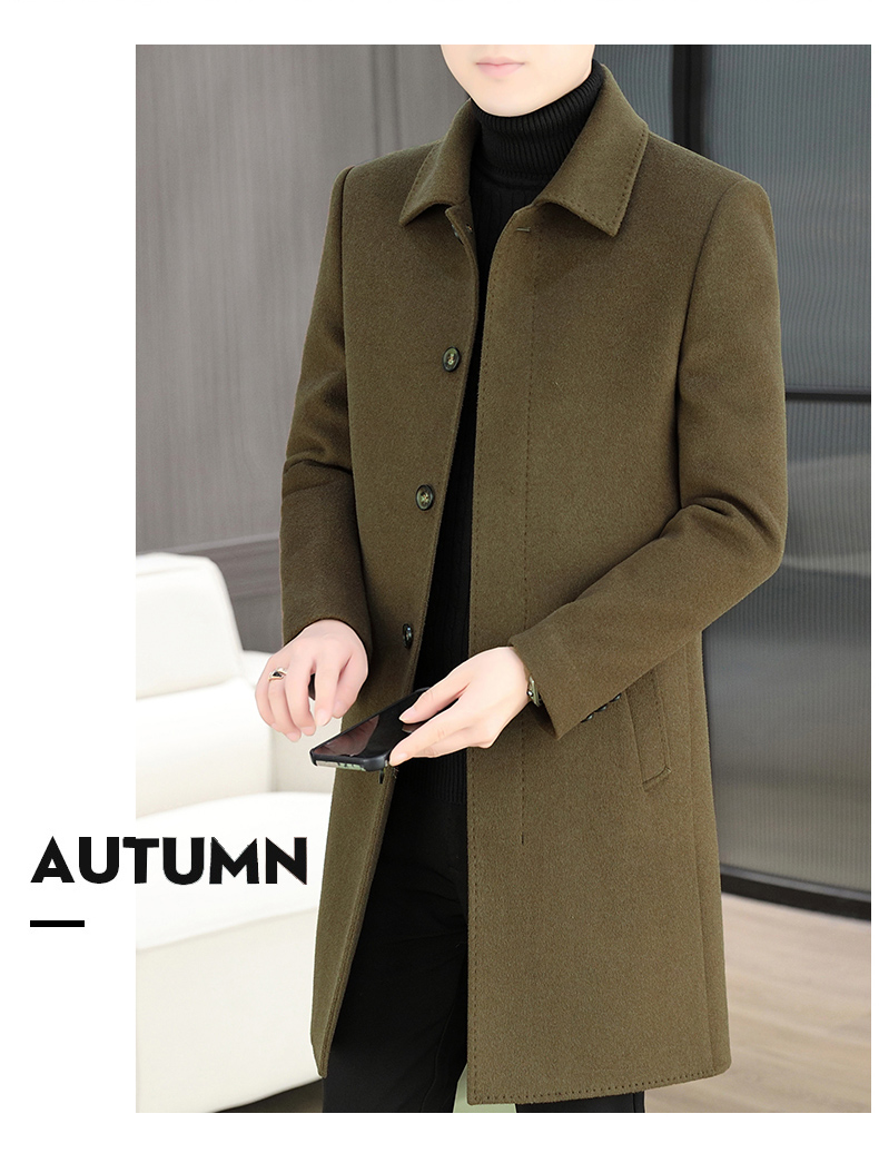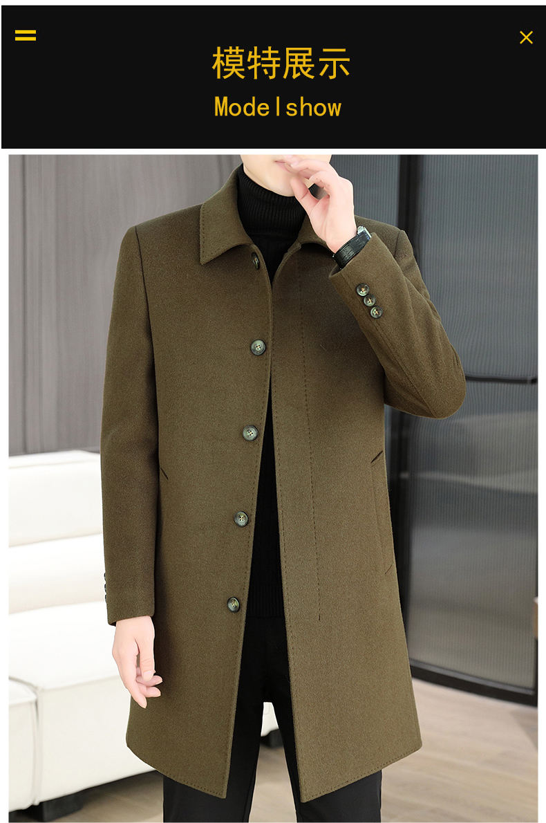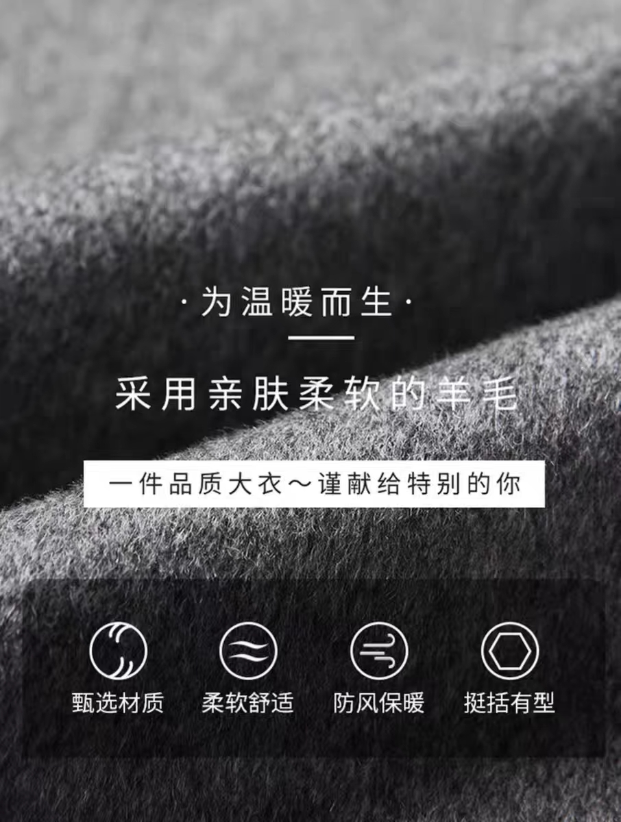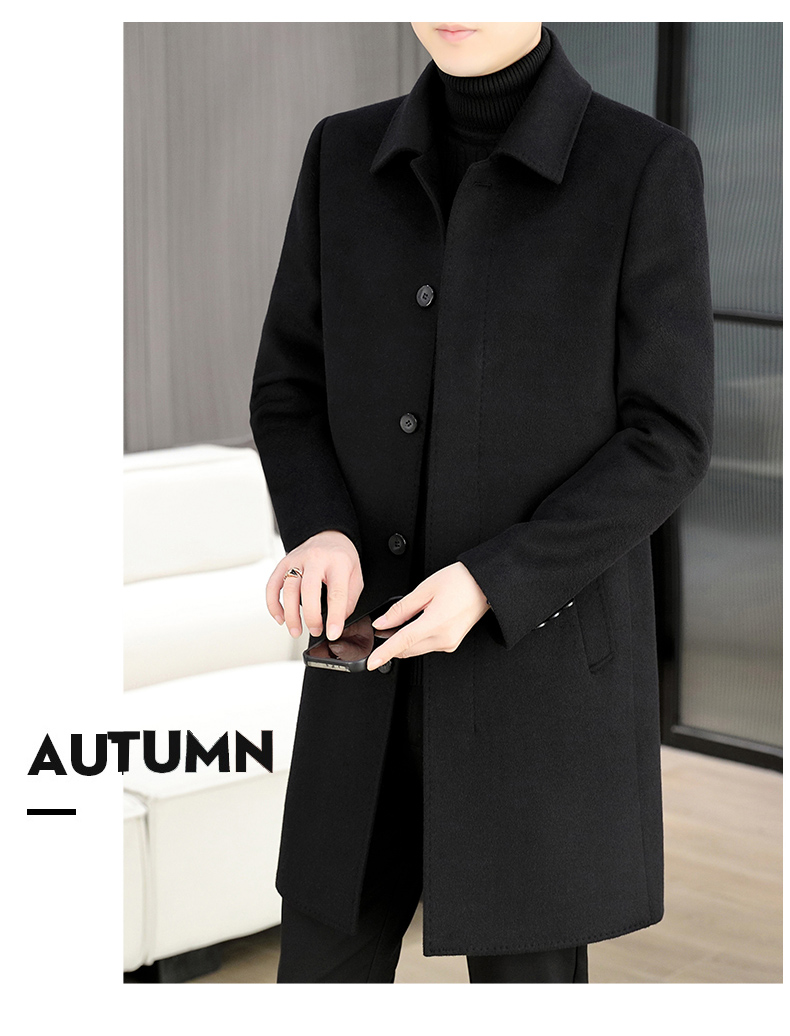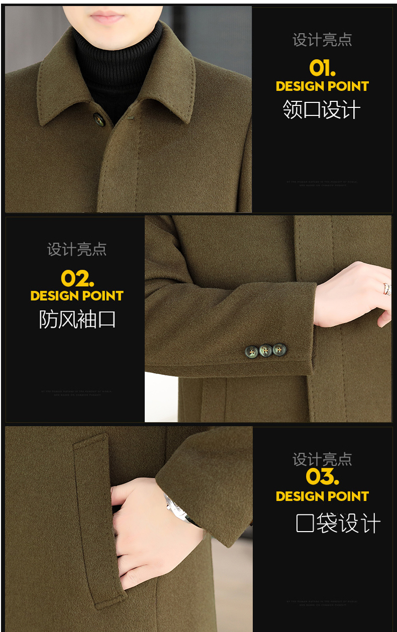 Hengyuanxiang Double-Sided Woolen Coat for Men, Long Business Casual Thickened Trench Coat with down Lining and Cashmere for Autumn and Winter