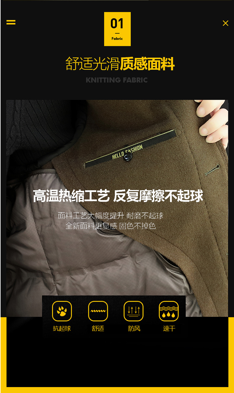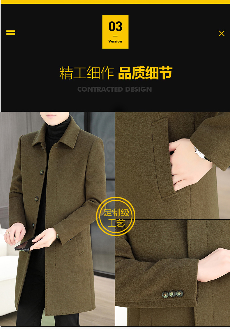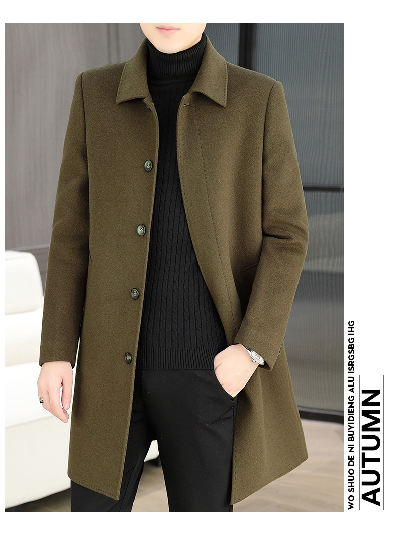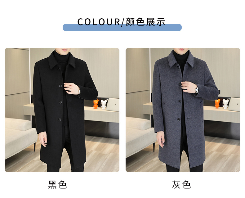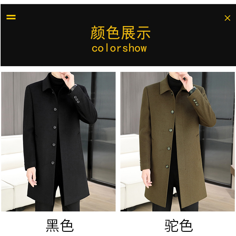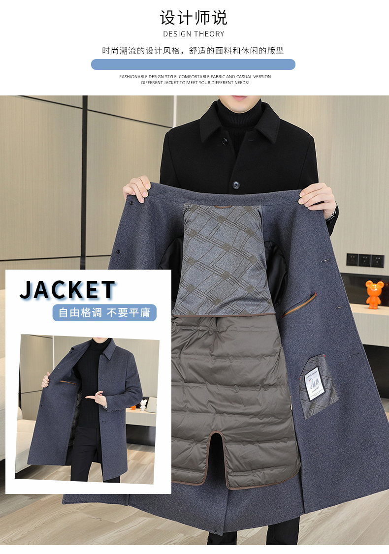 Hengyuanxiang Double-Sided Woolen Coat for Men, Long Business Casual Thickened Trench Coat with down Lining and Cashmere for Autumn and Winter