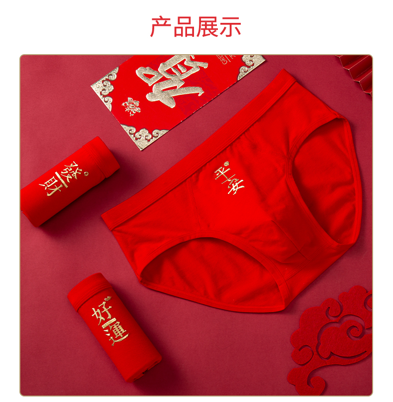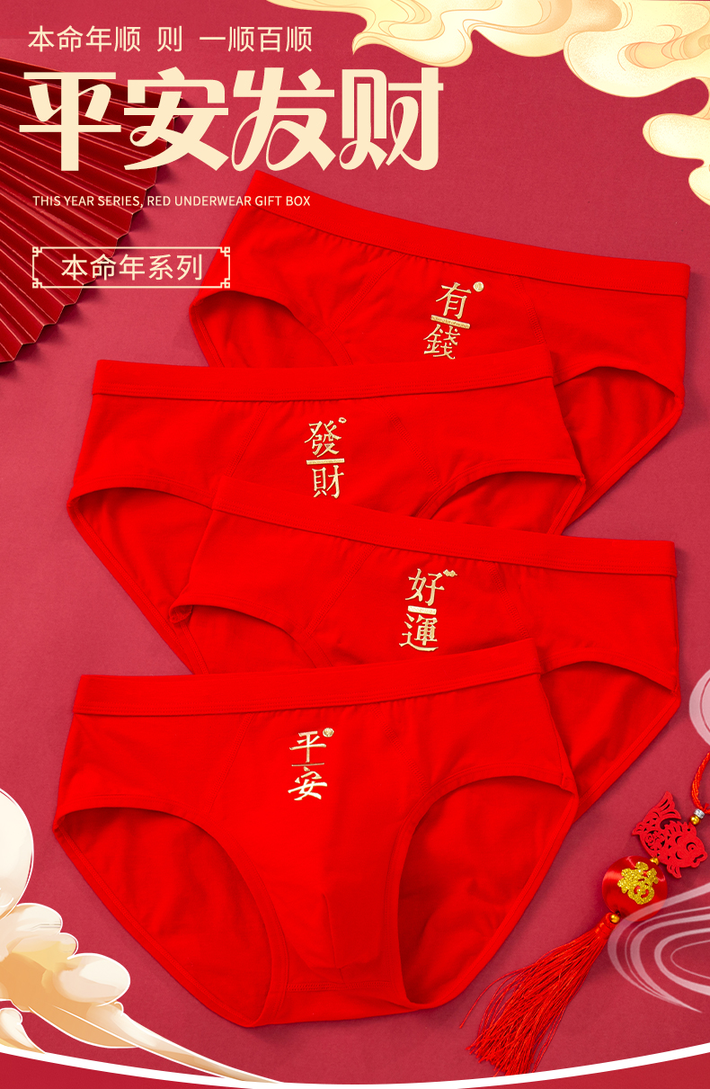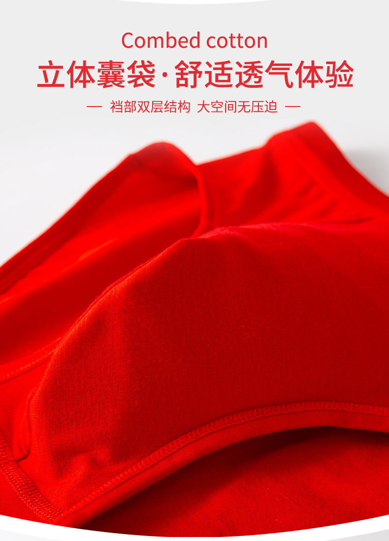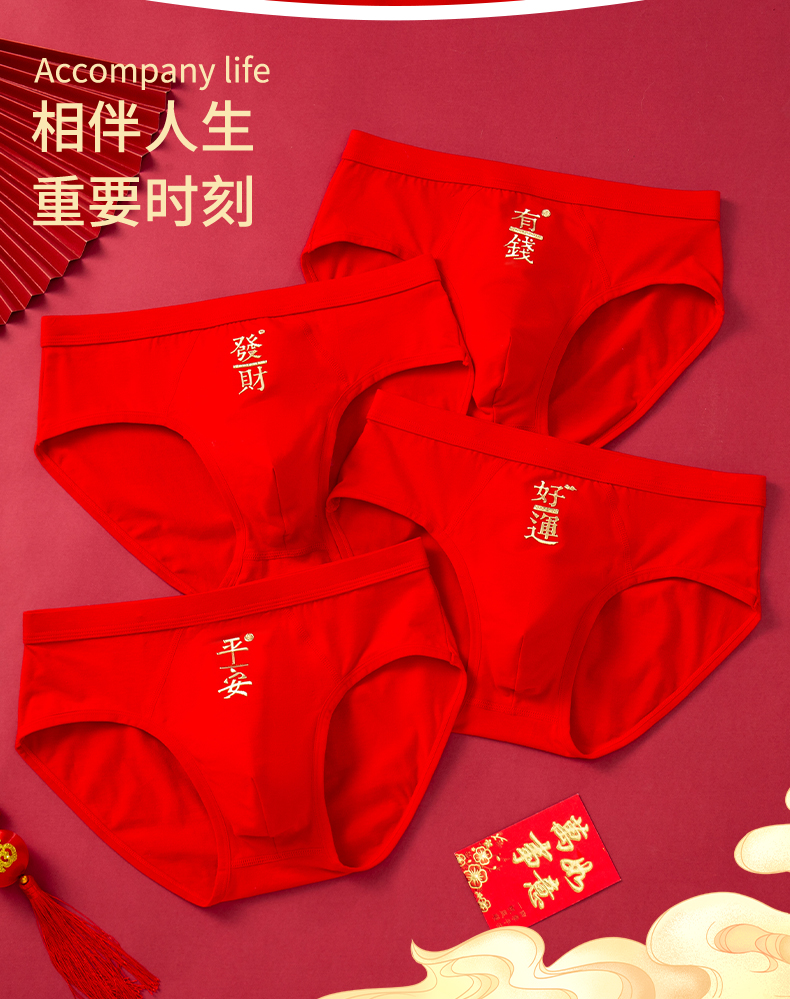 Men's Red Cotton Briefs for the Year of the Horse, Suitable as a Gift for the New Year or Wedding, Large Size, All-Cotton