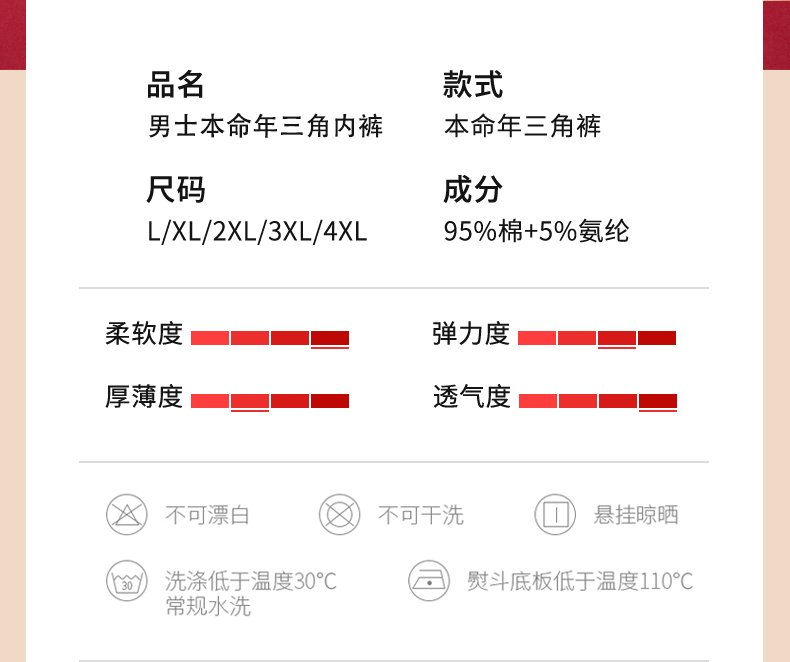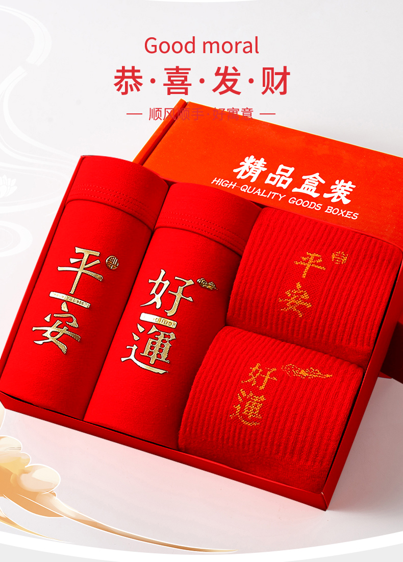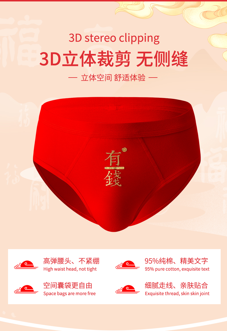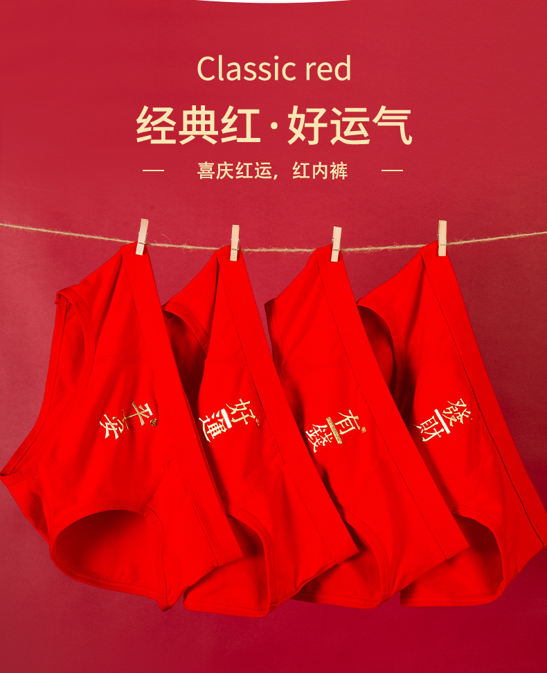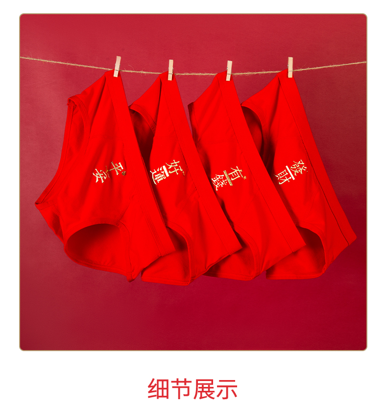 Men's Red Cotton Briefs for the Year of the Horse, Suitable as a Gift for the New Year or Wedding, Large Size, All-Cotton