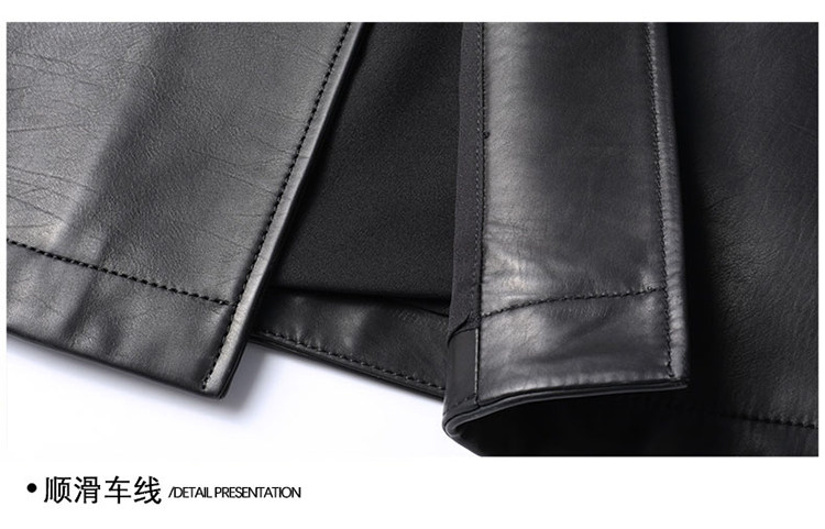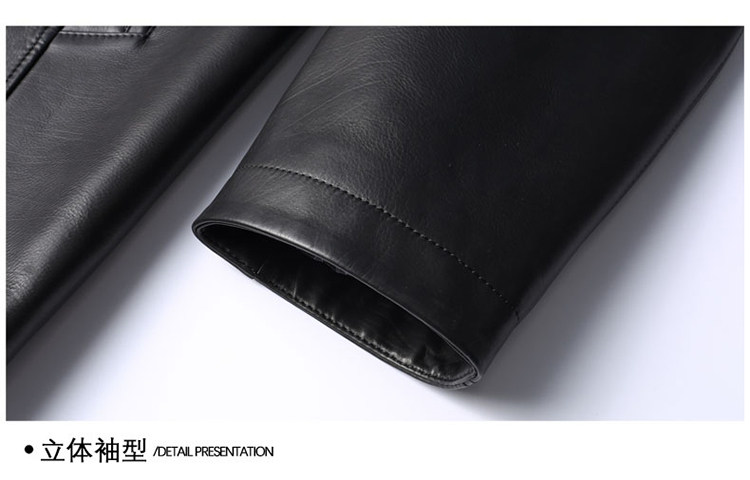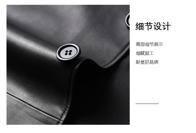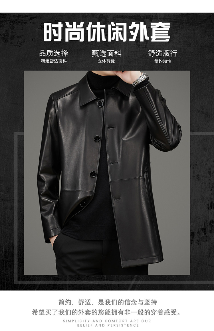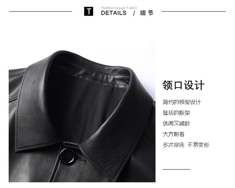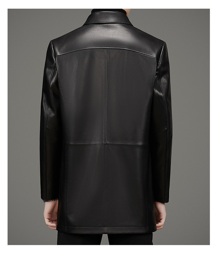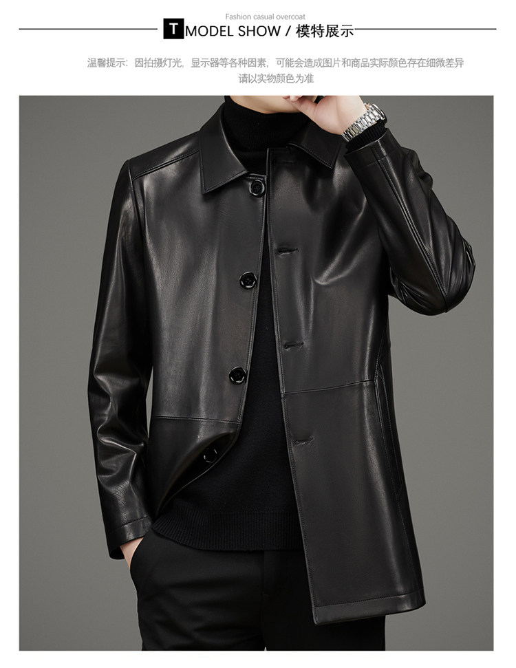 Pierre Cardin Autumn Collection First Layer Calfskin Genuine Leather Men's Mid-Length Trench Coat with Turn-Down Collar Leather Jacket