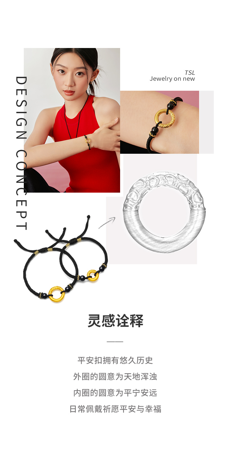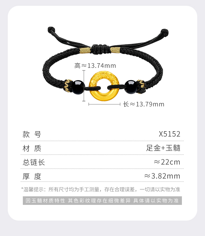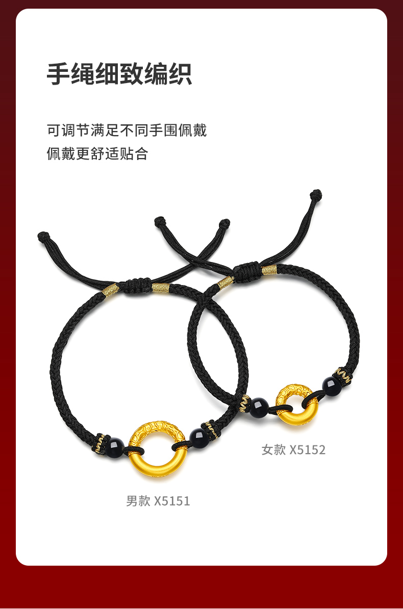 Tsl Xie Ruilin Peace Buckle Gold Bracelet 5D Hard Gold Cord Couple X5151-X5152