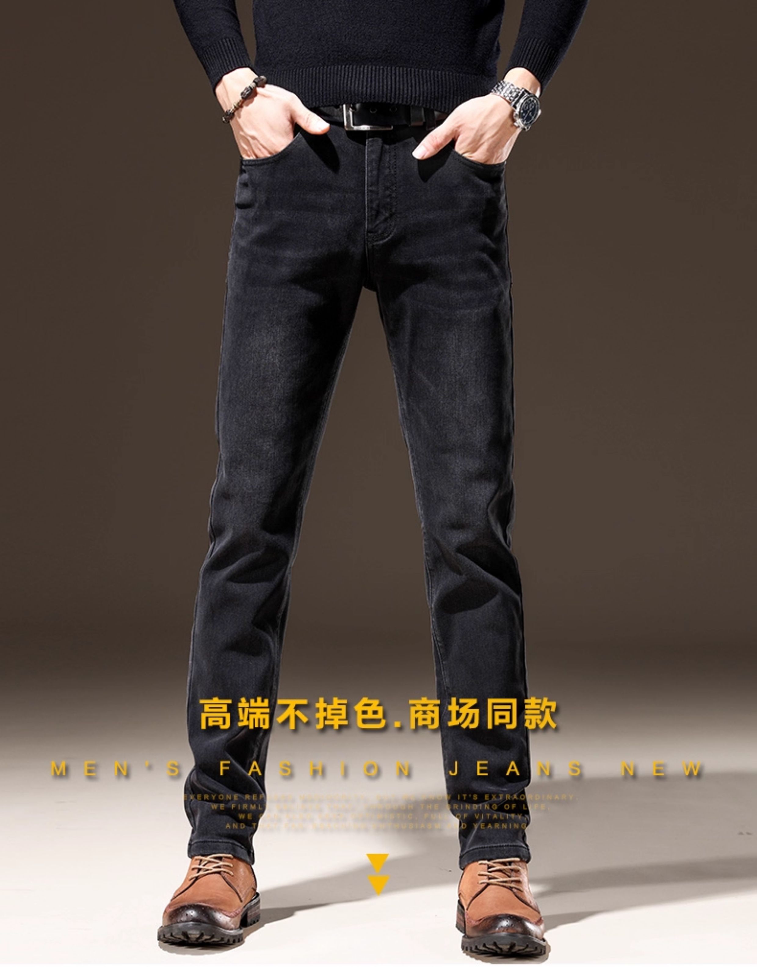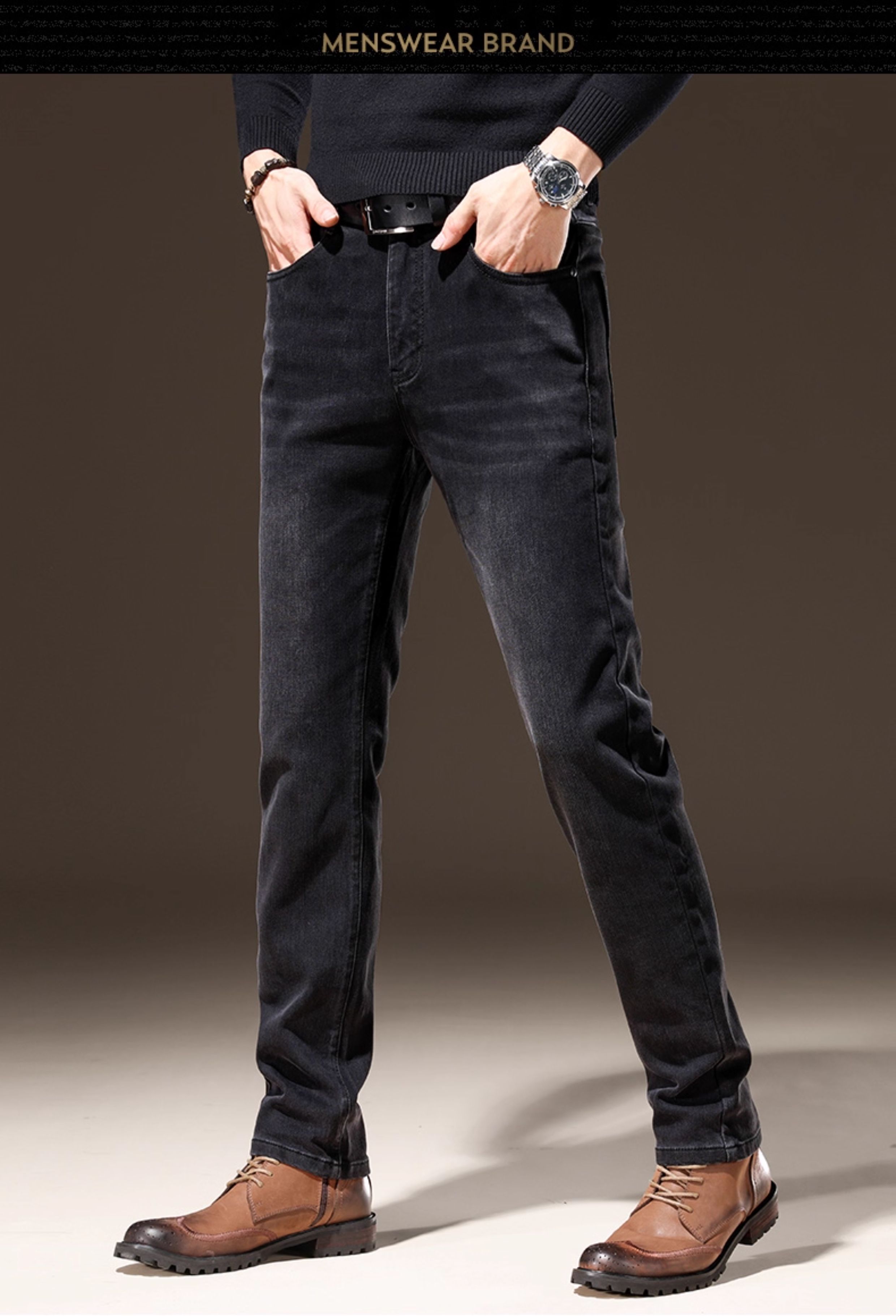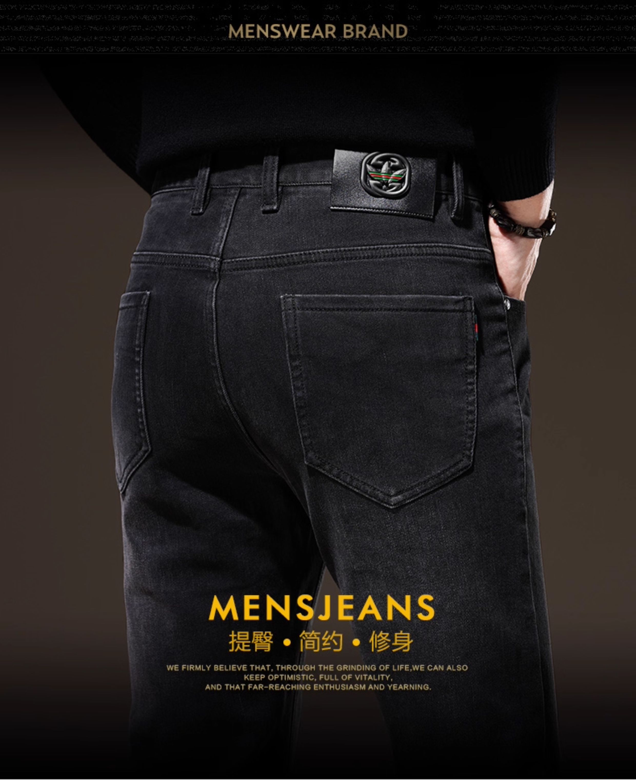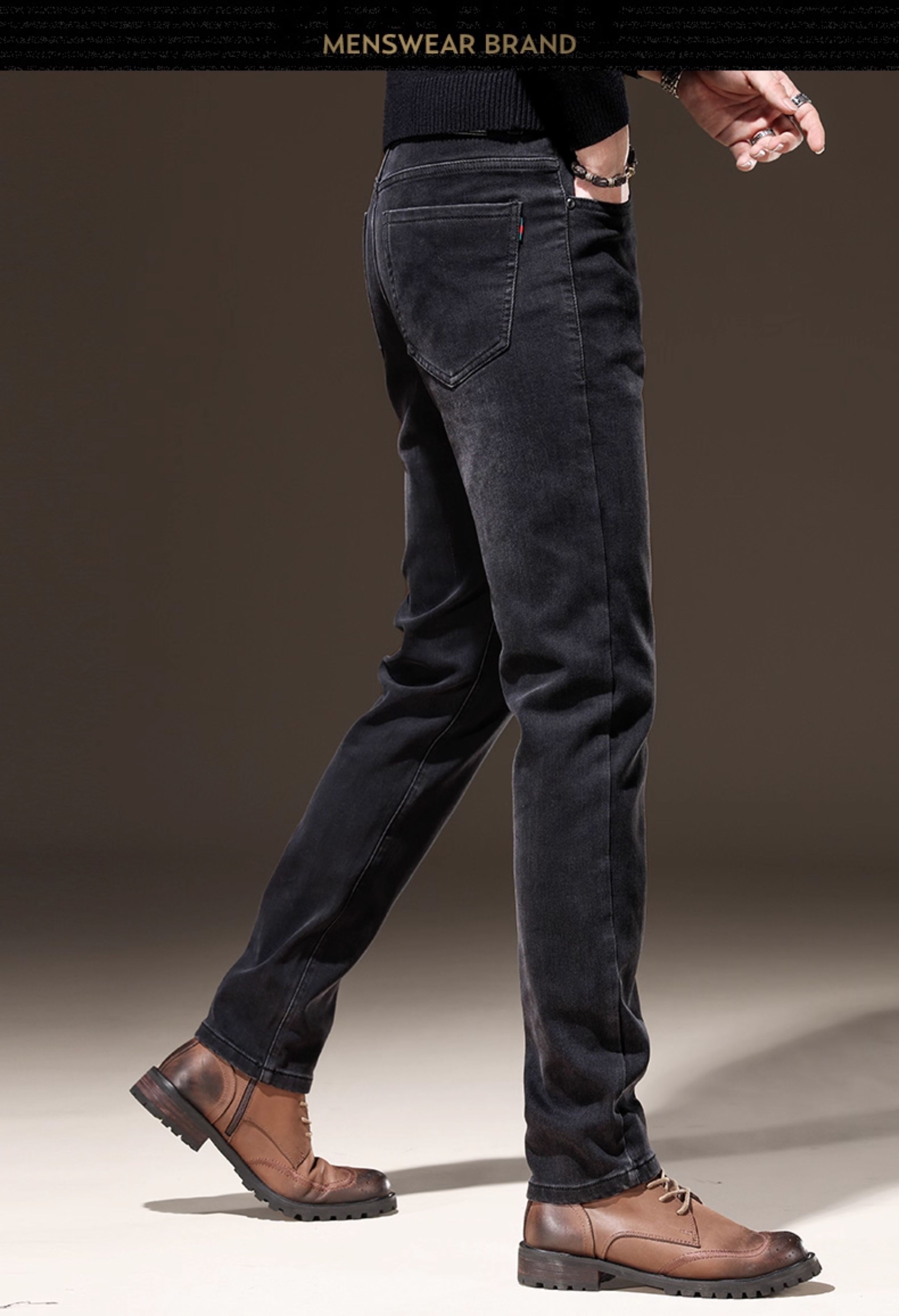 Light Luxury Straight-Leg Men's Jeans 2025 New High-End Brand Autumn and Winter Fleece-Lined Casual Pants Men's Long Pants