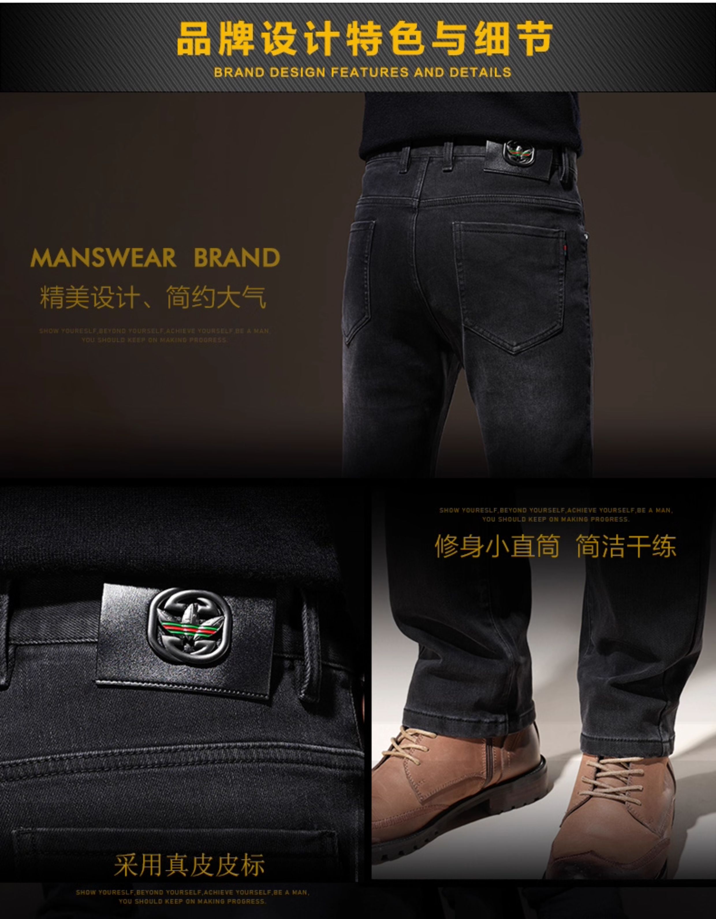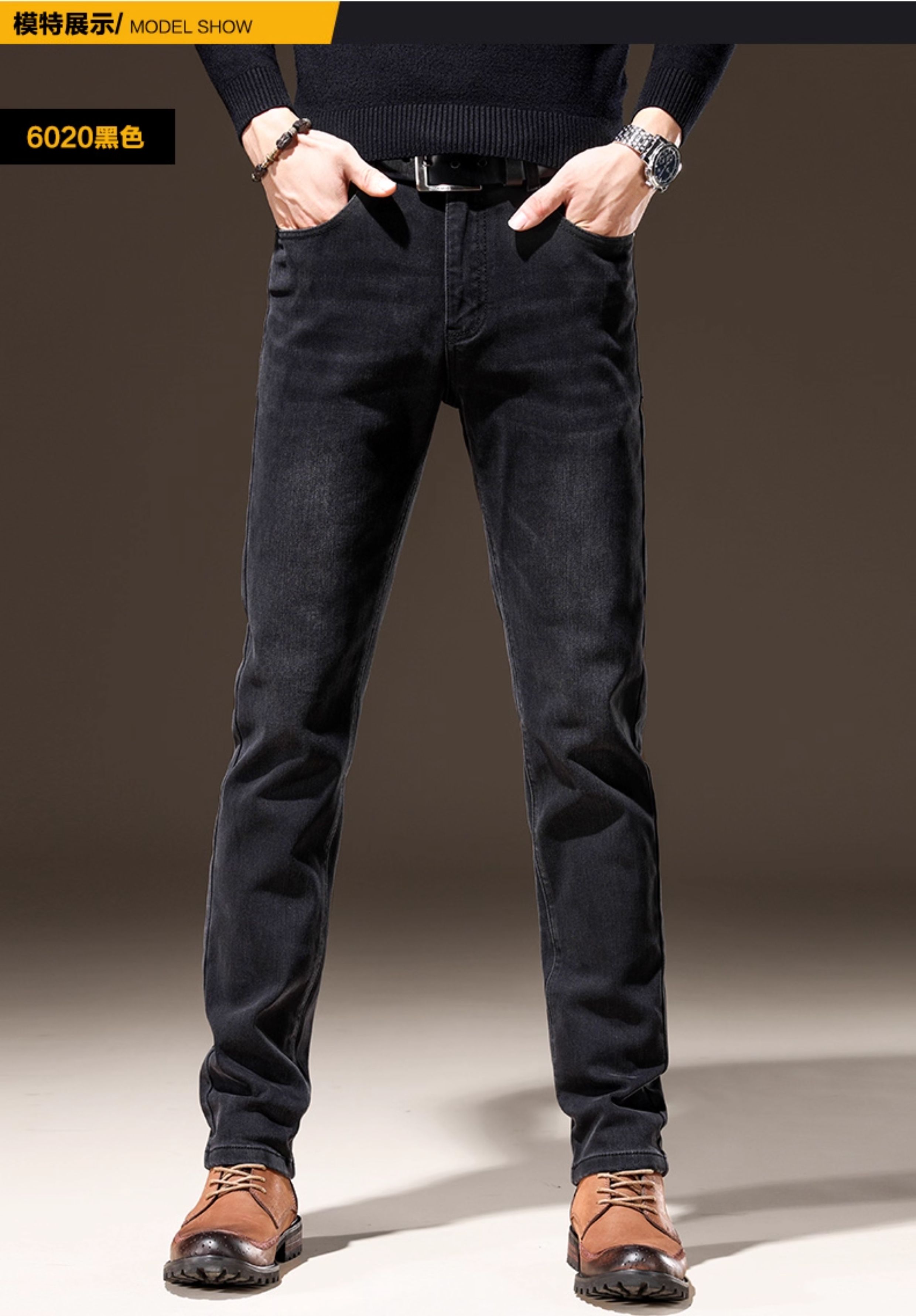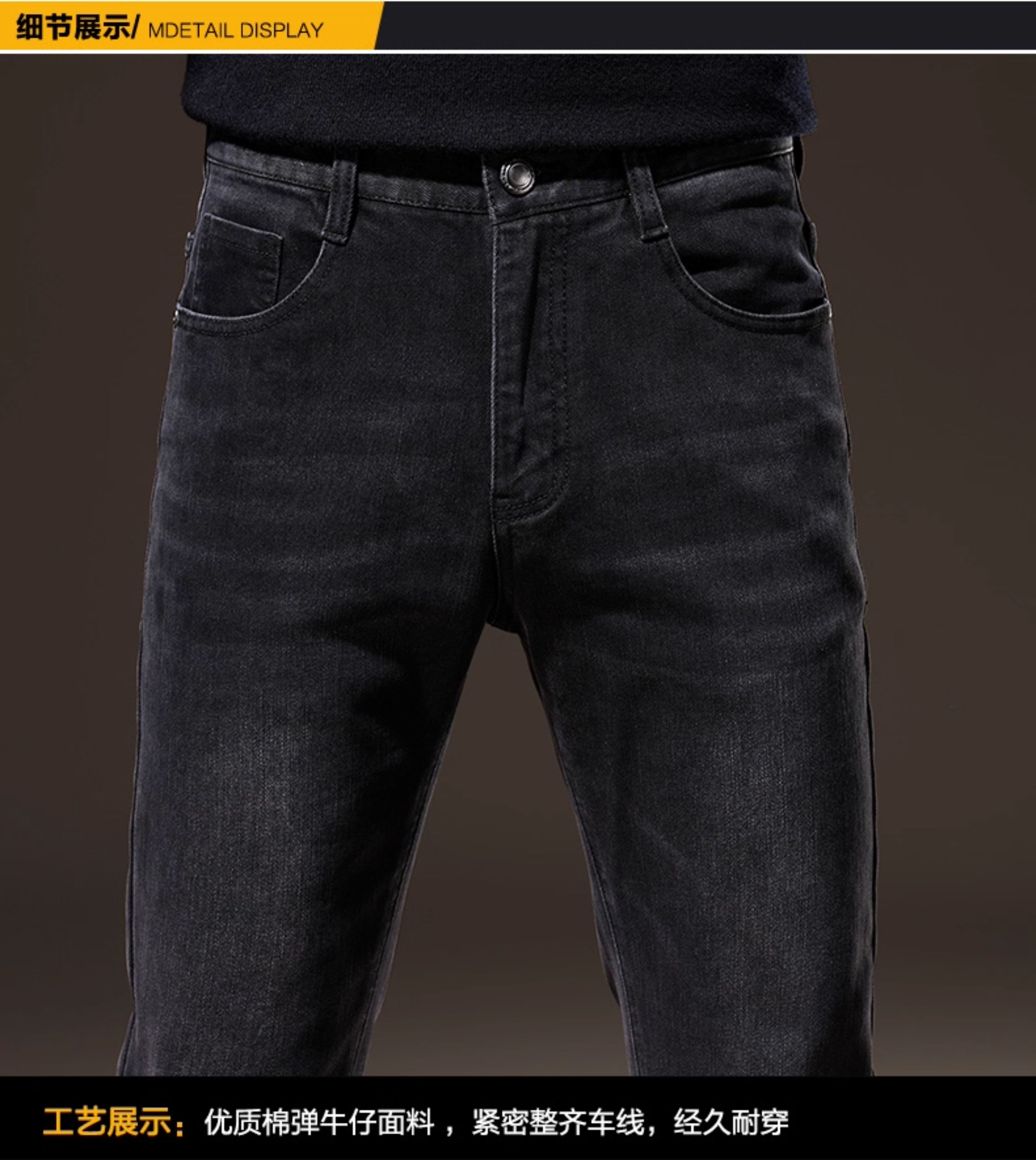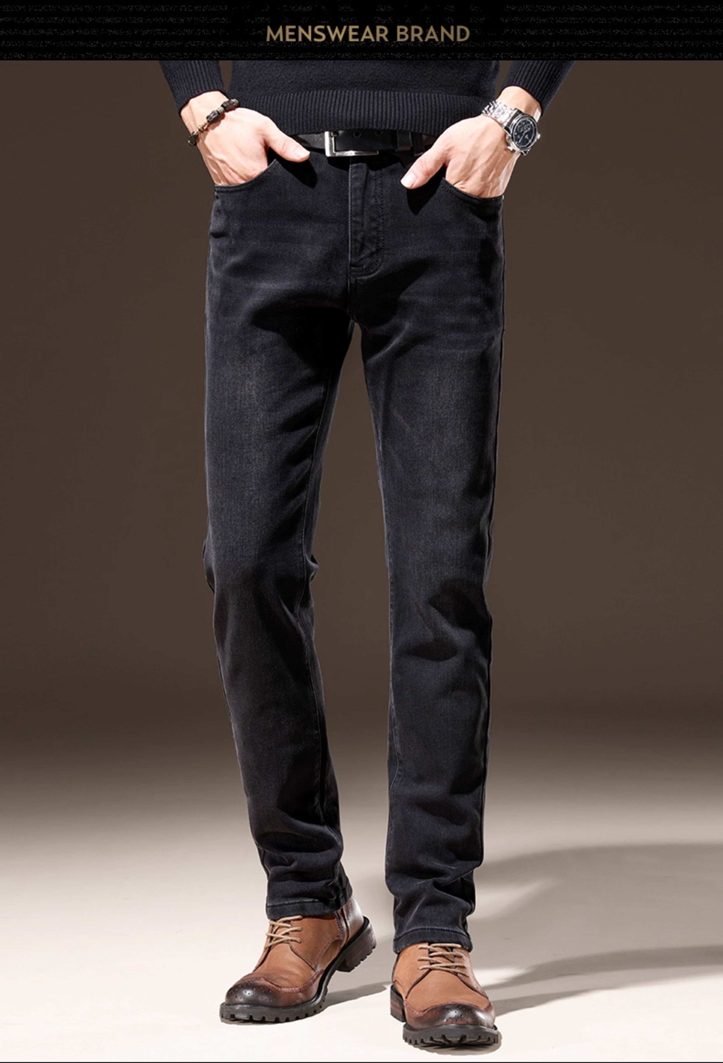 Light Luxury Straight-Leg Men's Jeans 2025 New High-End Brand Autumn and Winter Fleece-Lined Casual Pants Men's Long Pants