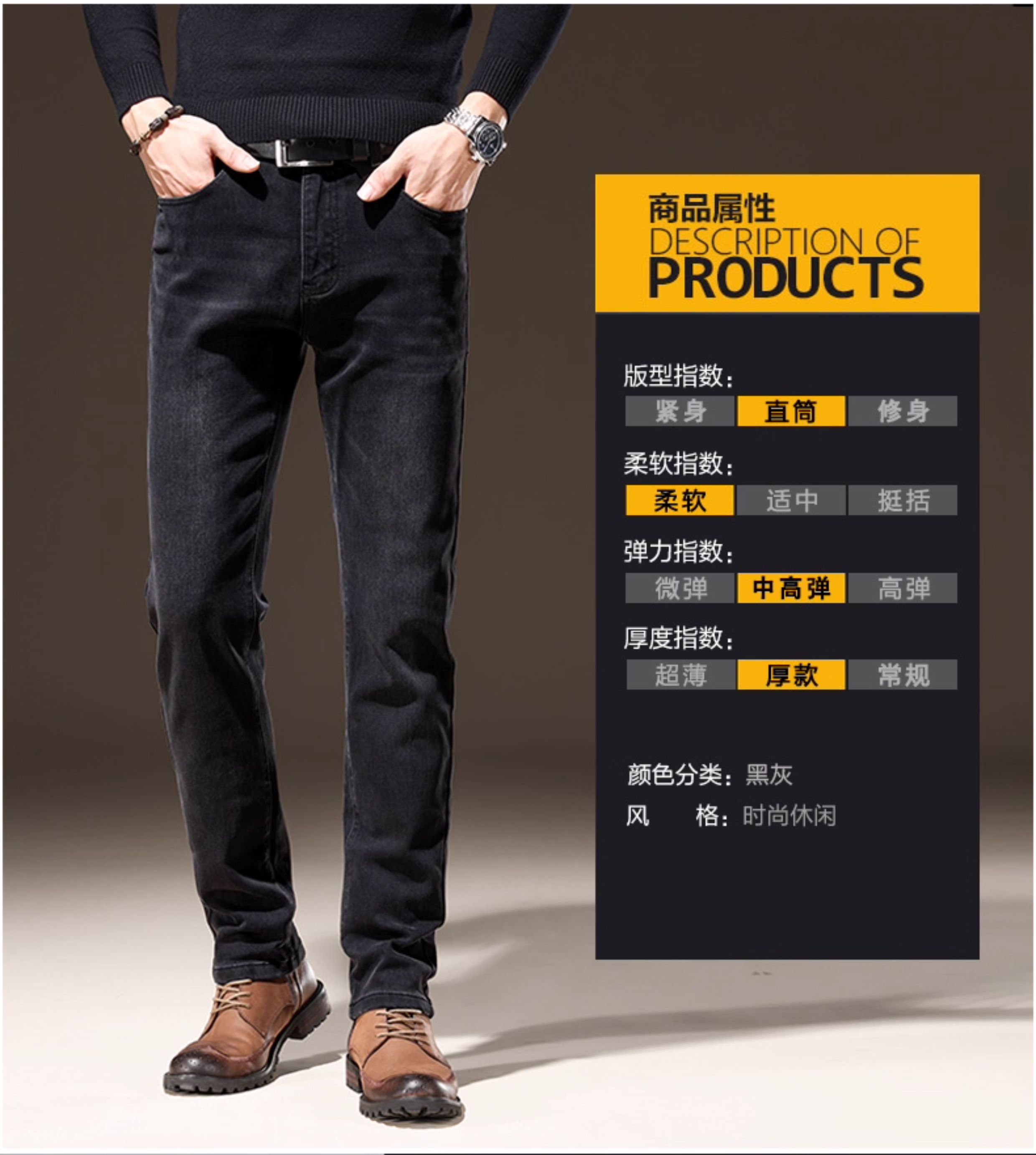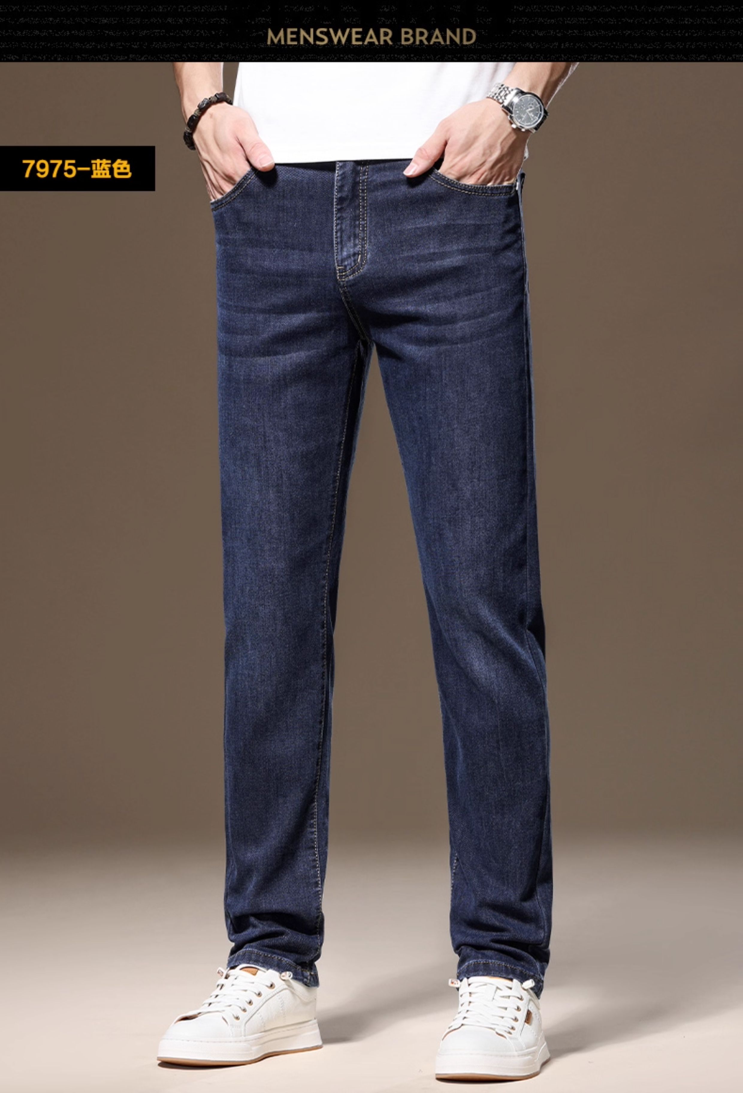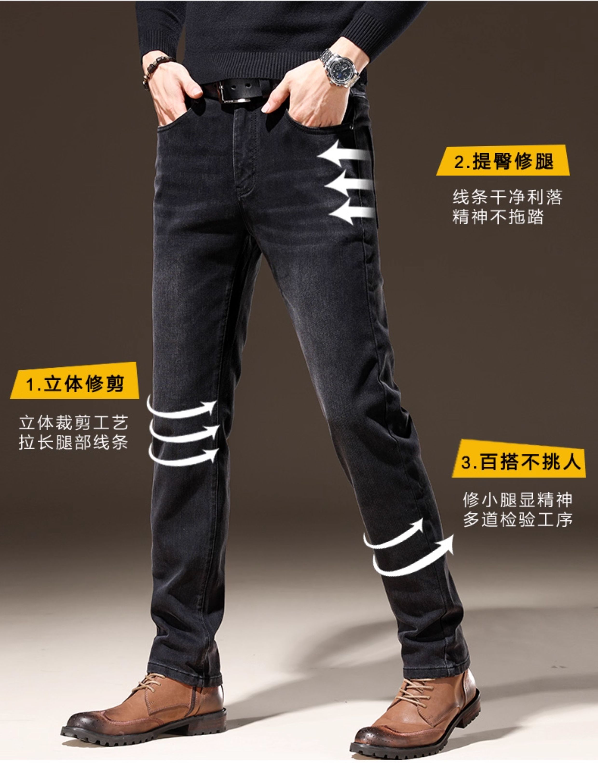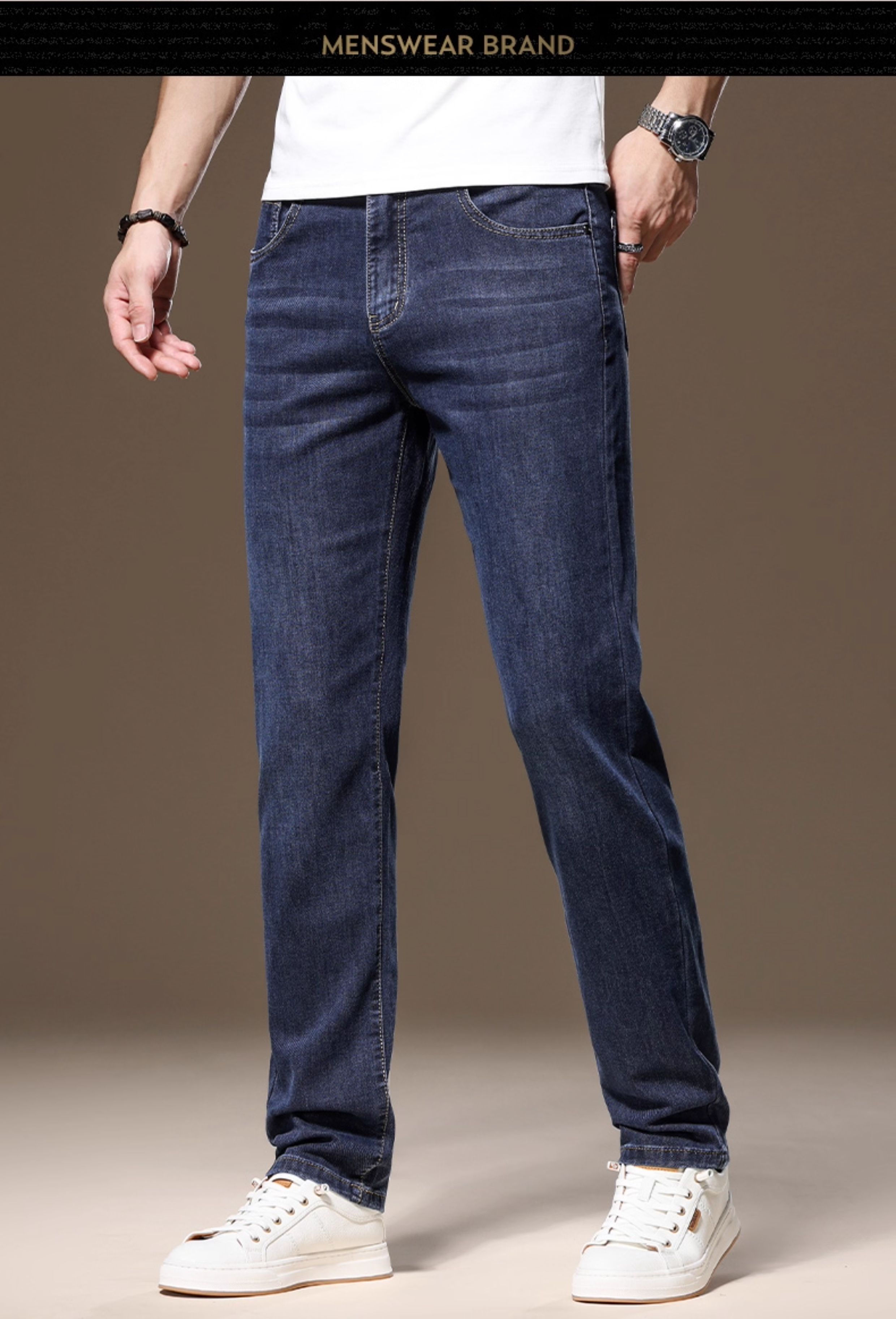 Light Luxury Straight-Leg Men's Jeans 2025 New High-End Brand Autumn and Winter Fleece-Lined Casual Pants Men's Long Pants