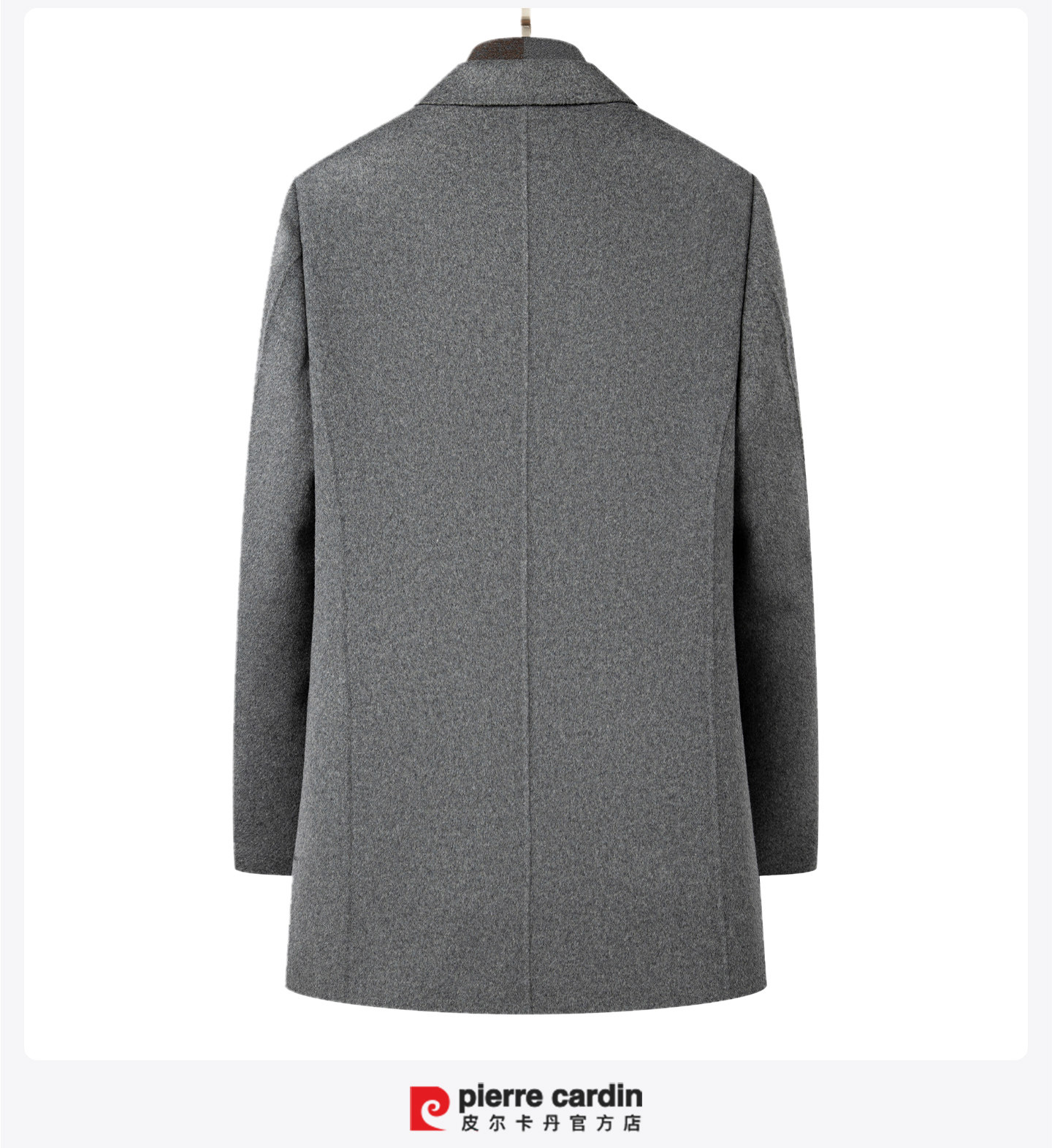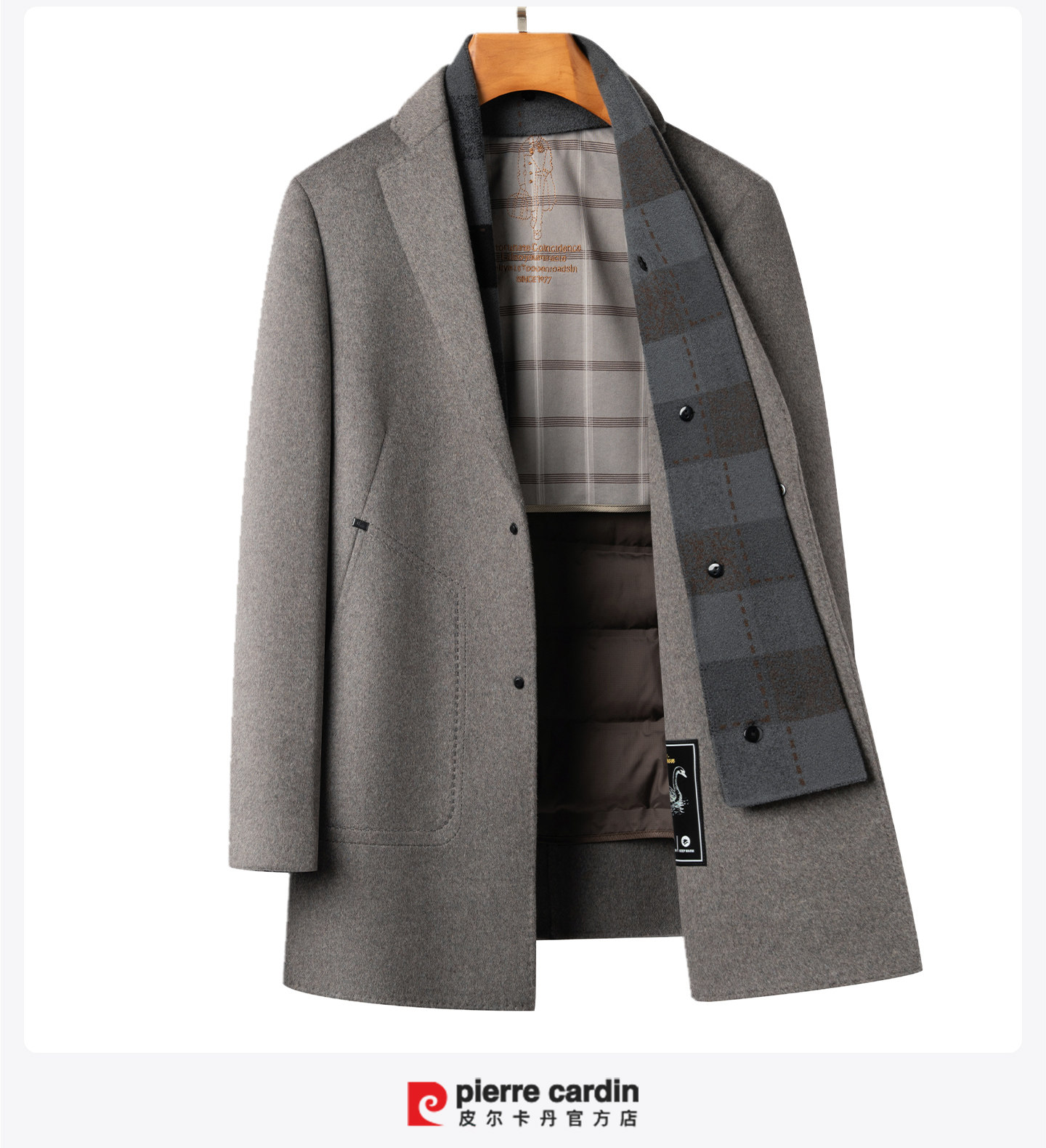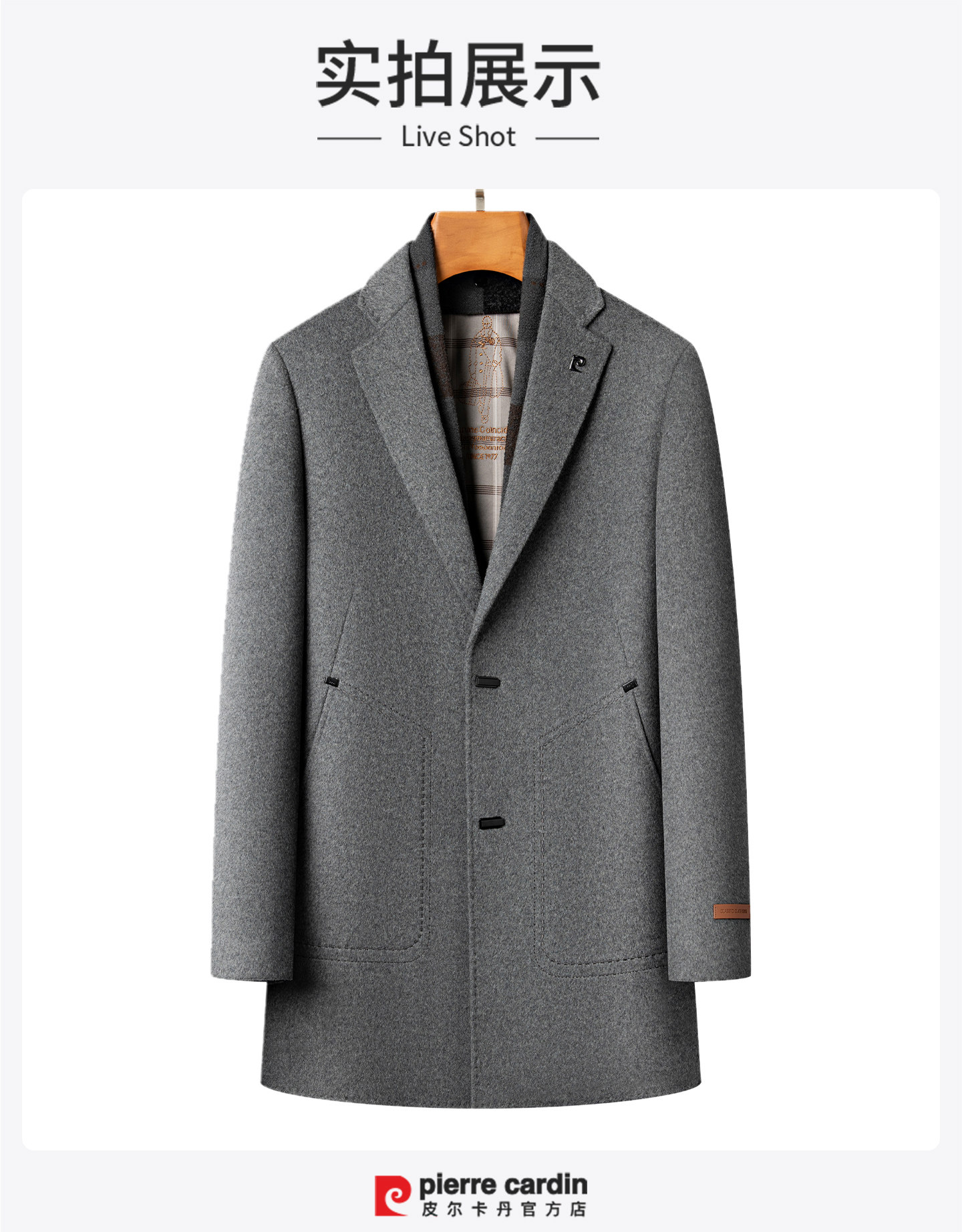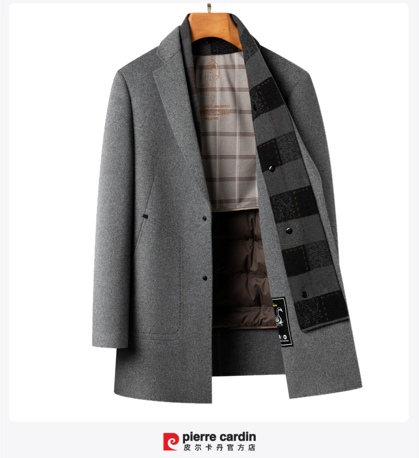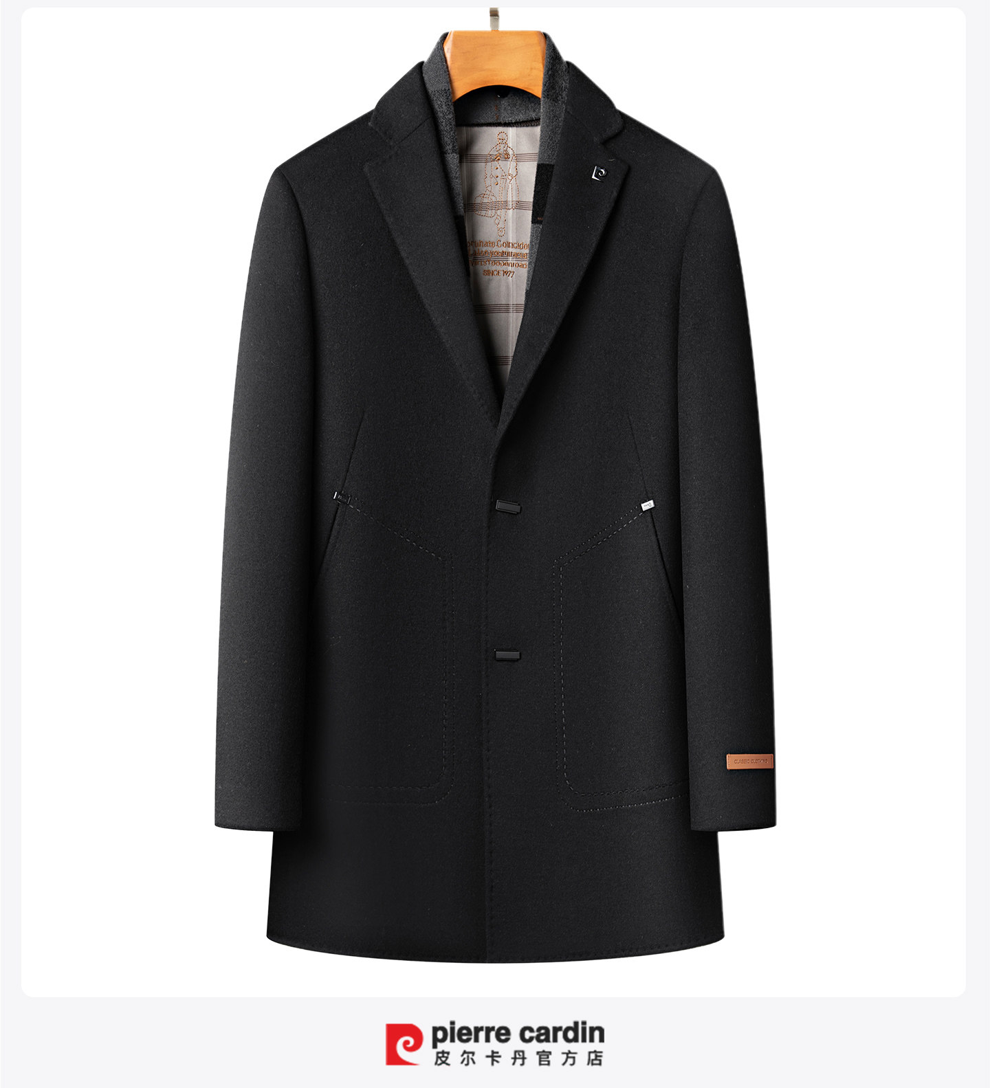 Pierre Cardin Cashmere Coat for Men, Mid-Length, Autumn and Winter, Dad Style, Middle-Aged Woolen Scarf Collar, Thickened Overcoat
