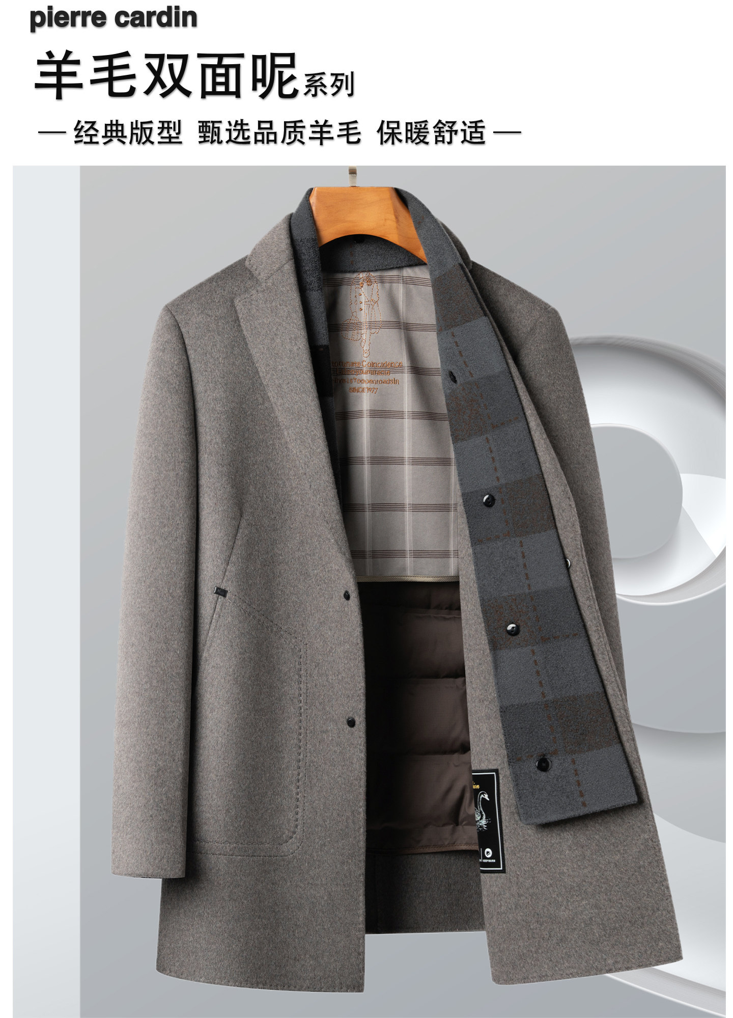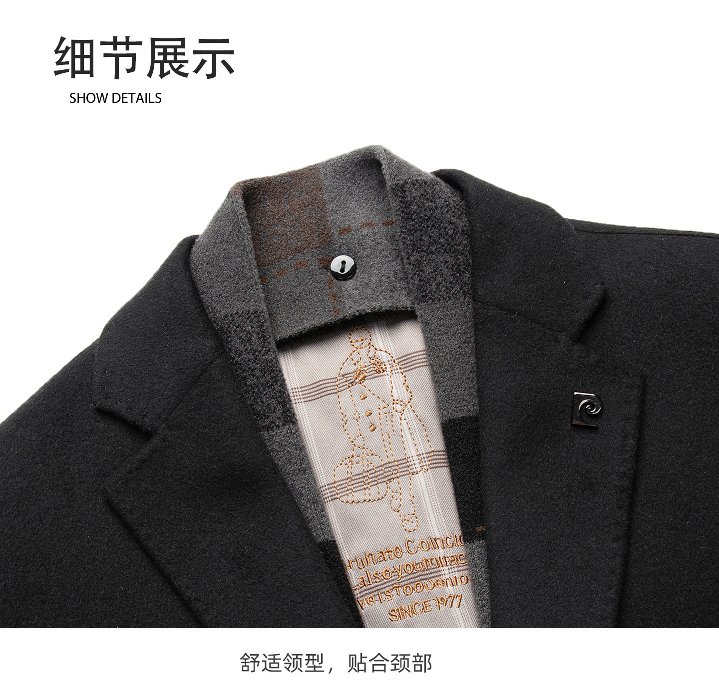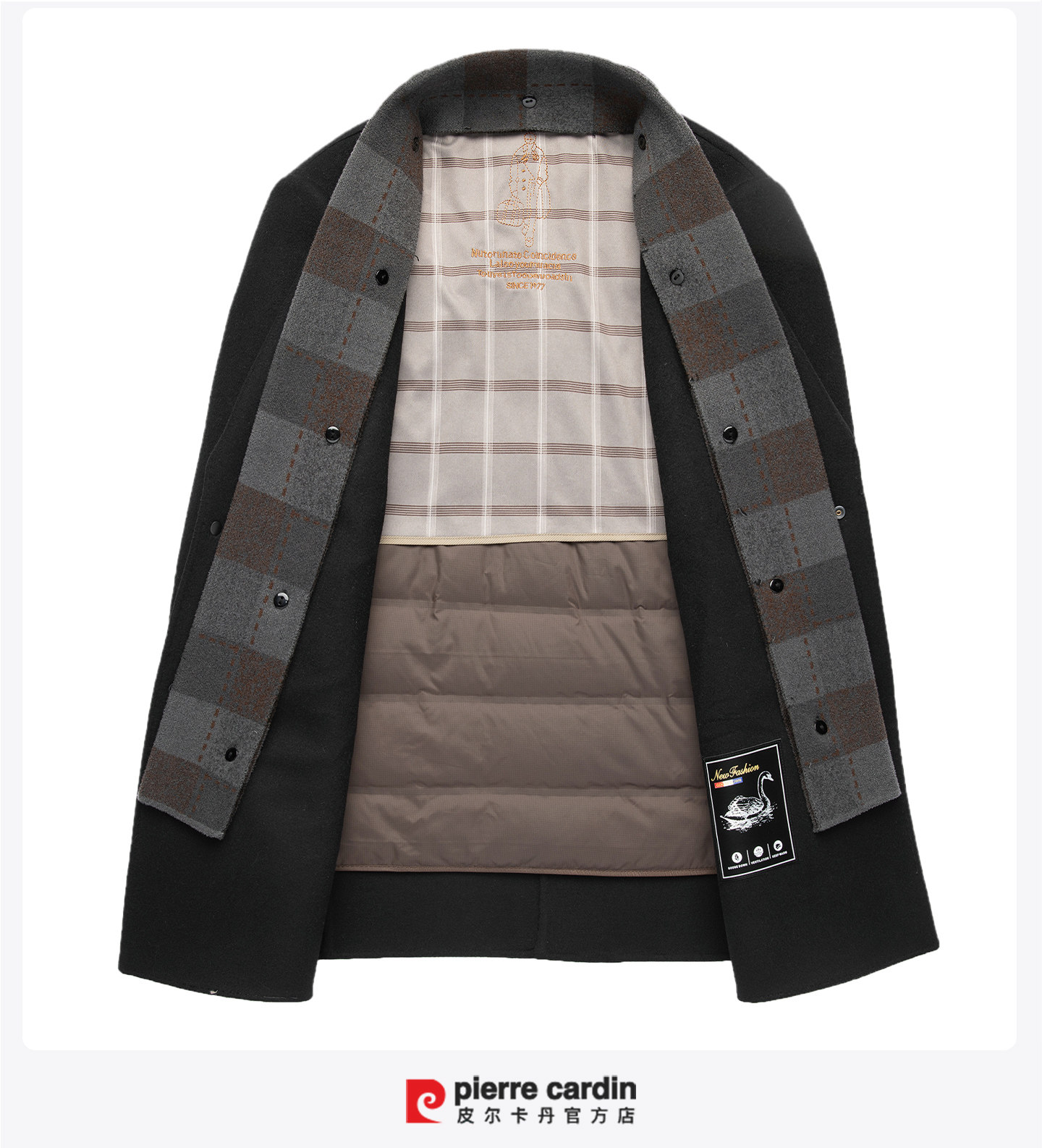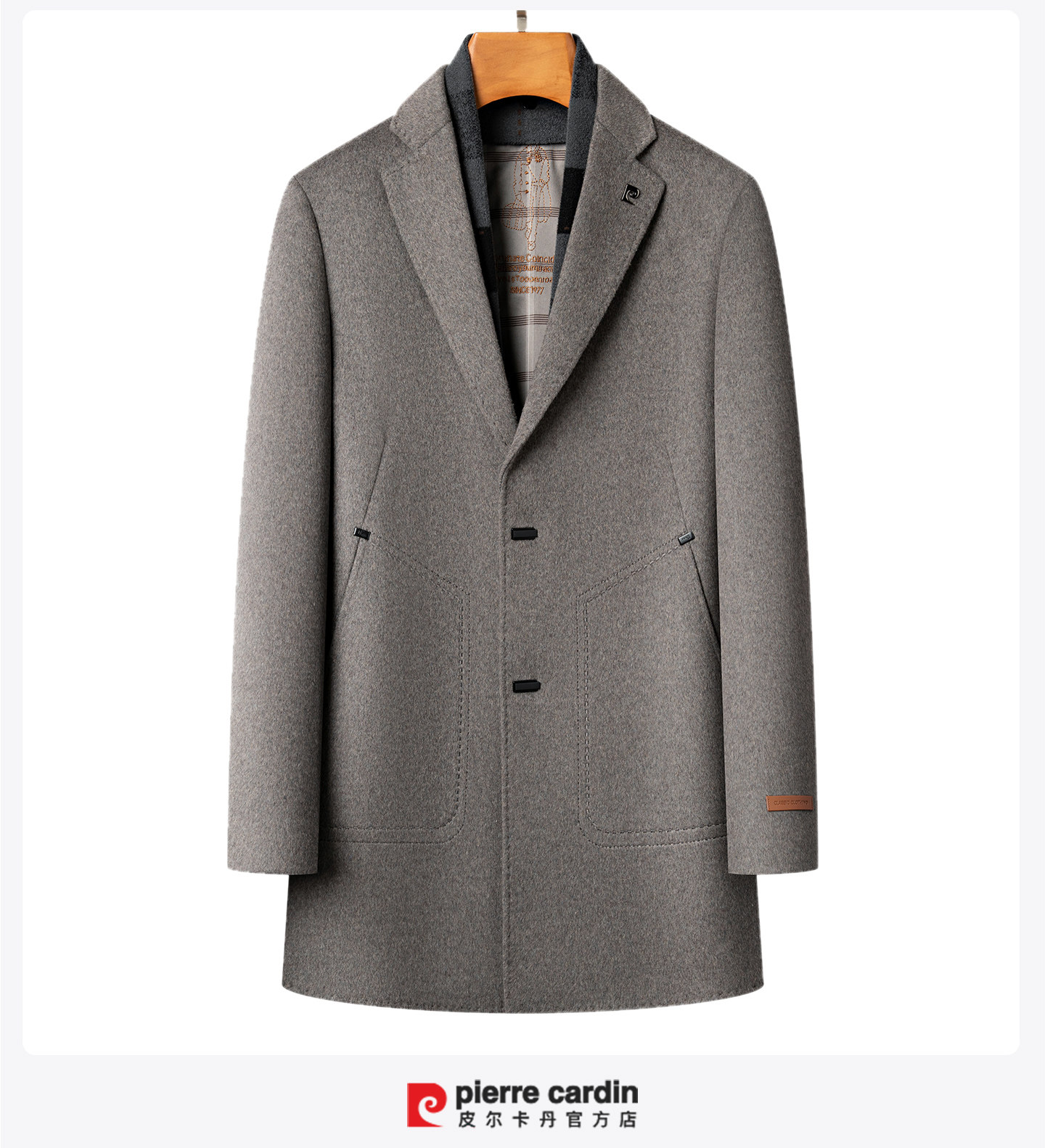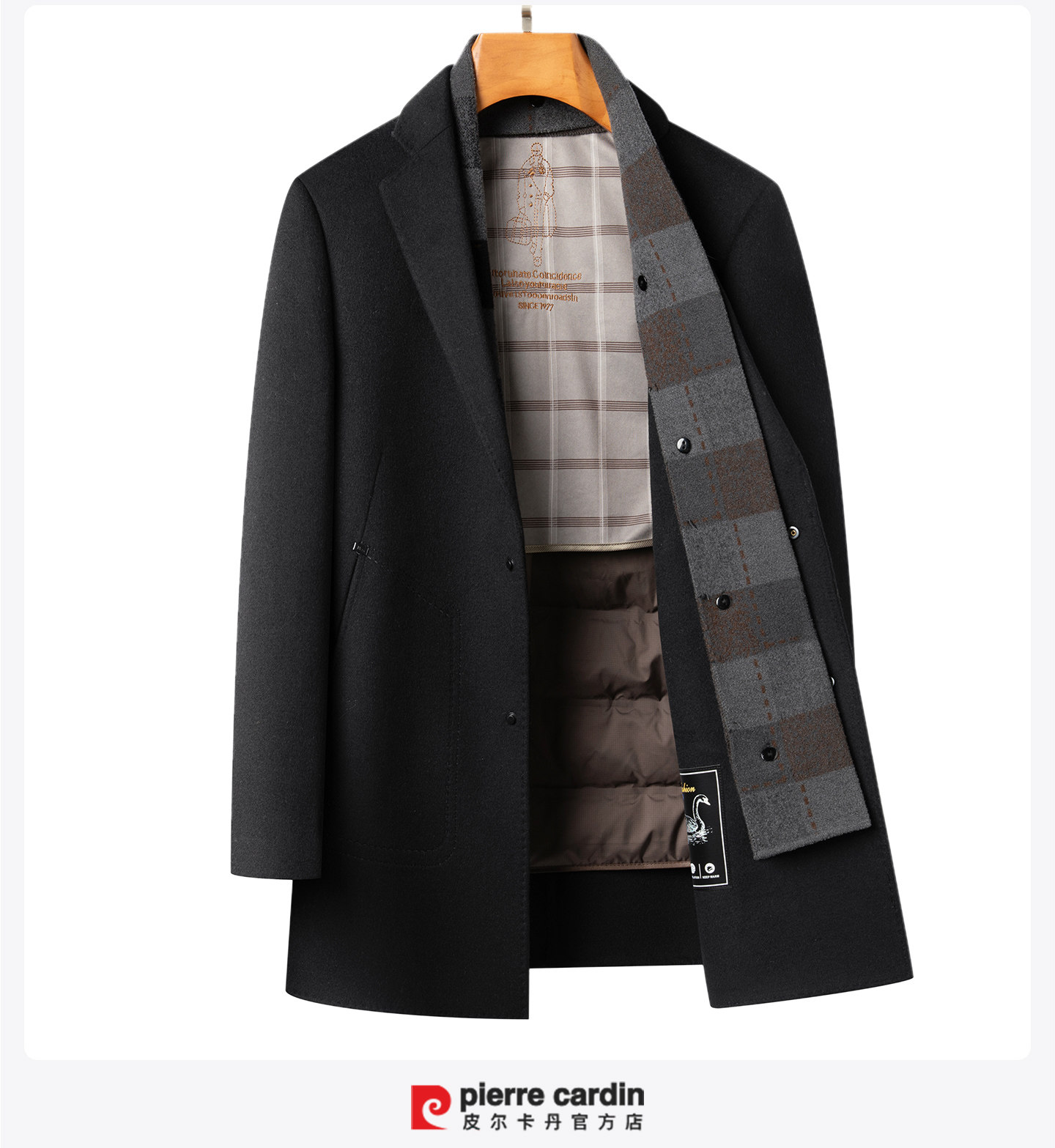 Pierre Cardin Cashmere Coat for Men, Mid-Length, Autumn and Winter, Dad Style, Middle-Aged Woolen Scarf Collar, Thickened Overcoat