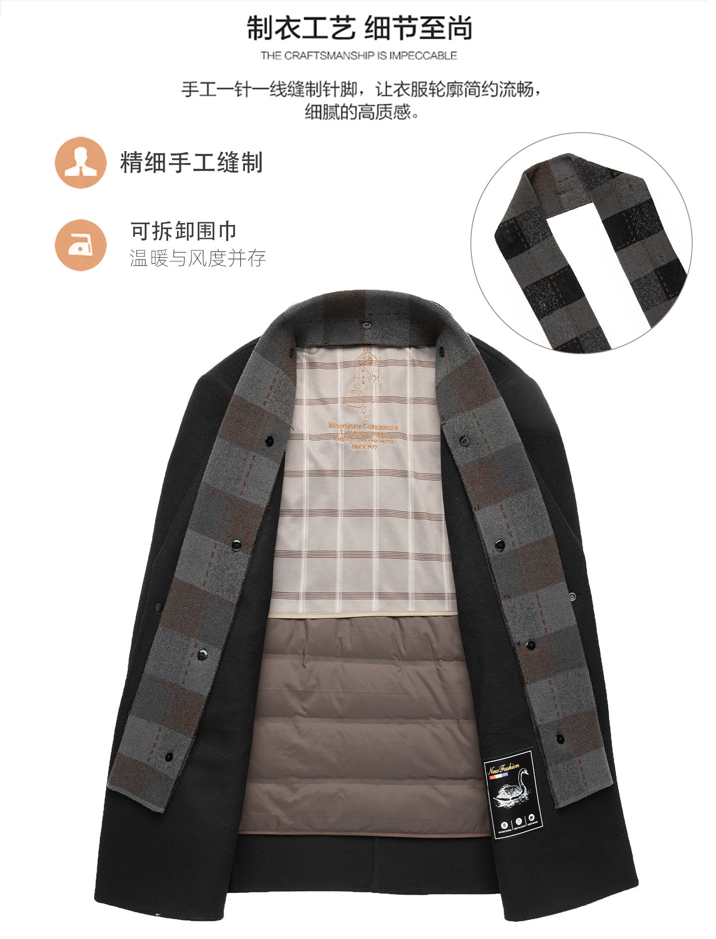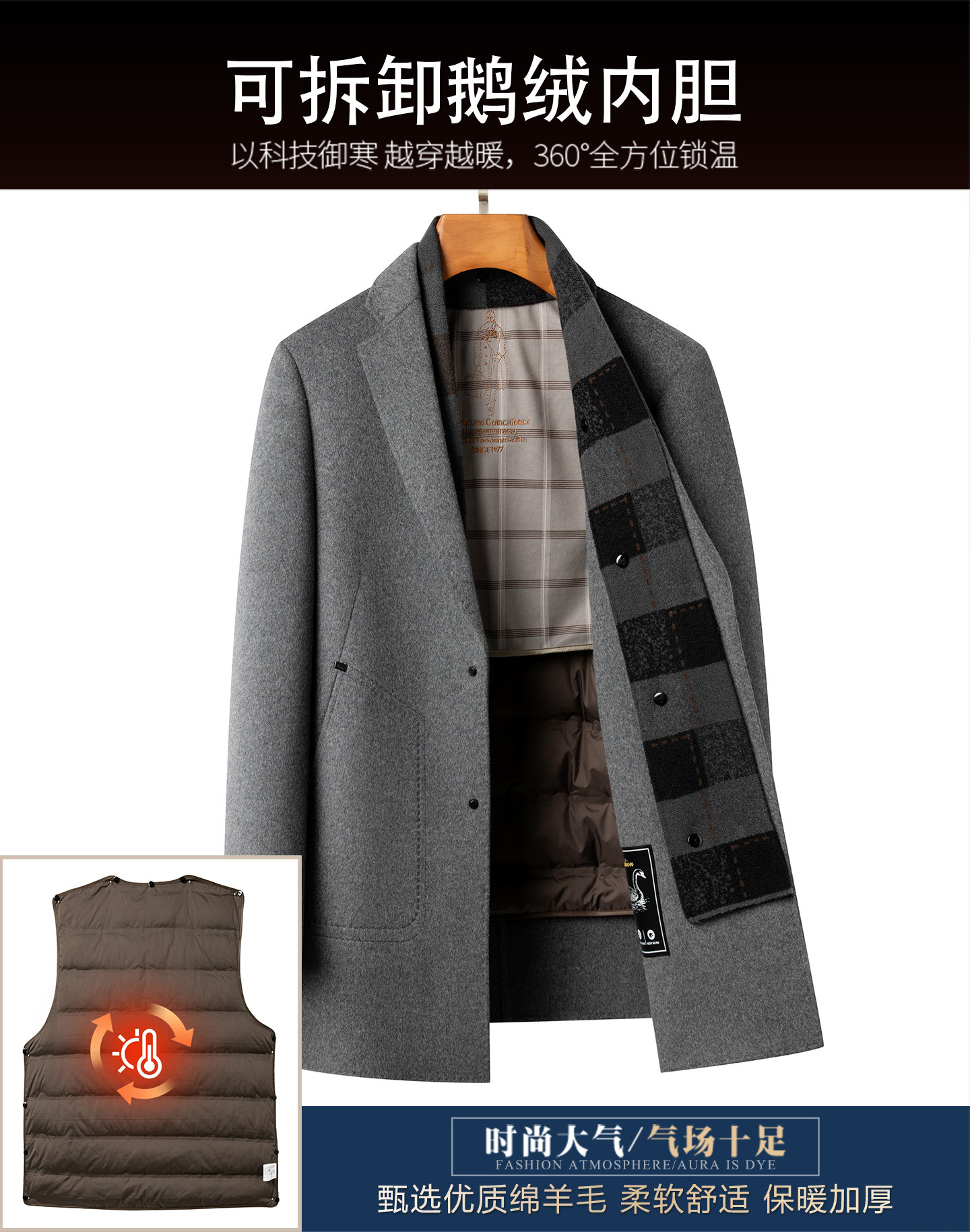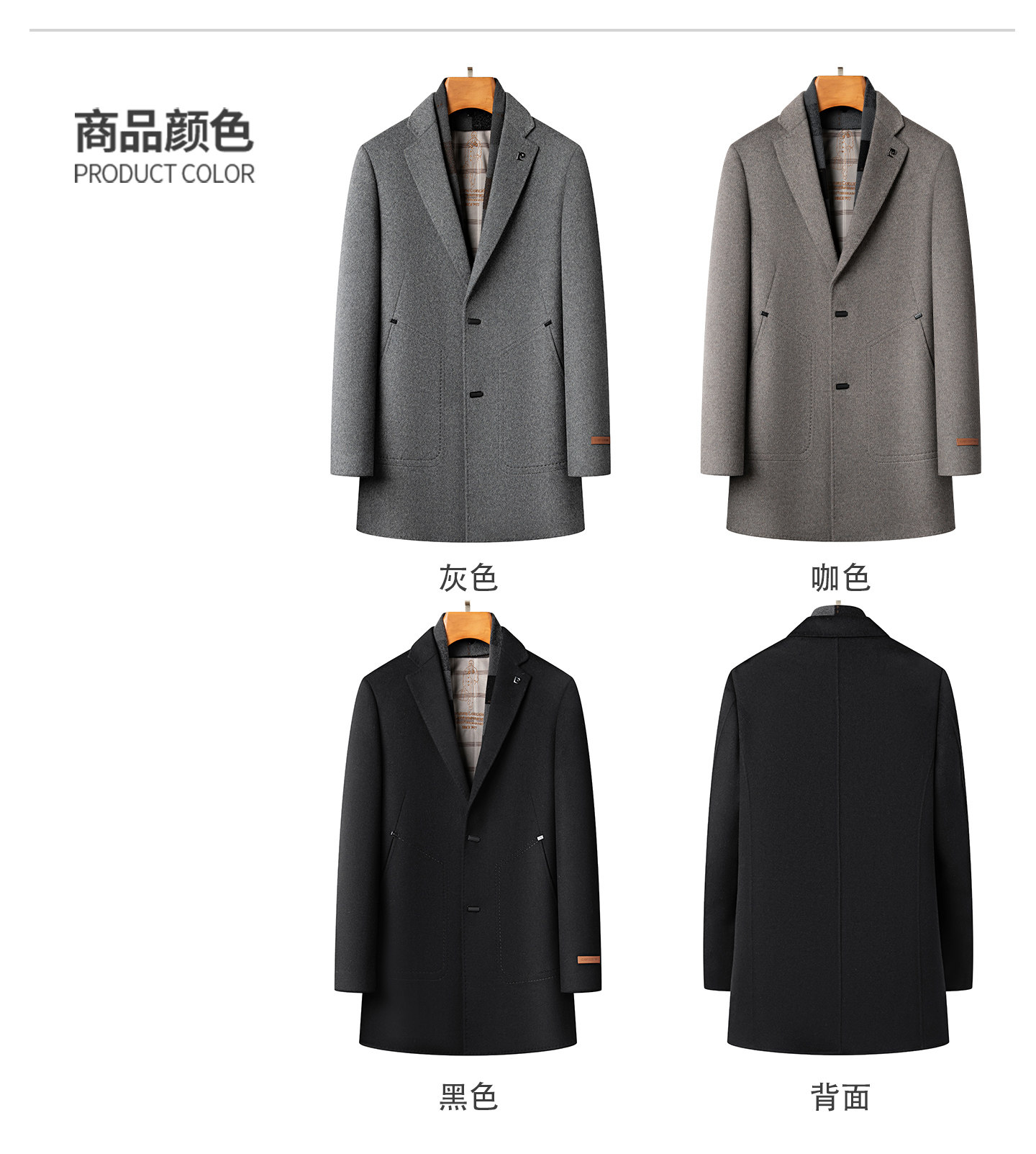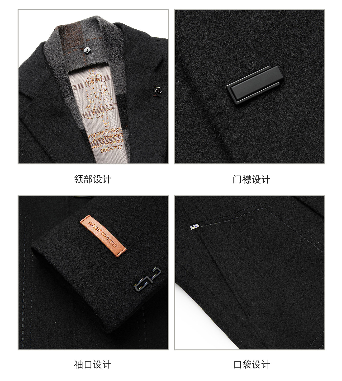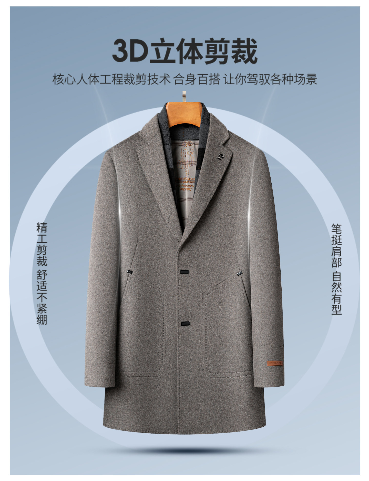 Pierre Cardin Cashmere Coat for Men, Mid-Length, Autumn and Winter, Dad Style, Middle-Aged Woolen Scarf Collar, Thickened Overcoat