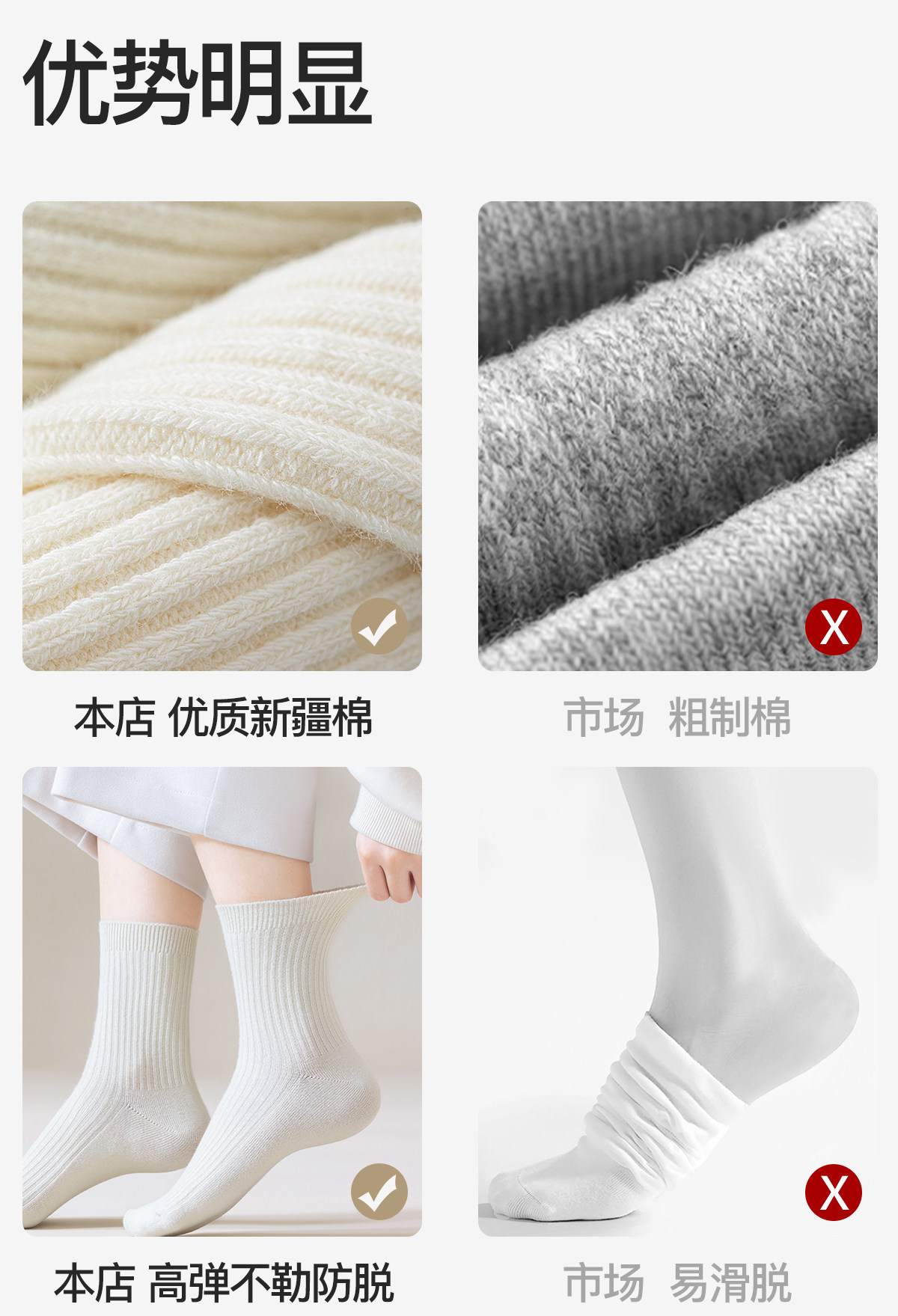 Women's Pure Cotton Mid-Calf Socks, Spring and Autumn Style, 2025 New Popular Model, Autumn and Winter Xinjiang Cotton, Odor-Resistant Women's Slouch Socks