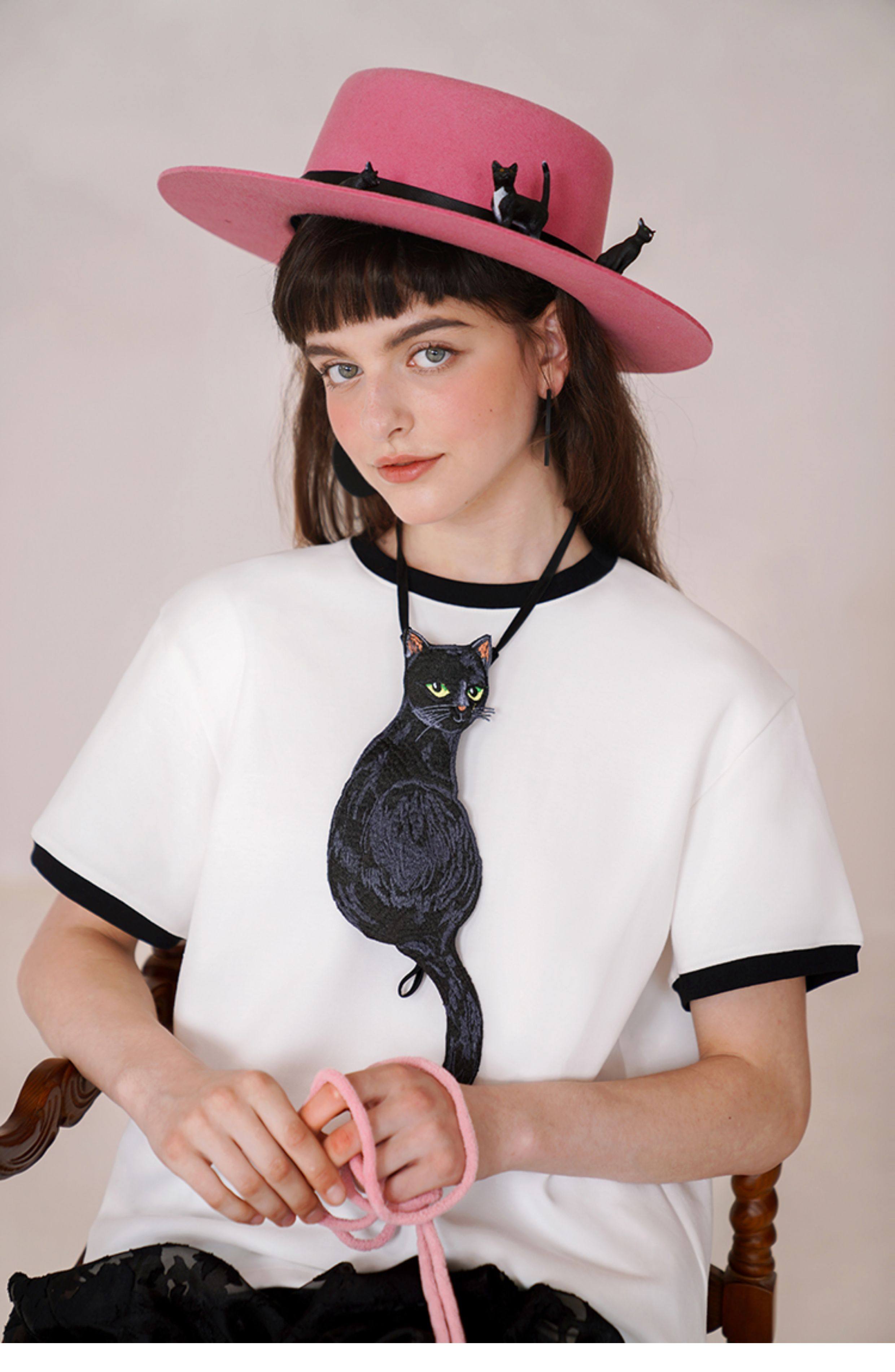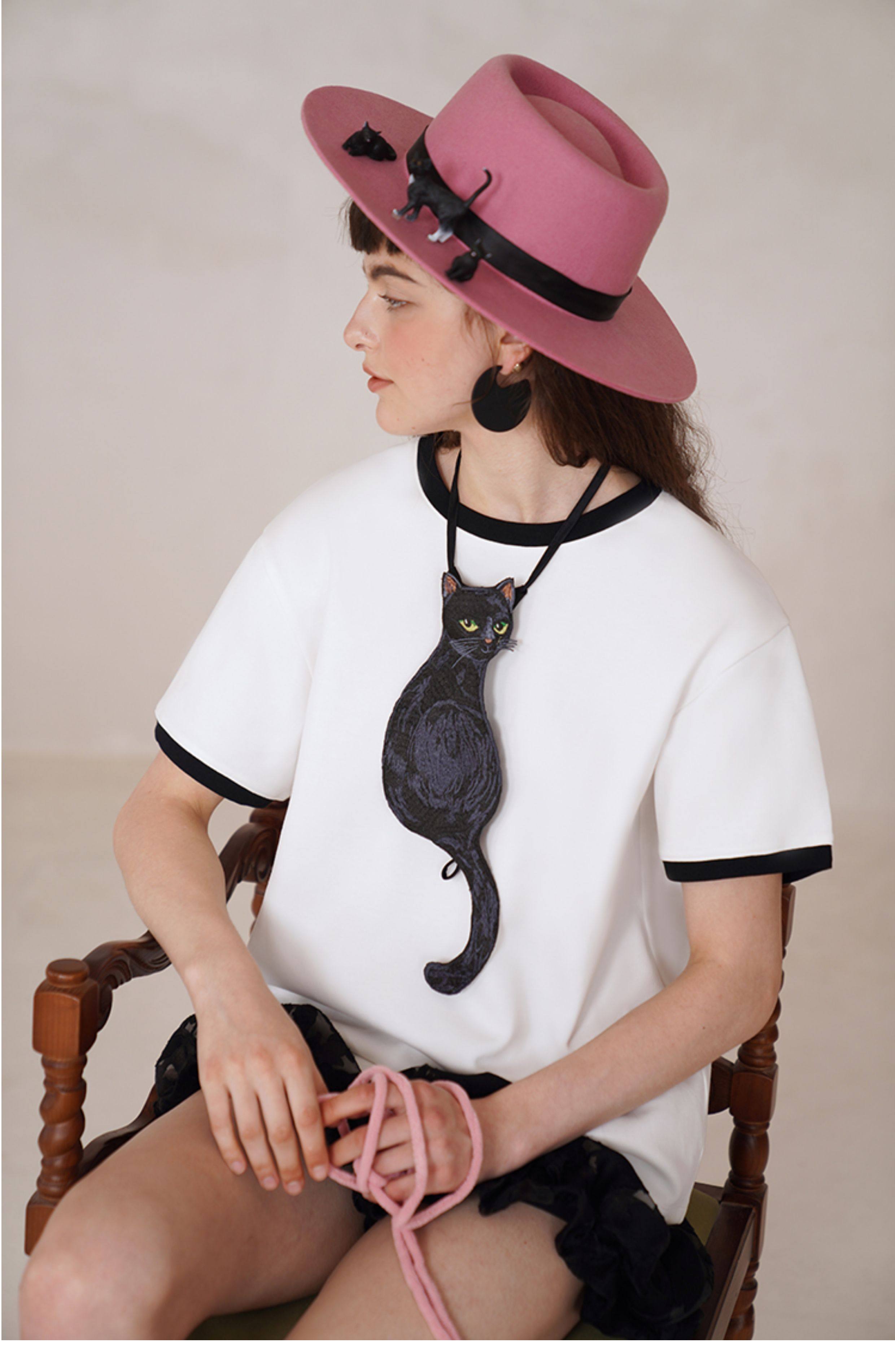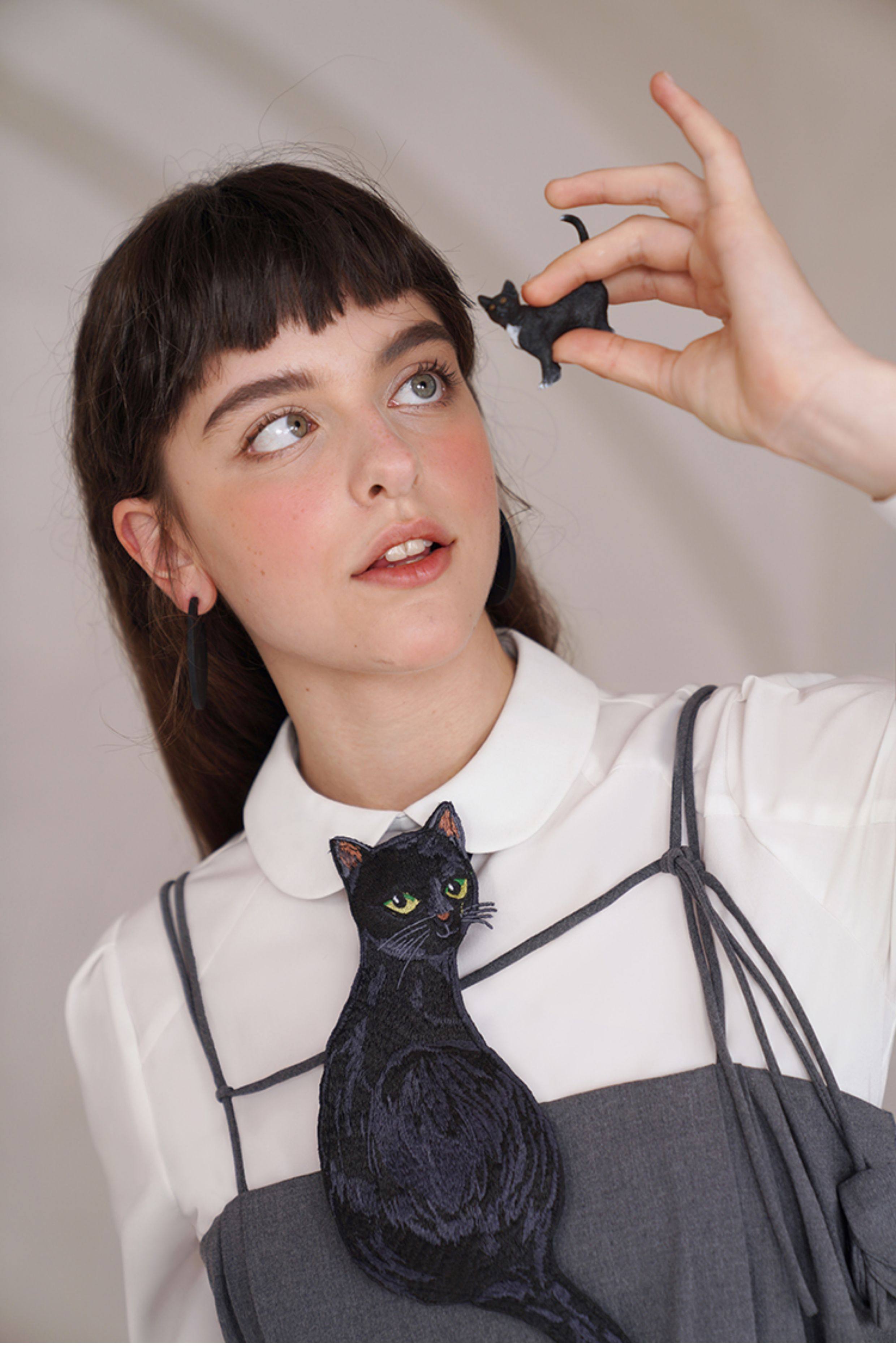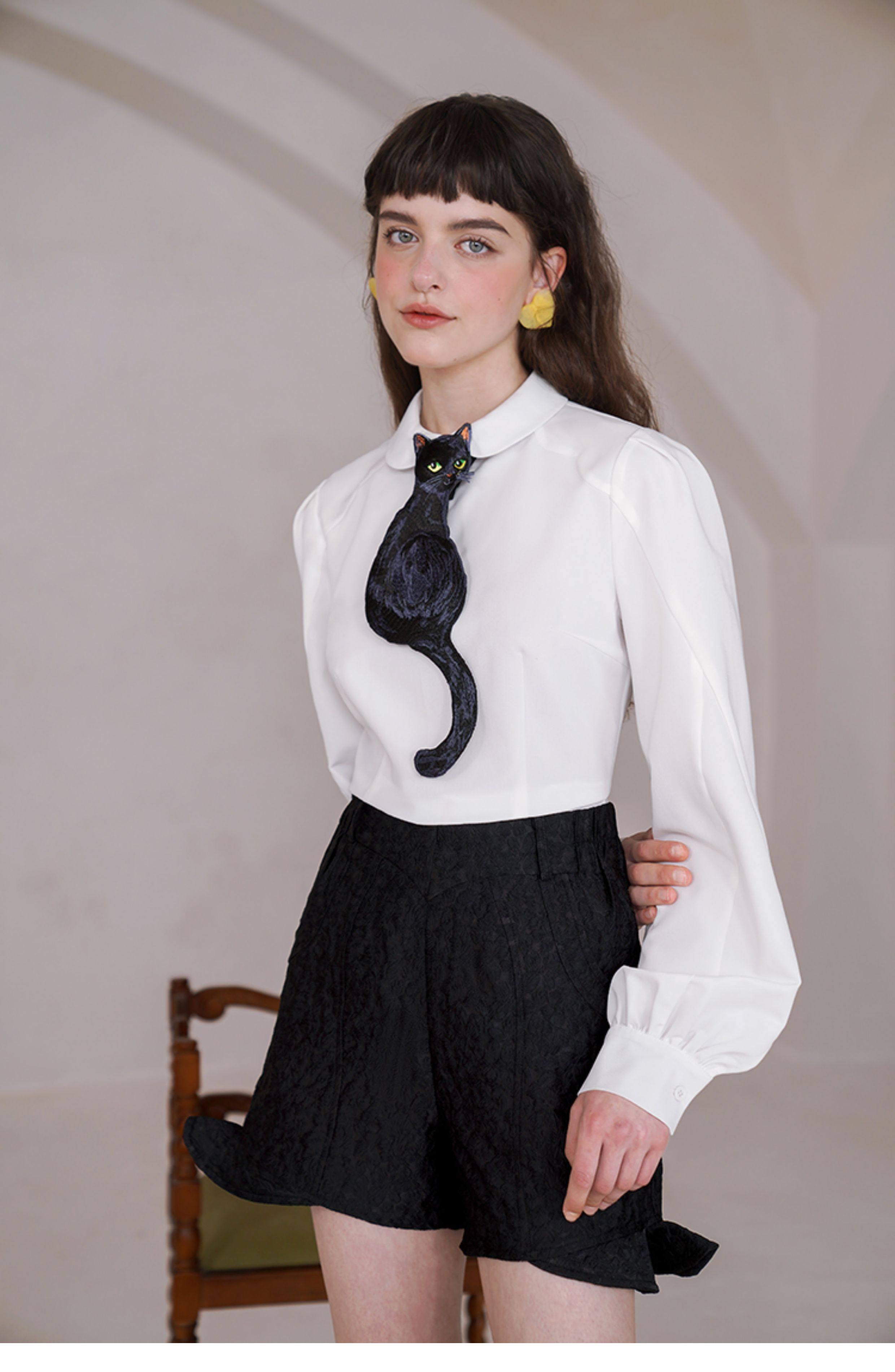 Kamo Original Design Tie Black Cat Series French Retro Niche Design Bow Tie for Women with Personality