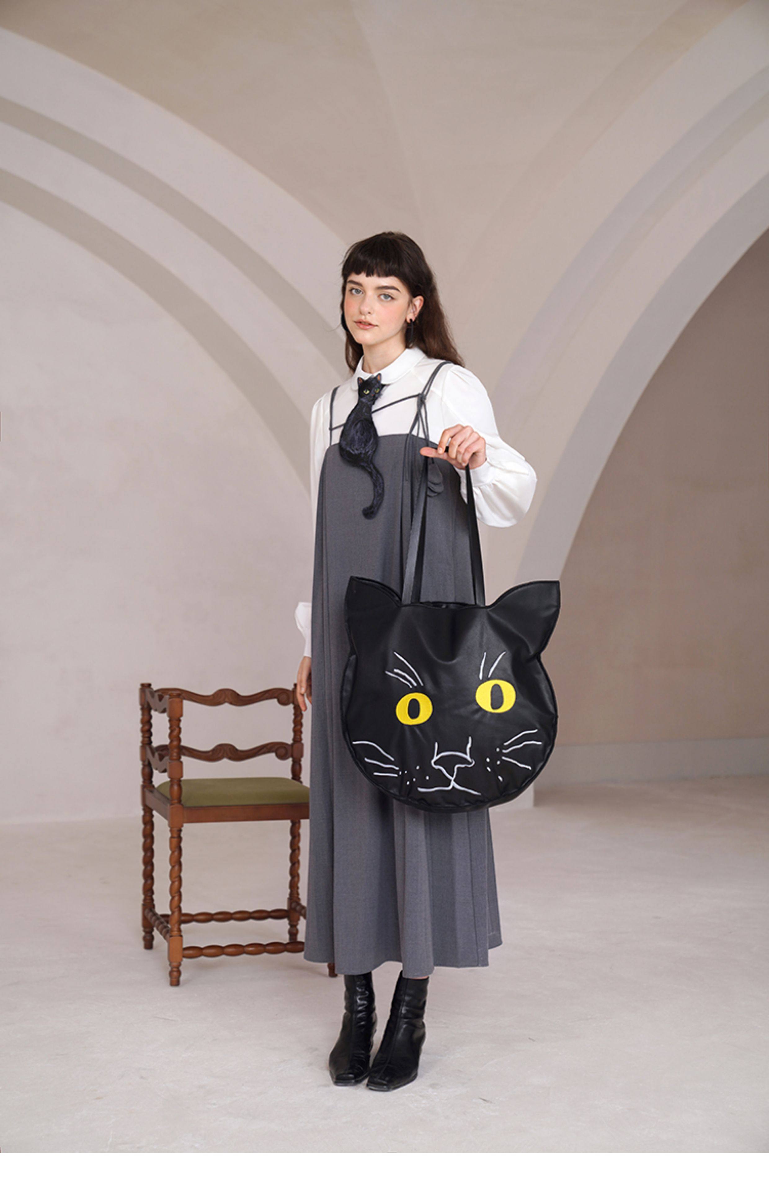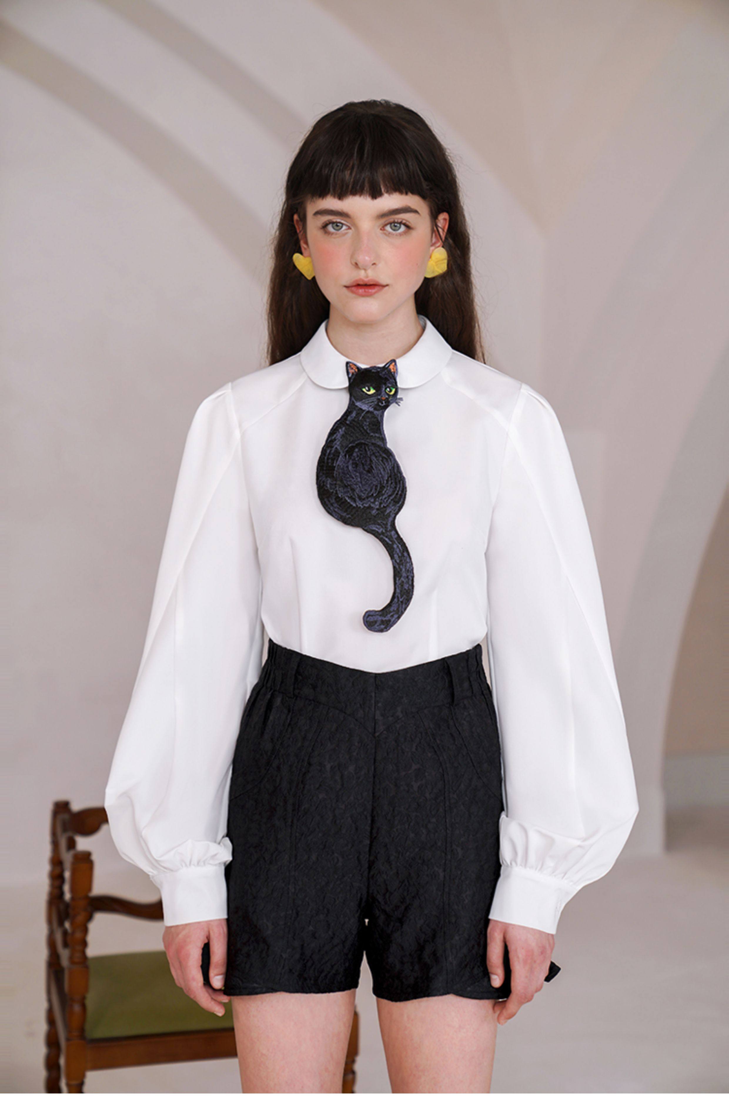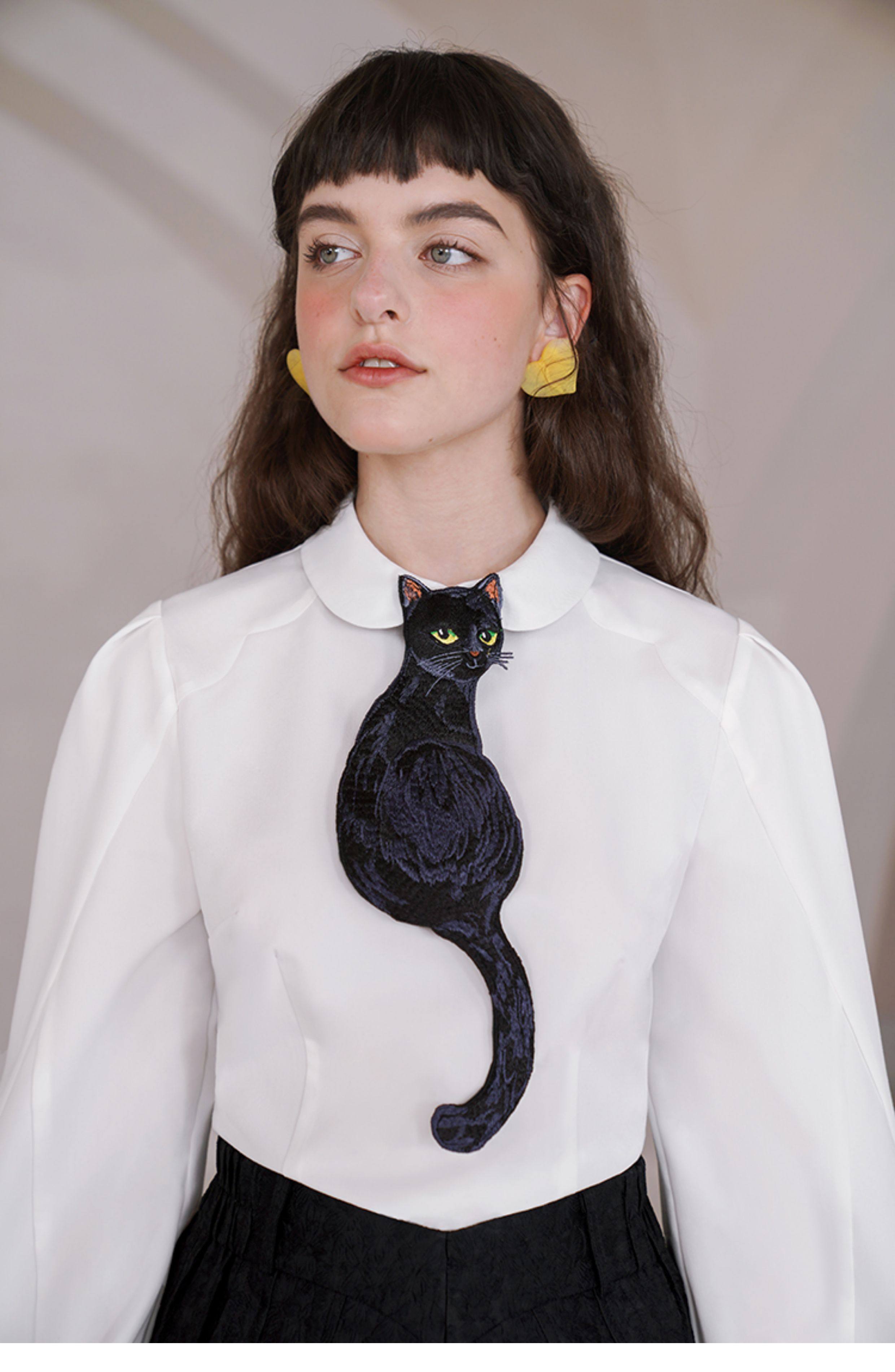 Kamo Original Design Tie Black Cat Series French Retro Niche Design Bow Tie for Women with Personality