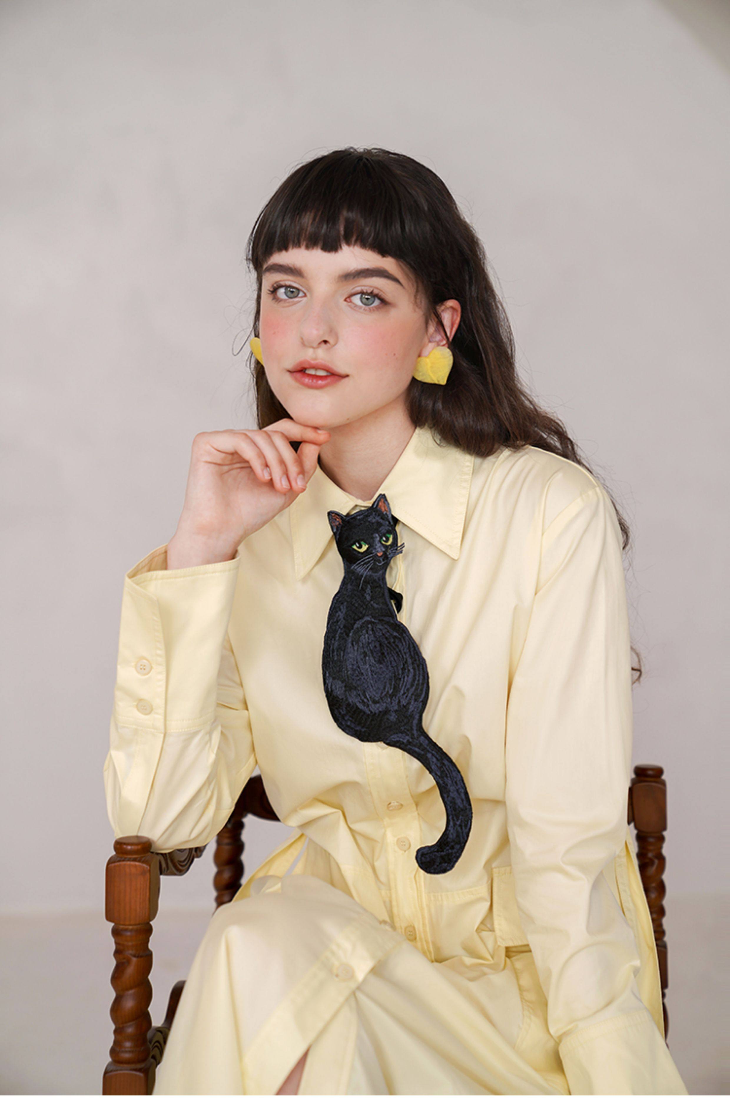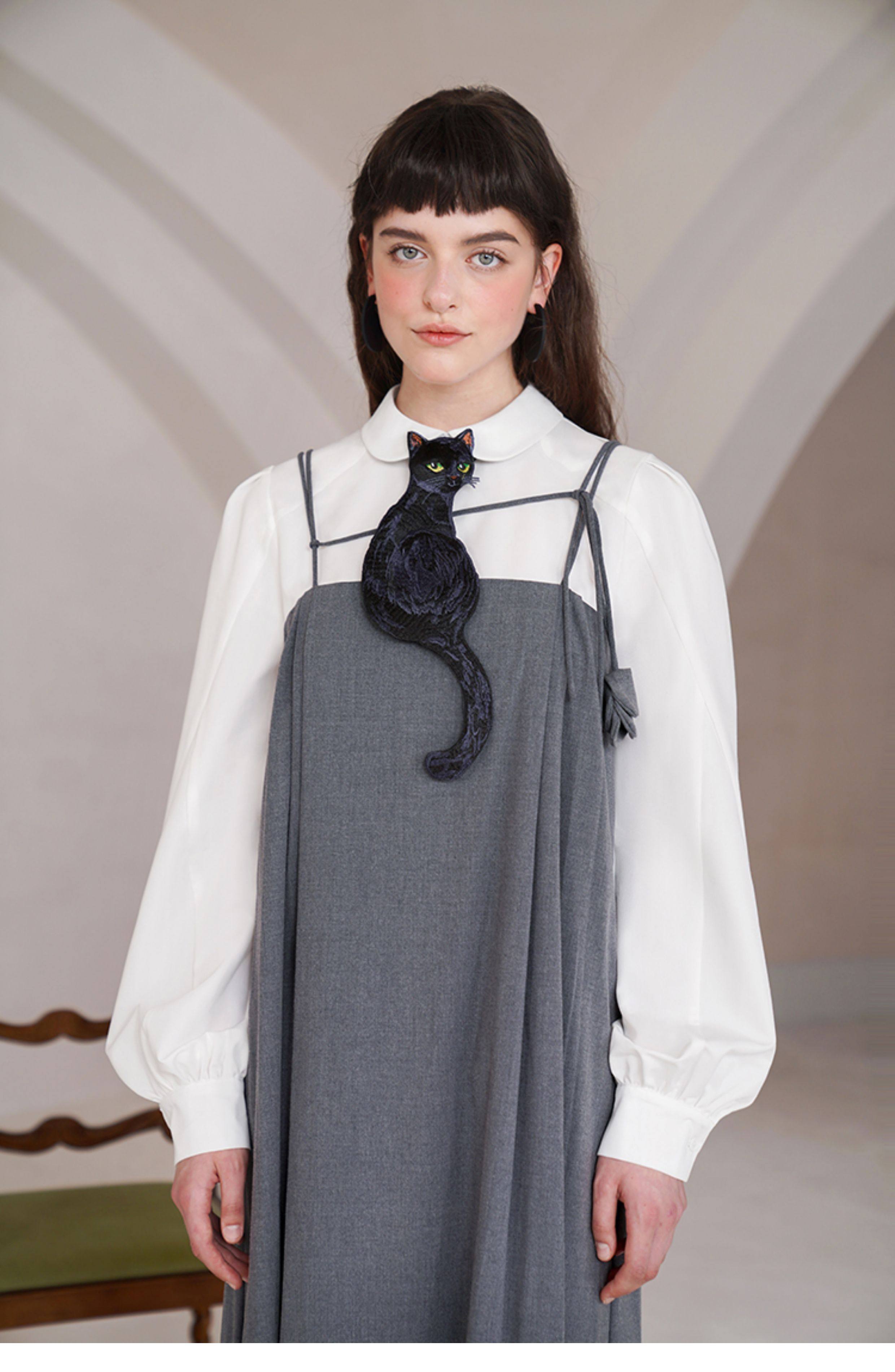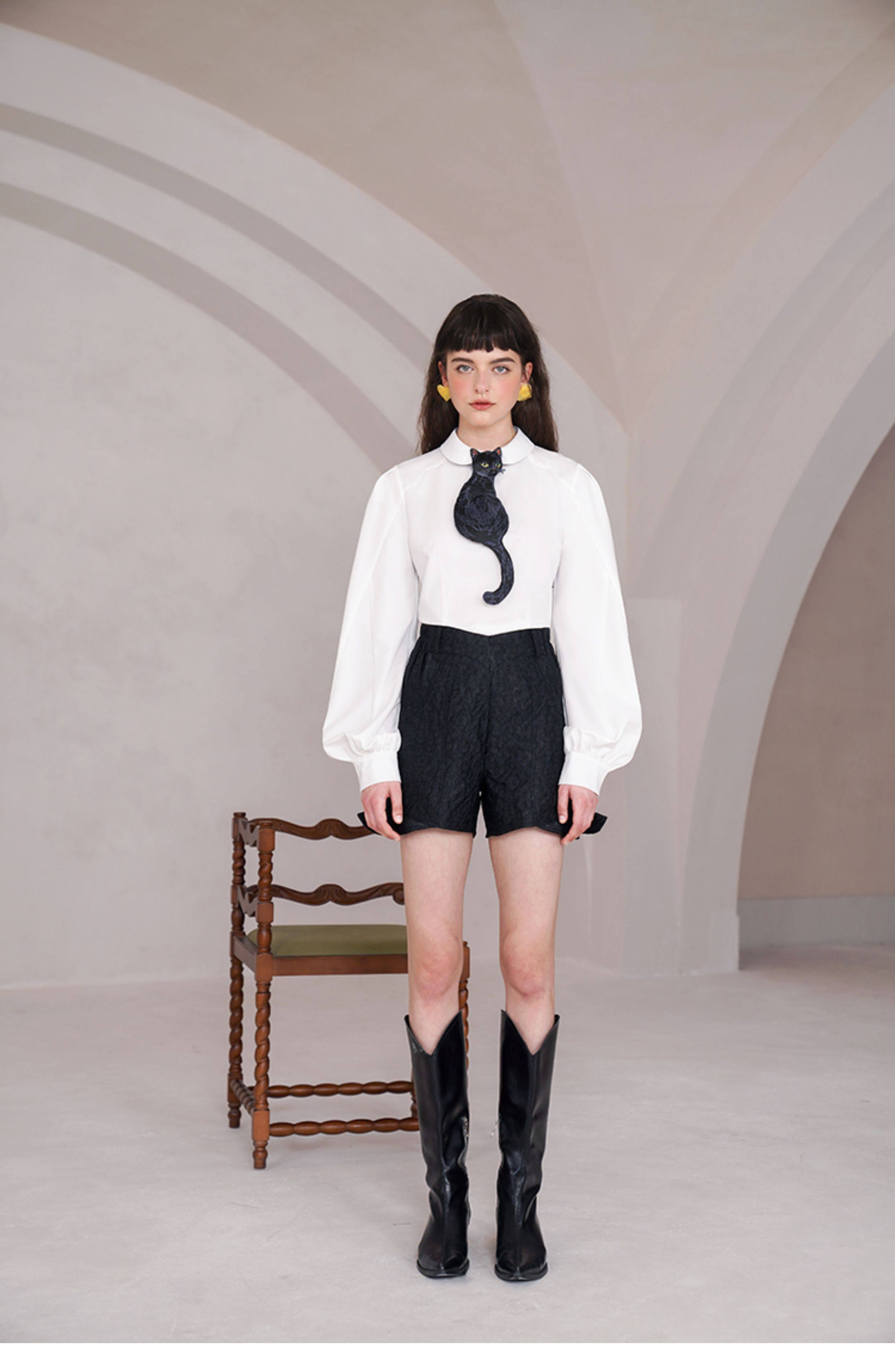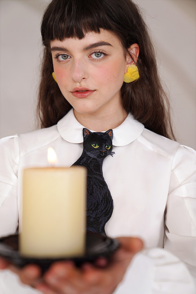 Kamo Original Design Tie Black Cat Series French Retro Niche Design Bow Tie for Women with Personality