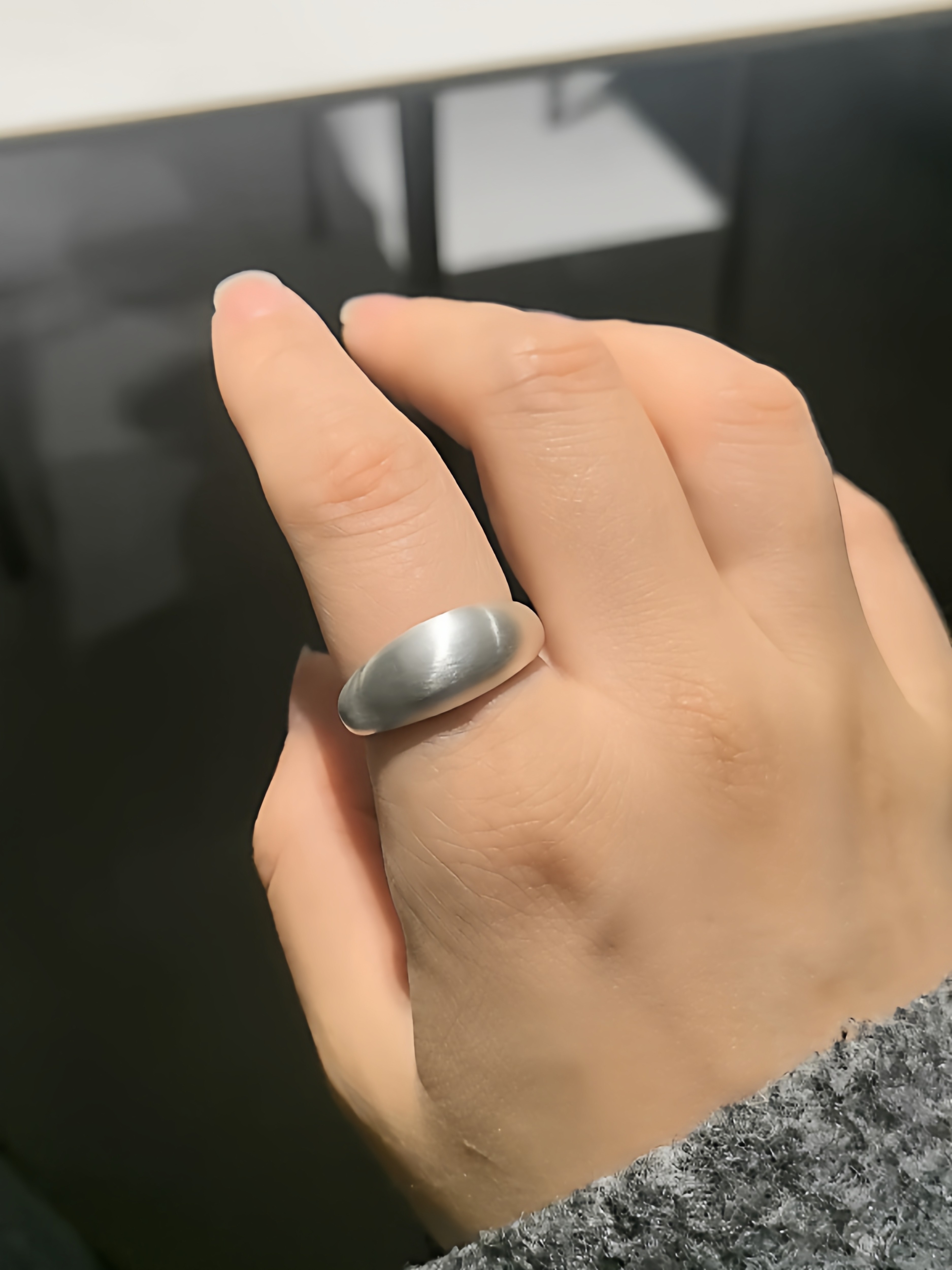 Pure Silver 999 Bun Ring, All-Over Sterling Silver Ring, Matte Brushed Chubby Silver Ring, Ins Versatile