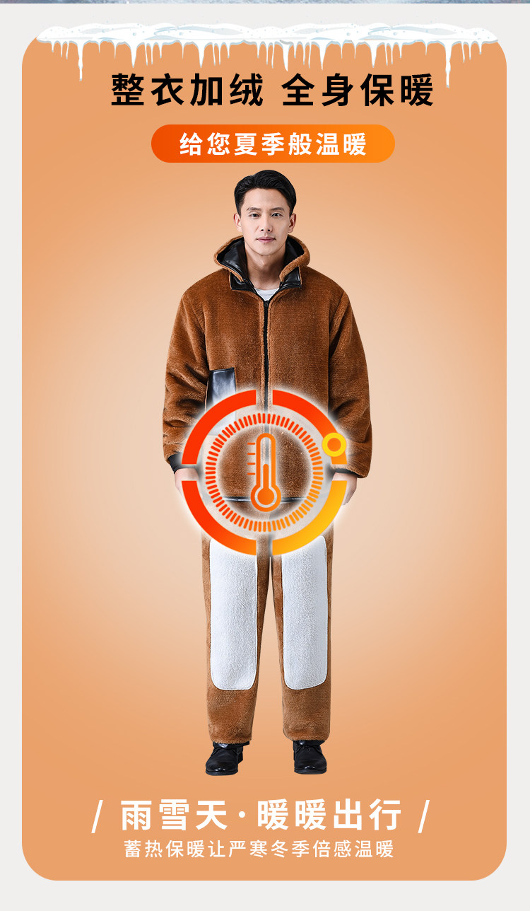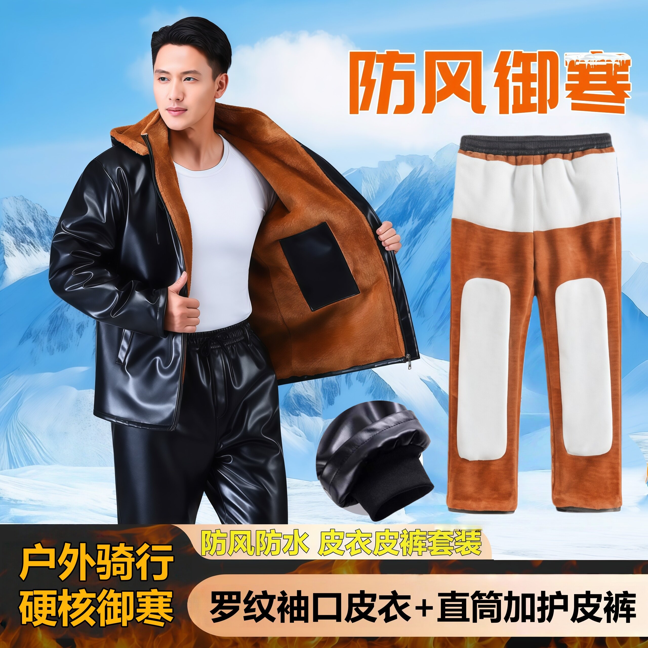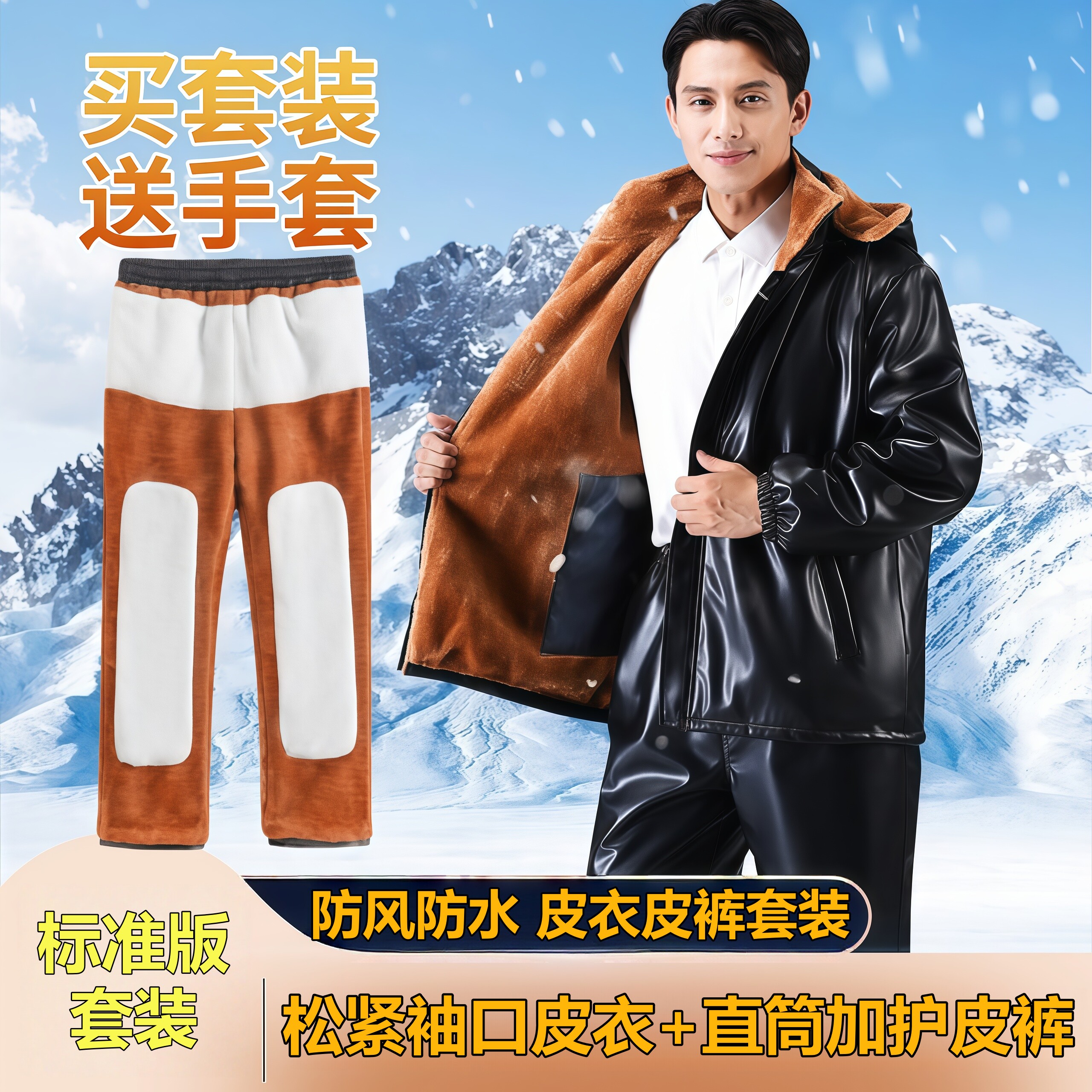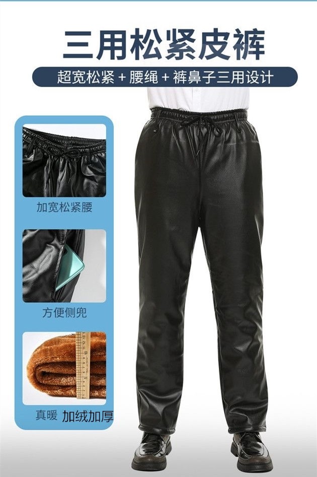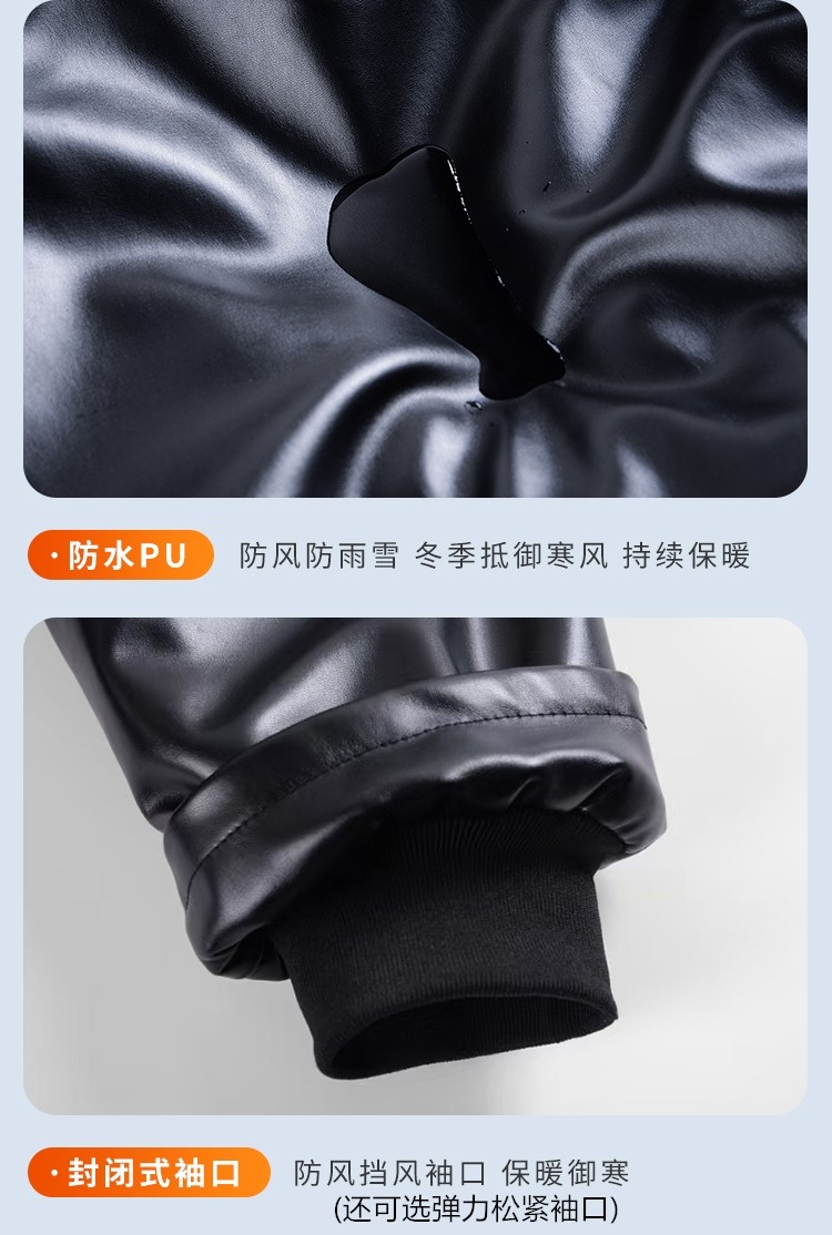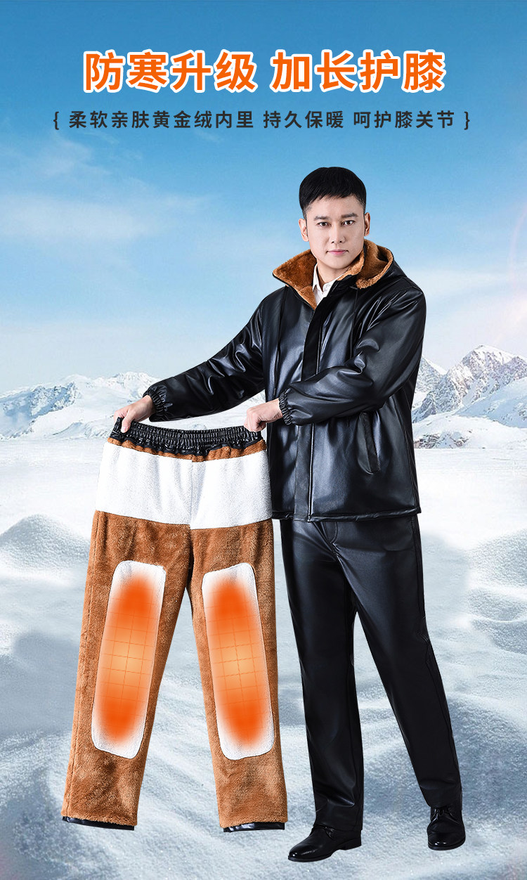 Men's Leather Jacket and Pants Set, Fleece-Lined and Thickened, for Delivery Riders and Driving Services, Windproof, Waterproof, Warm, Cold-Resistant Workwear Leather Cotton Jacket