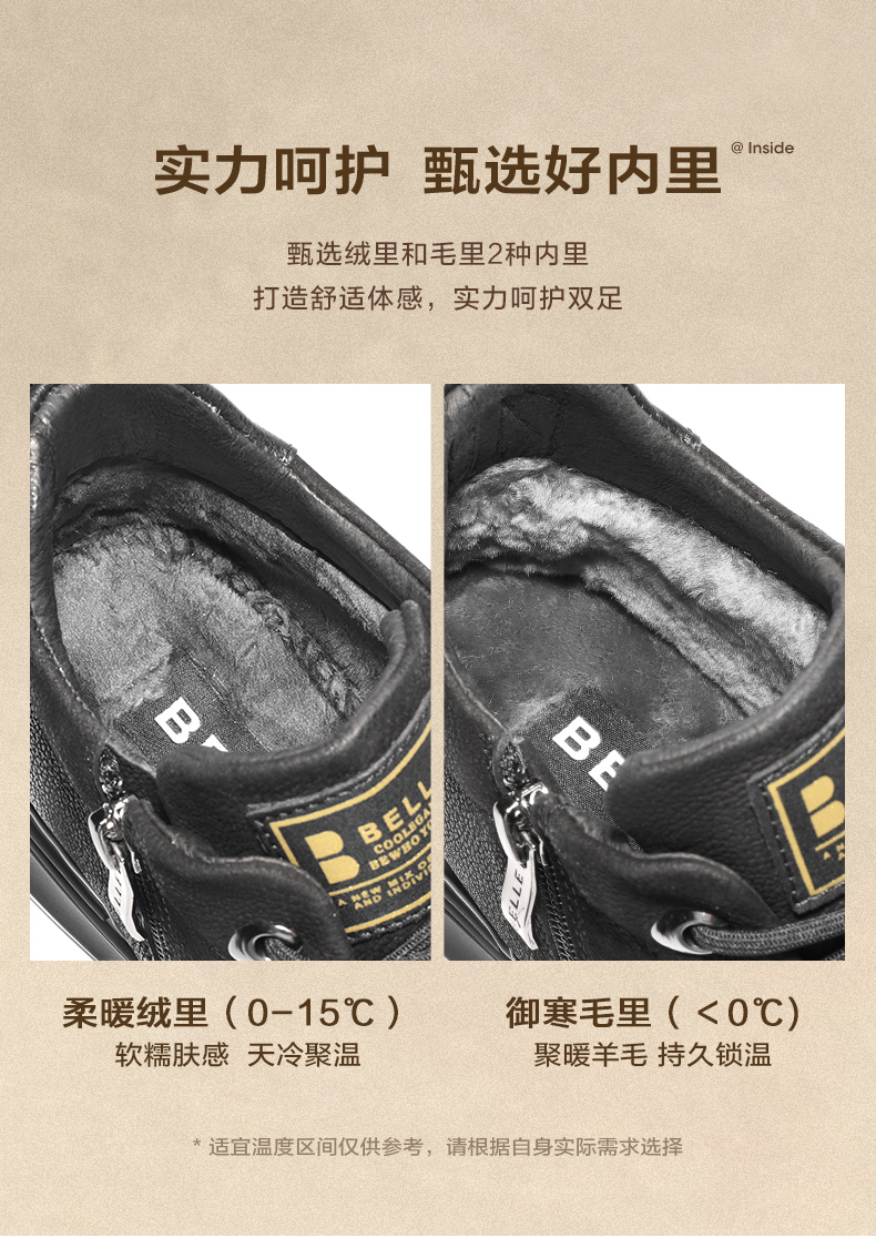 Belle Men's Casual Northeast Snow Boots Winter Cotton Shoes High-Top Sneakers Warm Fleece Lining 8Ds01Dd3