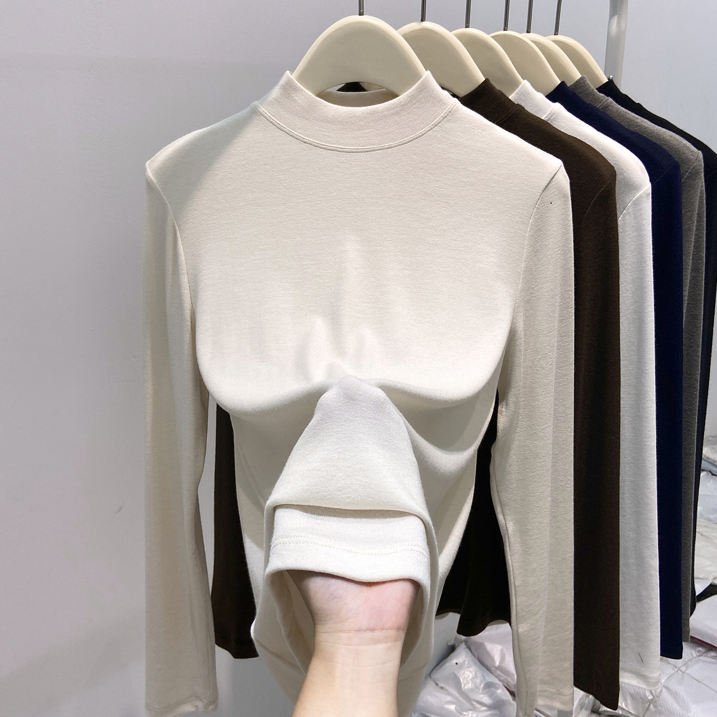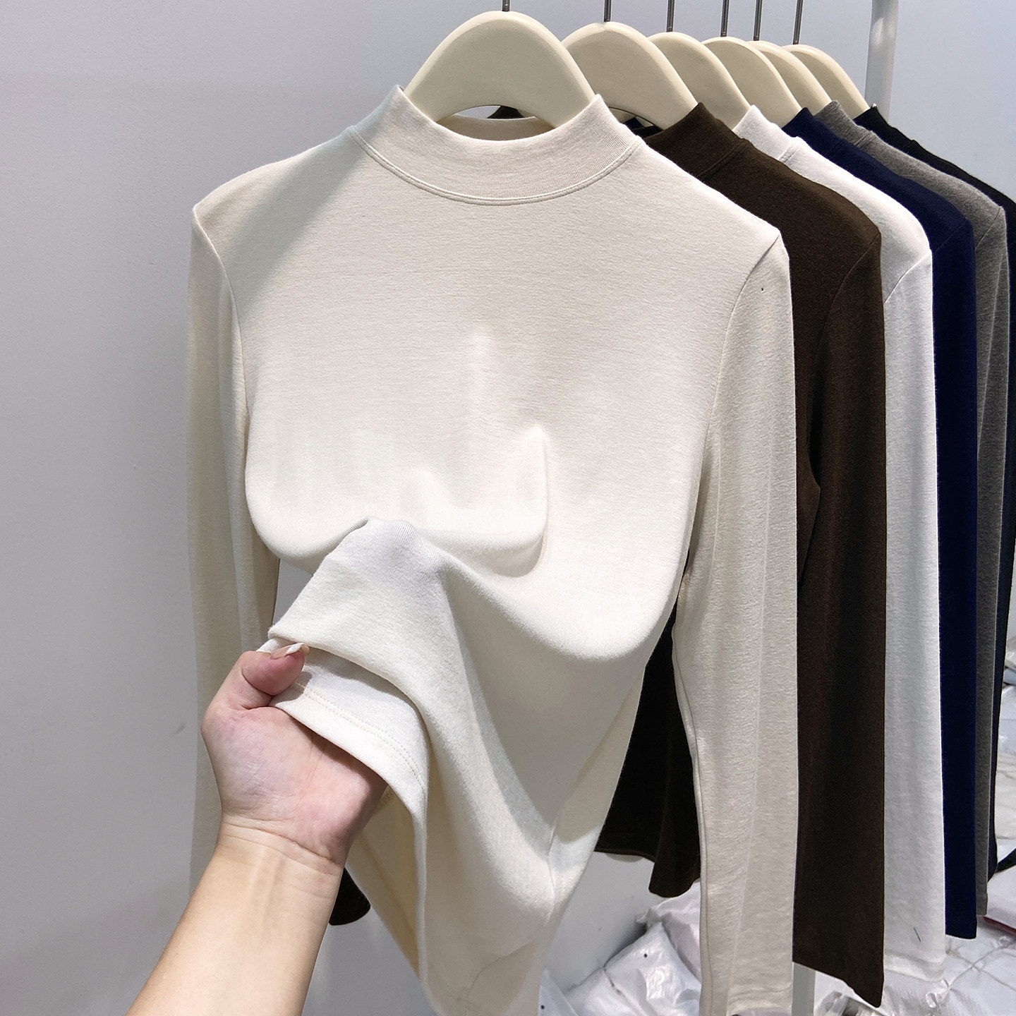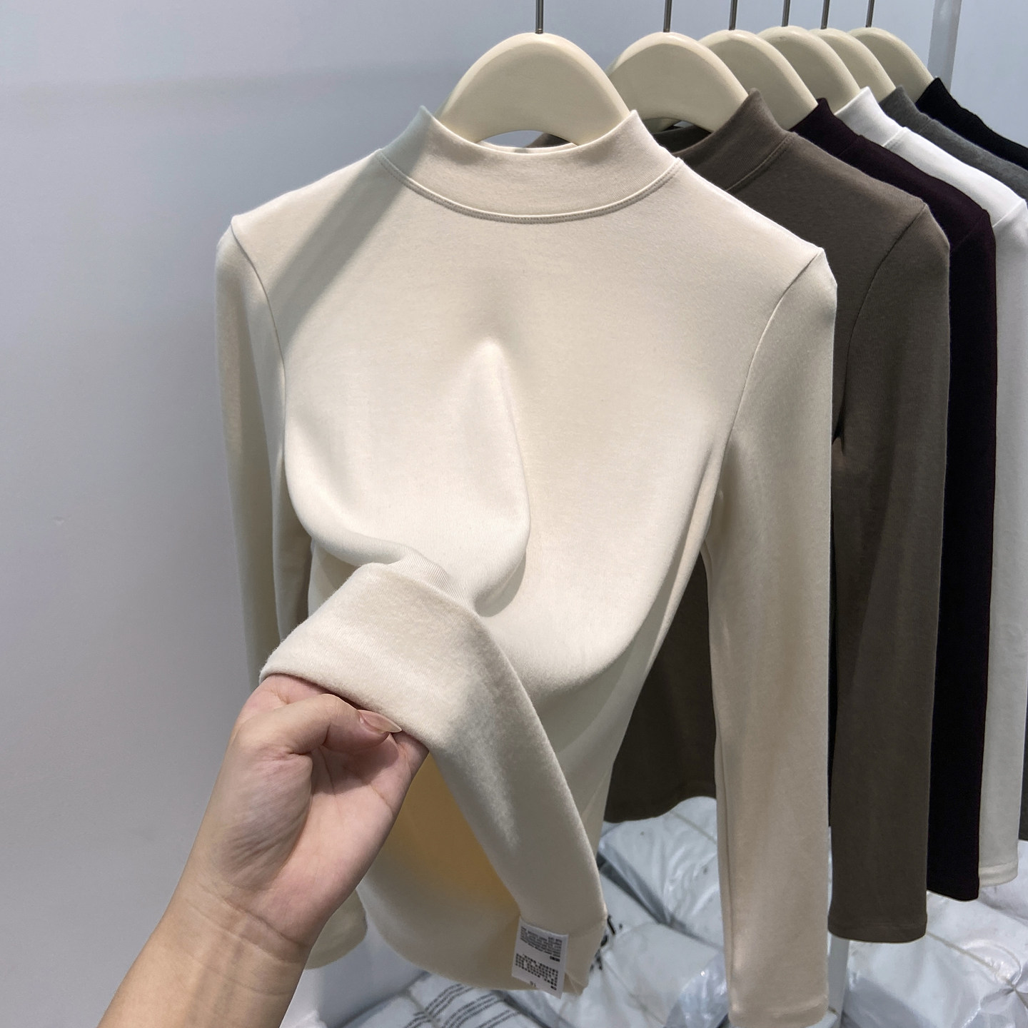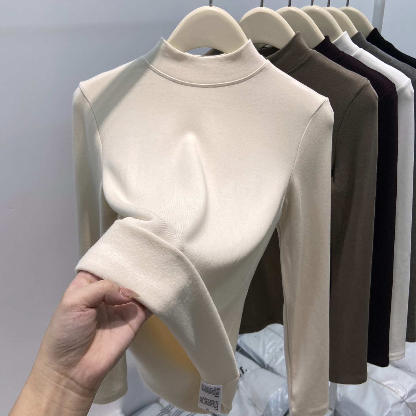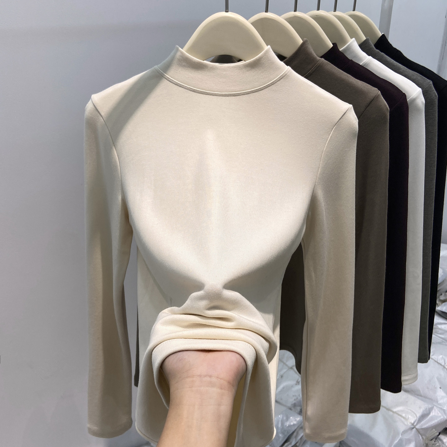Soft and Cozy Half-High Collar Slim-Fit Base Shirt for Women, 2025 Autumn and Winter New Style, High-End Feel, Stylish Stand-Up Collar, Fleece-Lined Top