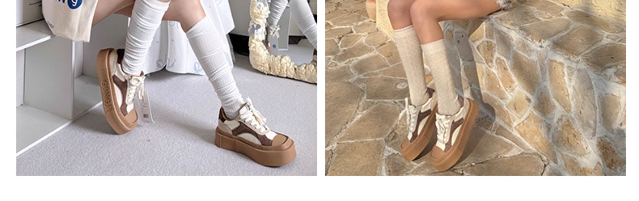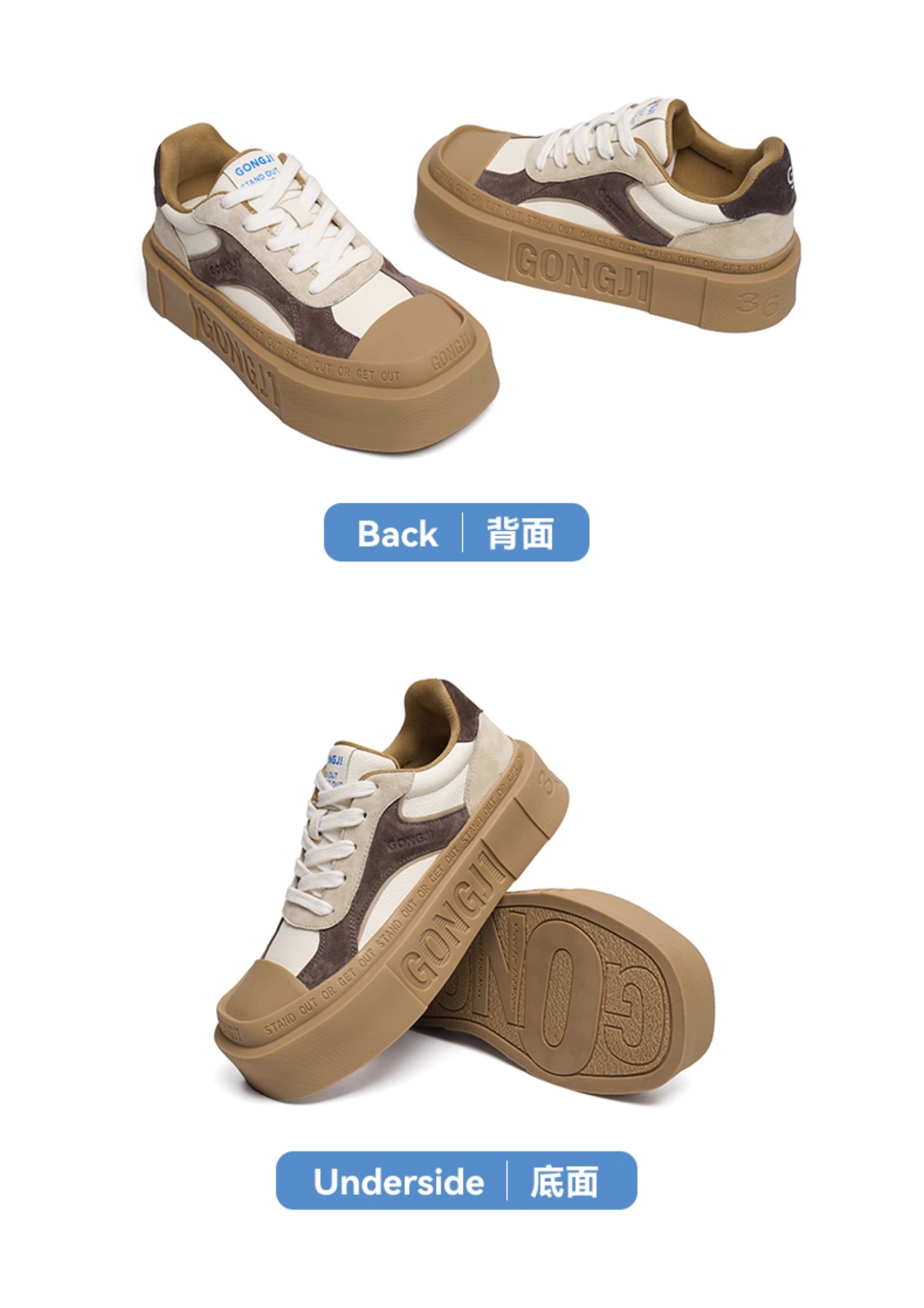 Su Youpeng | Chen Zheyuan's Same Style Gongji Thick-Soled Sneakers for Women, Niche Shoes, Height-Increasing White Shoes, German Training Shoes for Men.