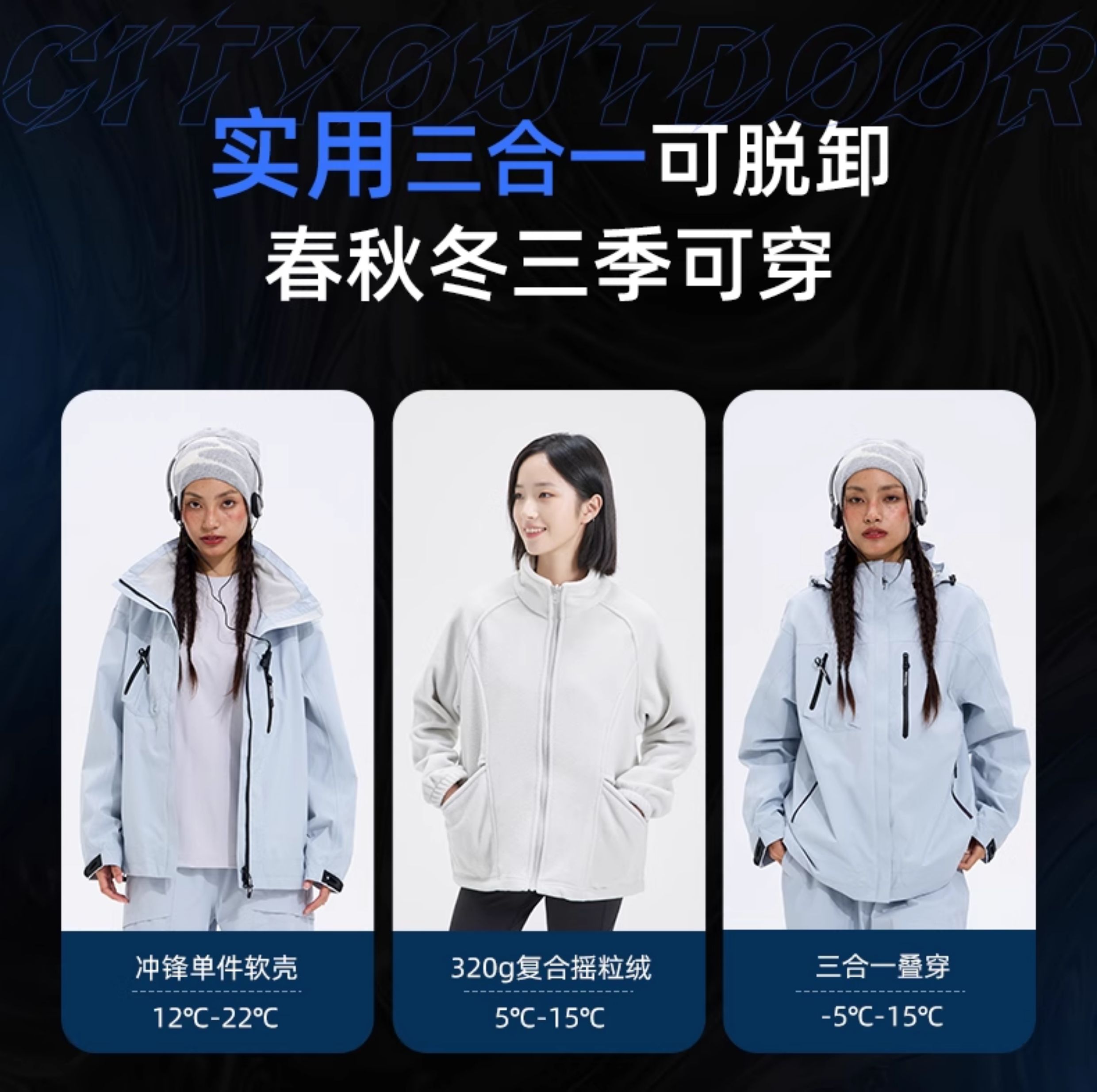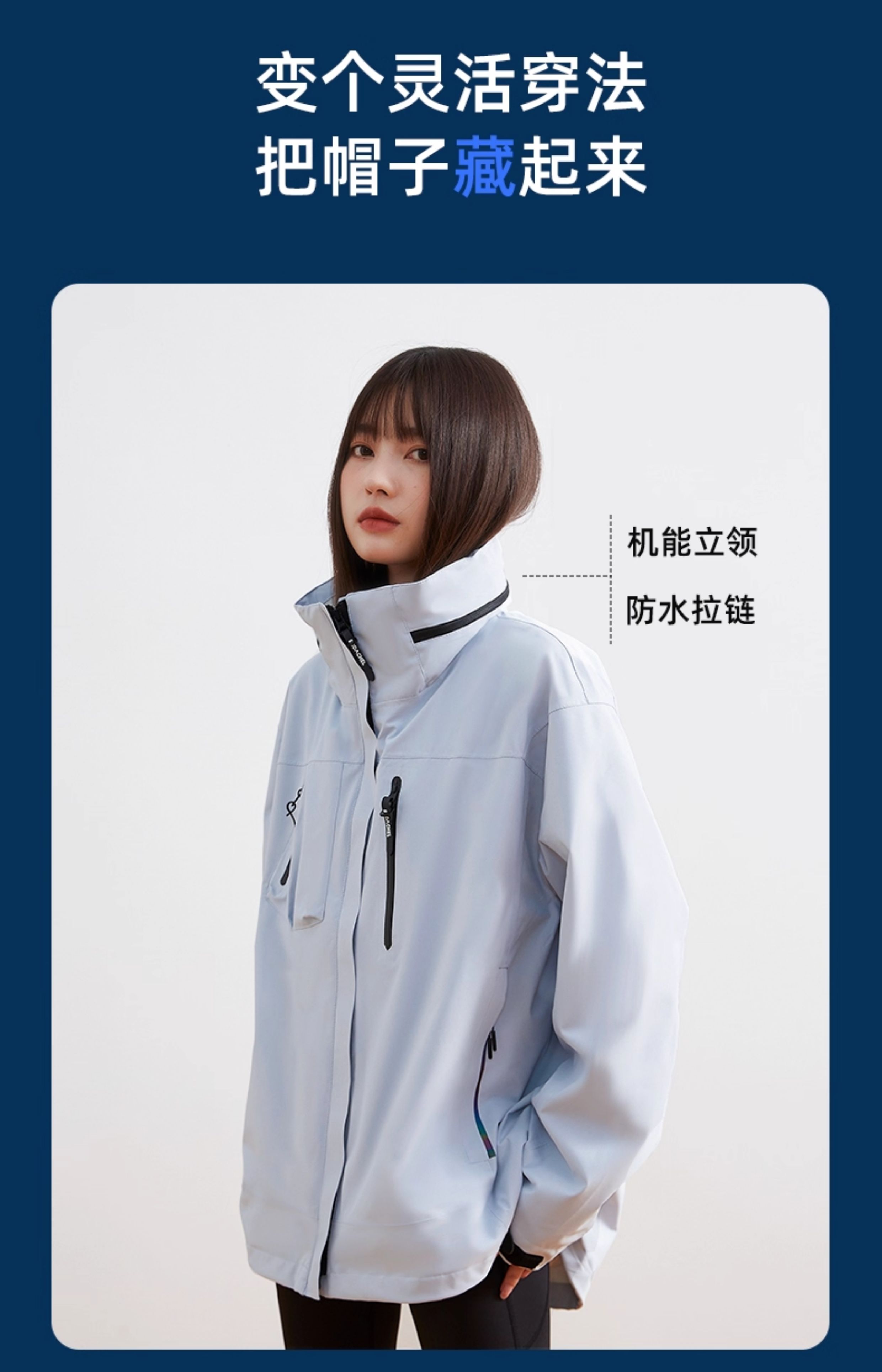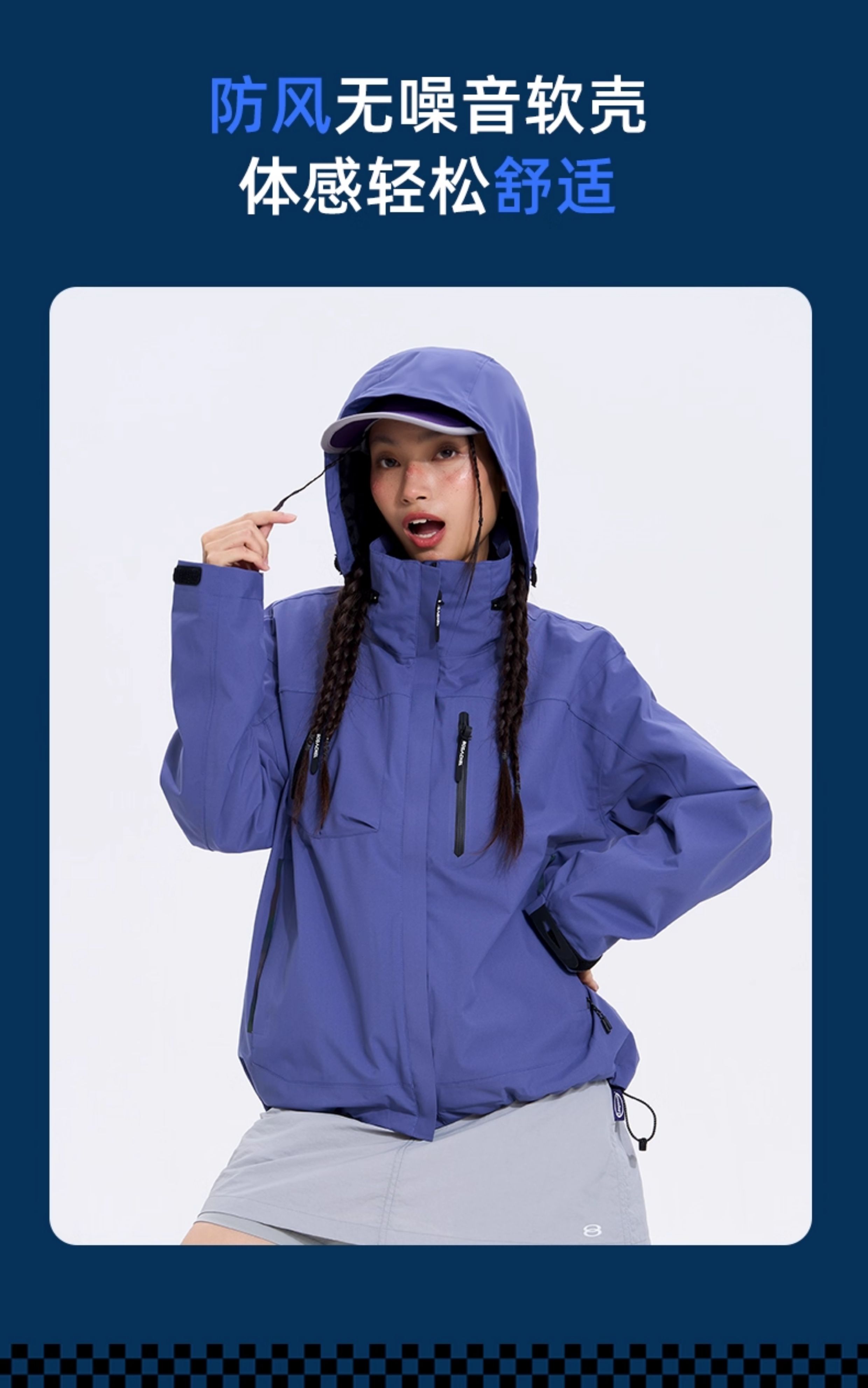 Eight Degrees Hill New Fleece-Lined Softshell Jacket Unisex 3-in-1 Outdoor Winter Ski Jacket