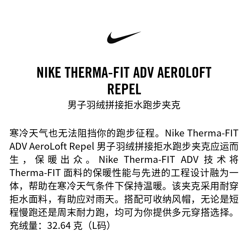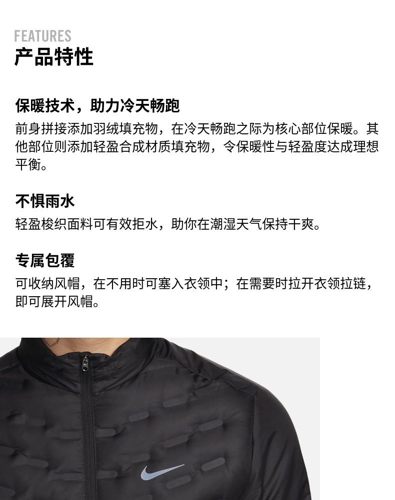 Nike Nike Jacket Men's Winter New Lightweight Running Sports Jacket Warm Stand-Up Collar down Jacket Fb7557-010