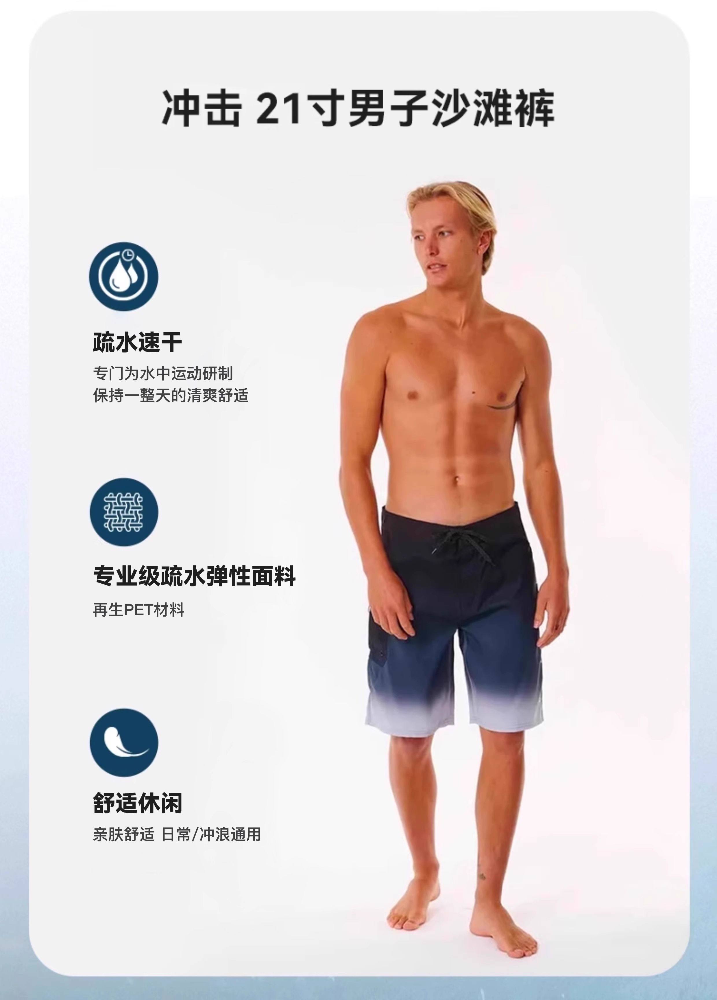 Australian Ripcurl Beach Shorts Swimming Trunks Men's Quick-Drying Surf Shorts Suitable for Water Activities, Diving, and Swimming