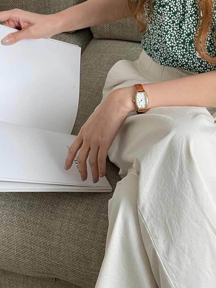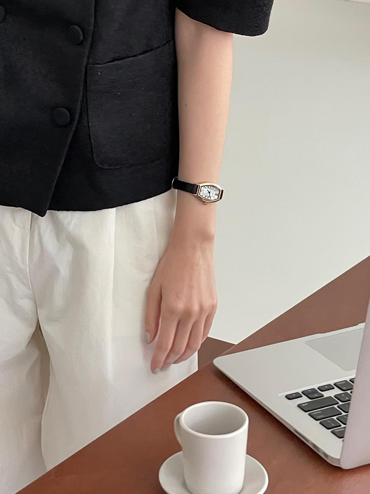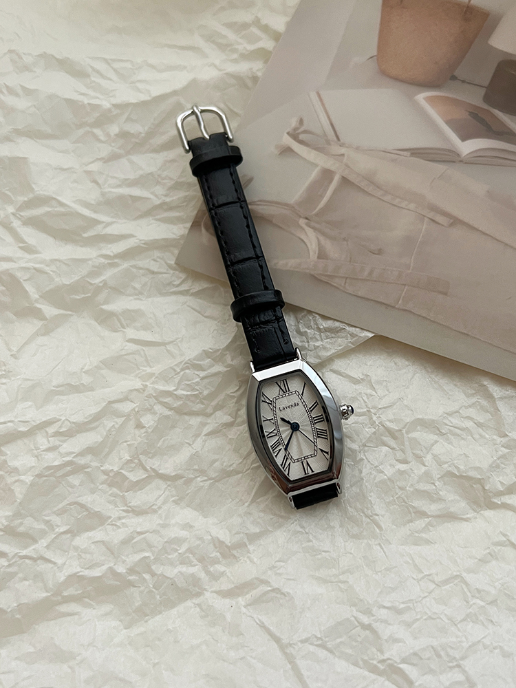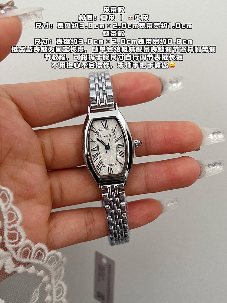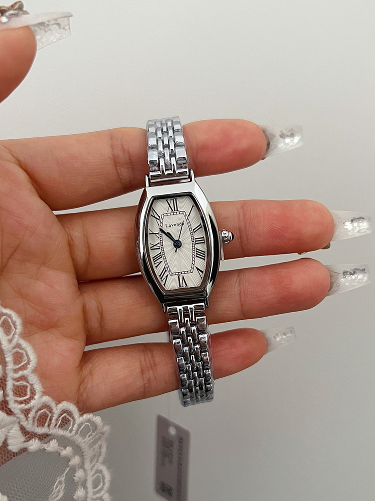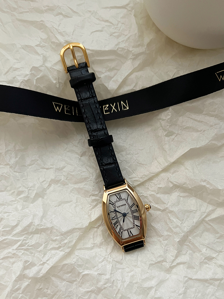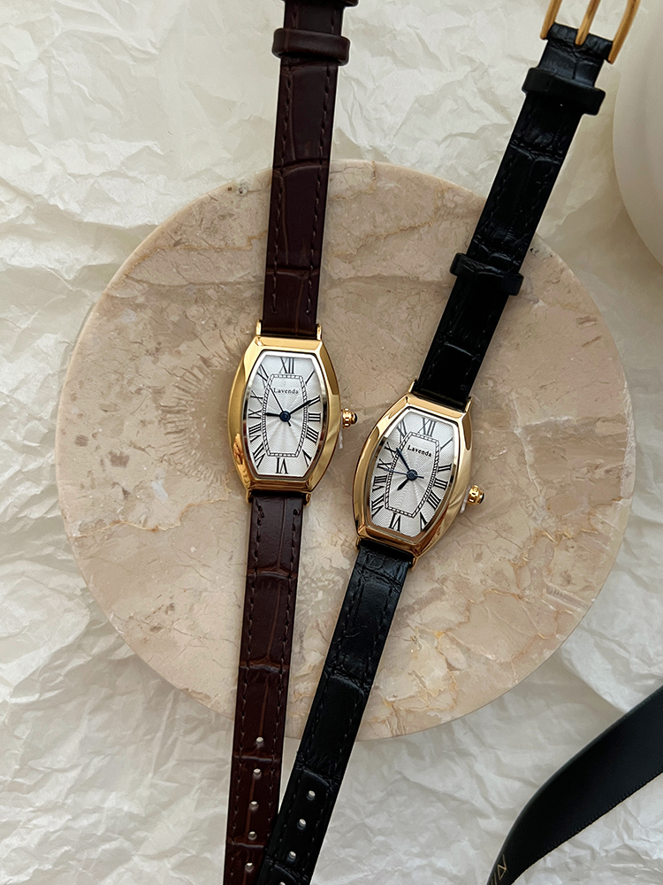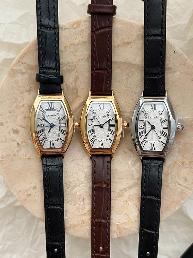 Korean Imported Lavenda High-End Elegant Leather Strap Watch, Women's Autumn and Winter Niche Retro Barrel-Shaped Women's Watch