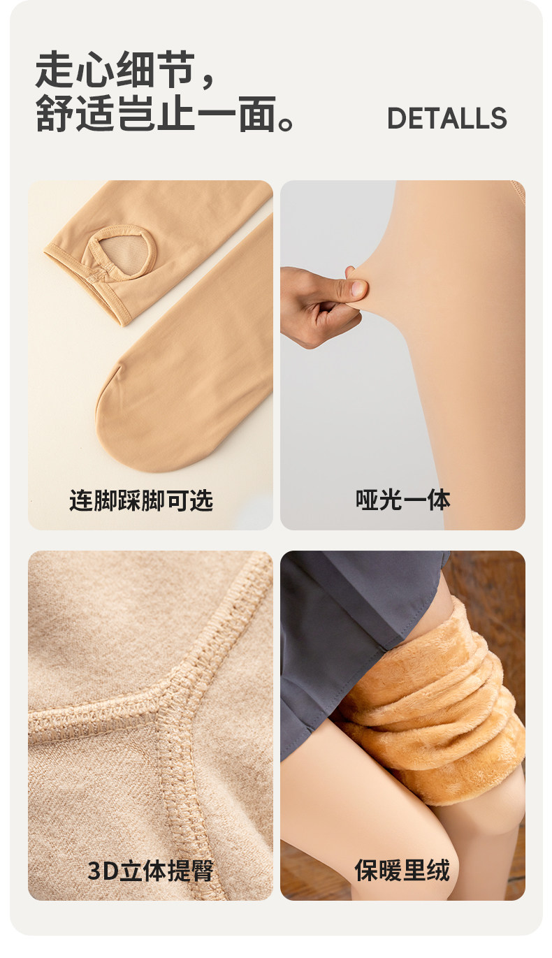 Nude-Colored Pantyhose for Women, Autumn and Winter, with Fleece Lining, Thickened, Skin-Colored Stockings, Thin Leggings for Spring and Autumn, Suitable for Wearing Outside