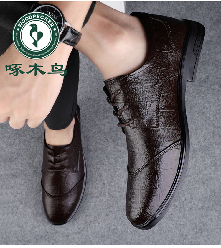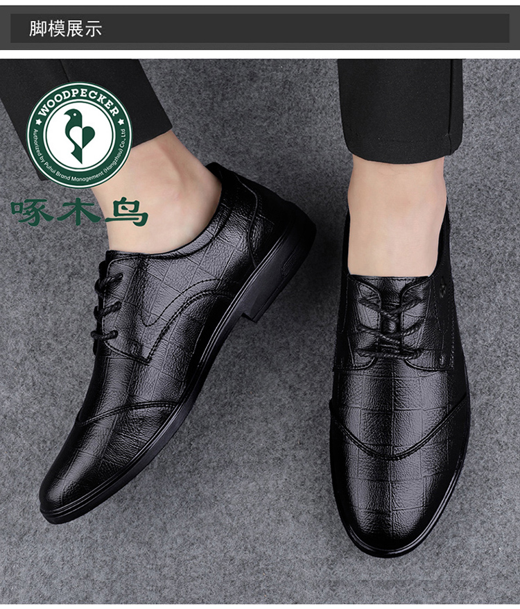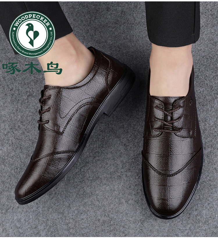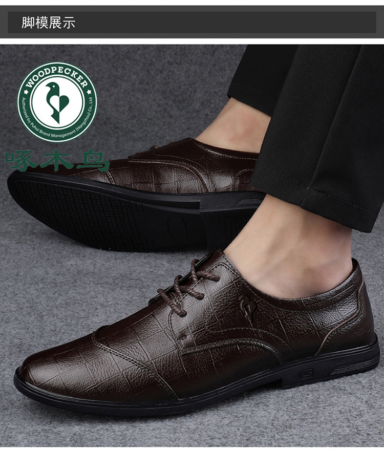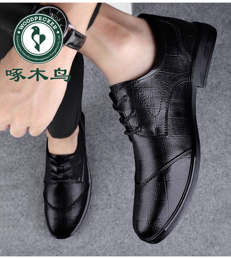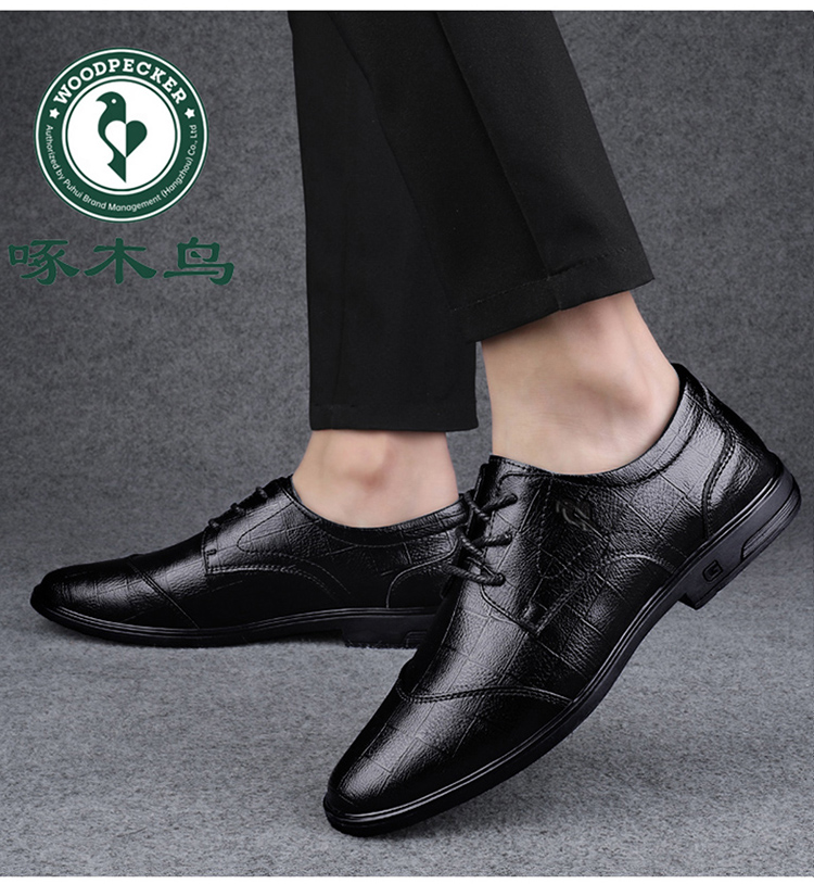 Woodpecker Men's Casual Business Formal Leather Shoes Men's Genuine Leather Breathable Black British Style Autumn New Men's Shoes Trendy