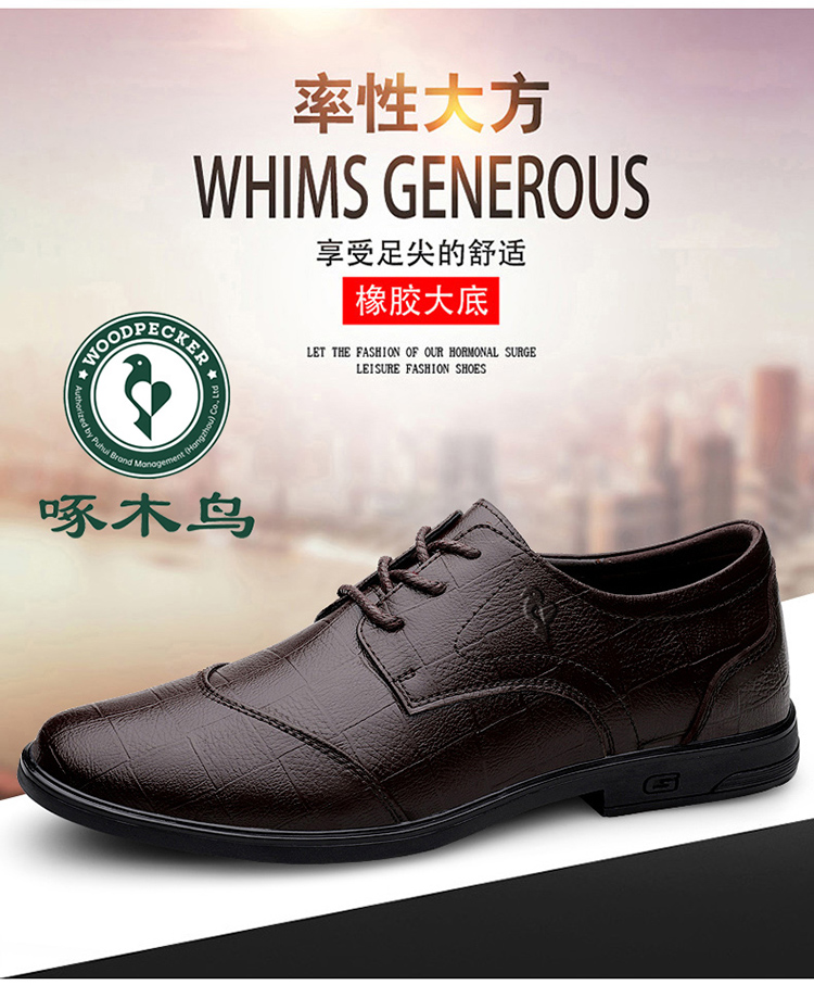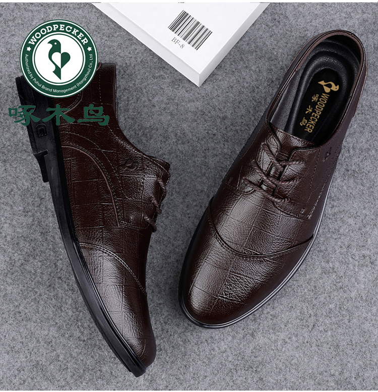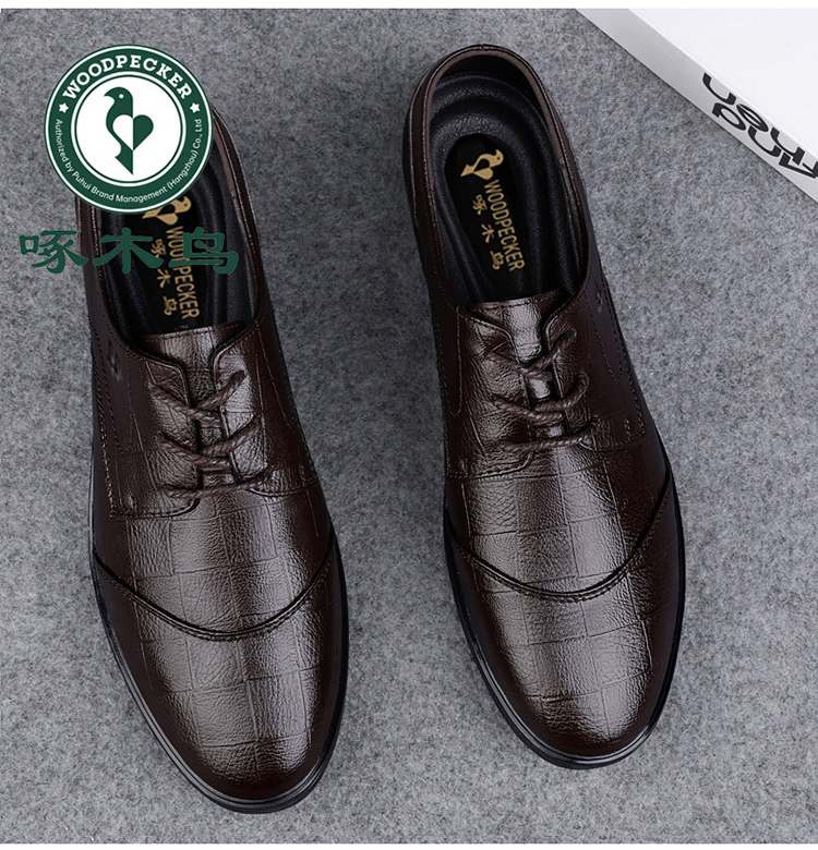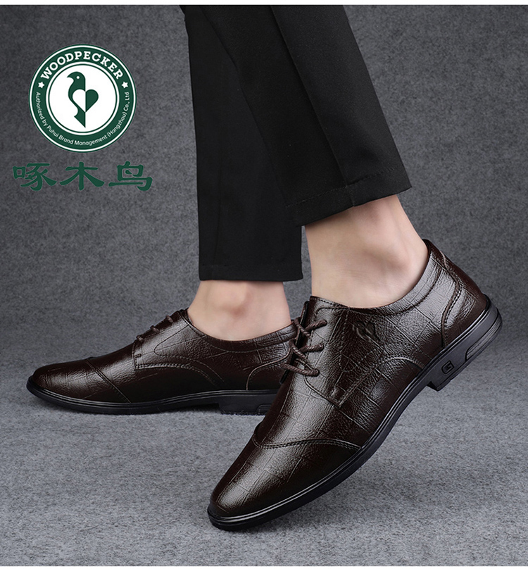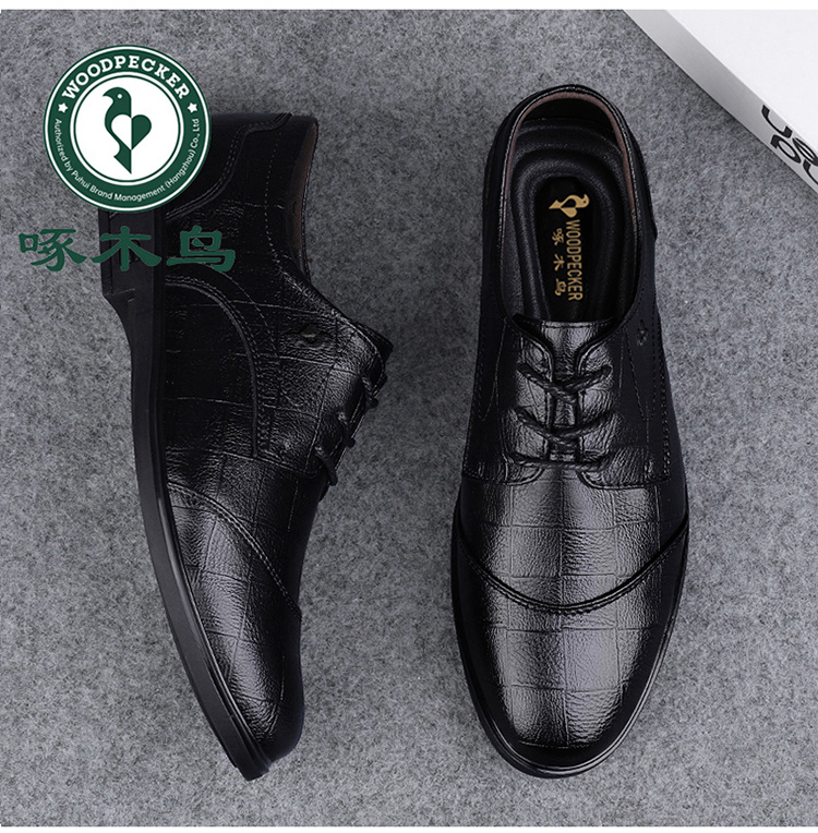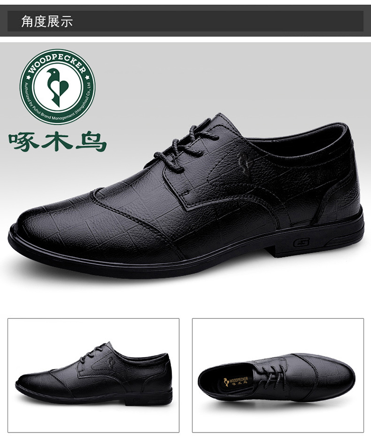 Woodpecker Men's Casual Business Formal Leather Shoes Men's Genuine Leather Breathable Black British Style Autumn New Men's Shoes Trendy