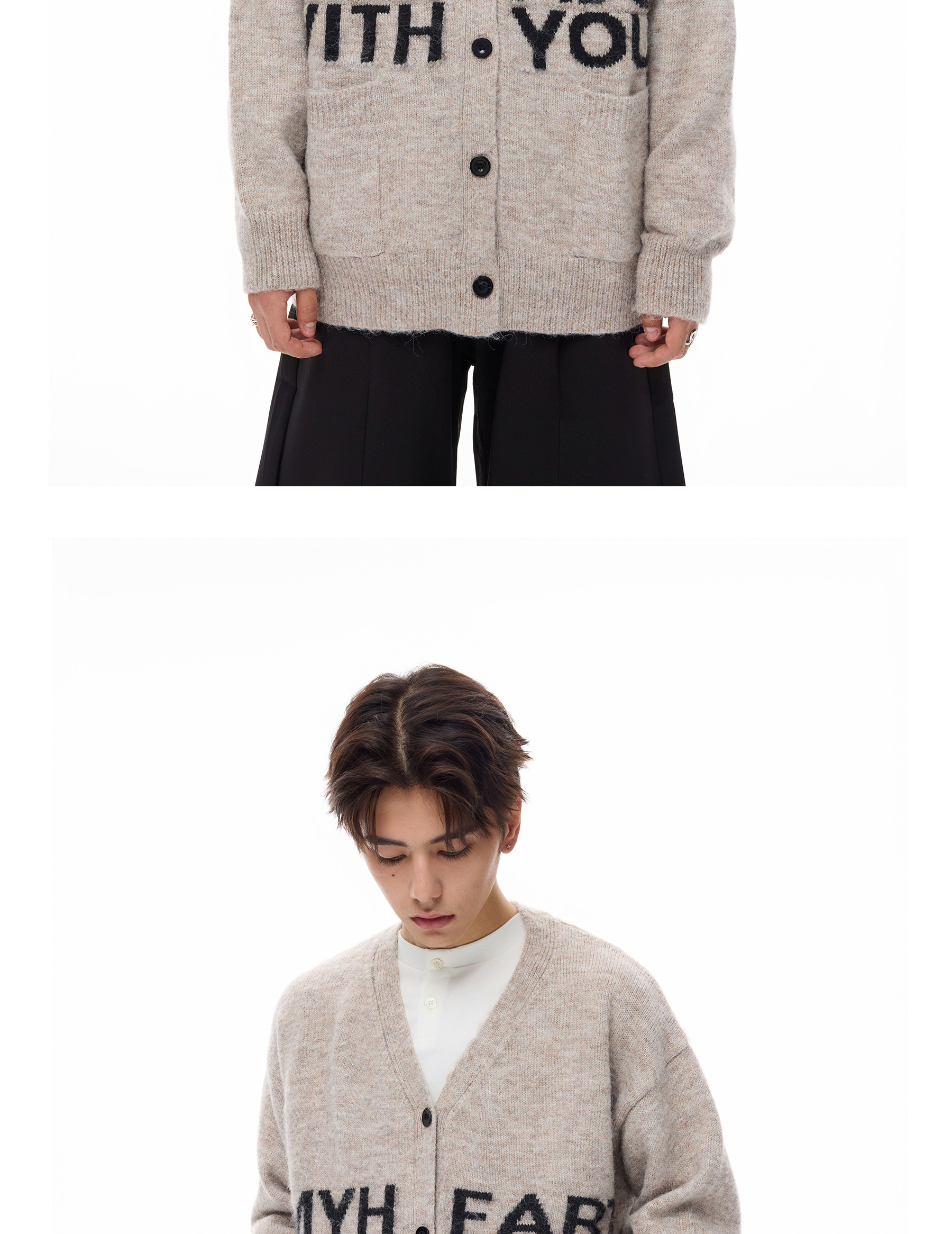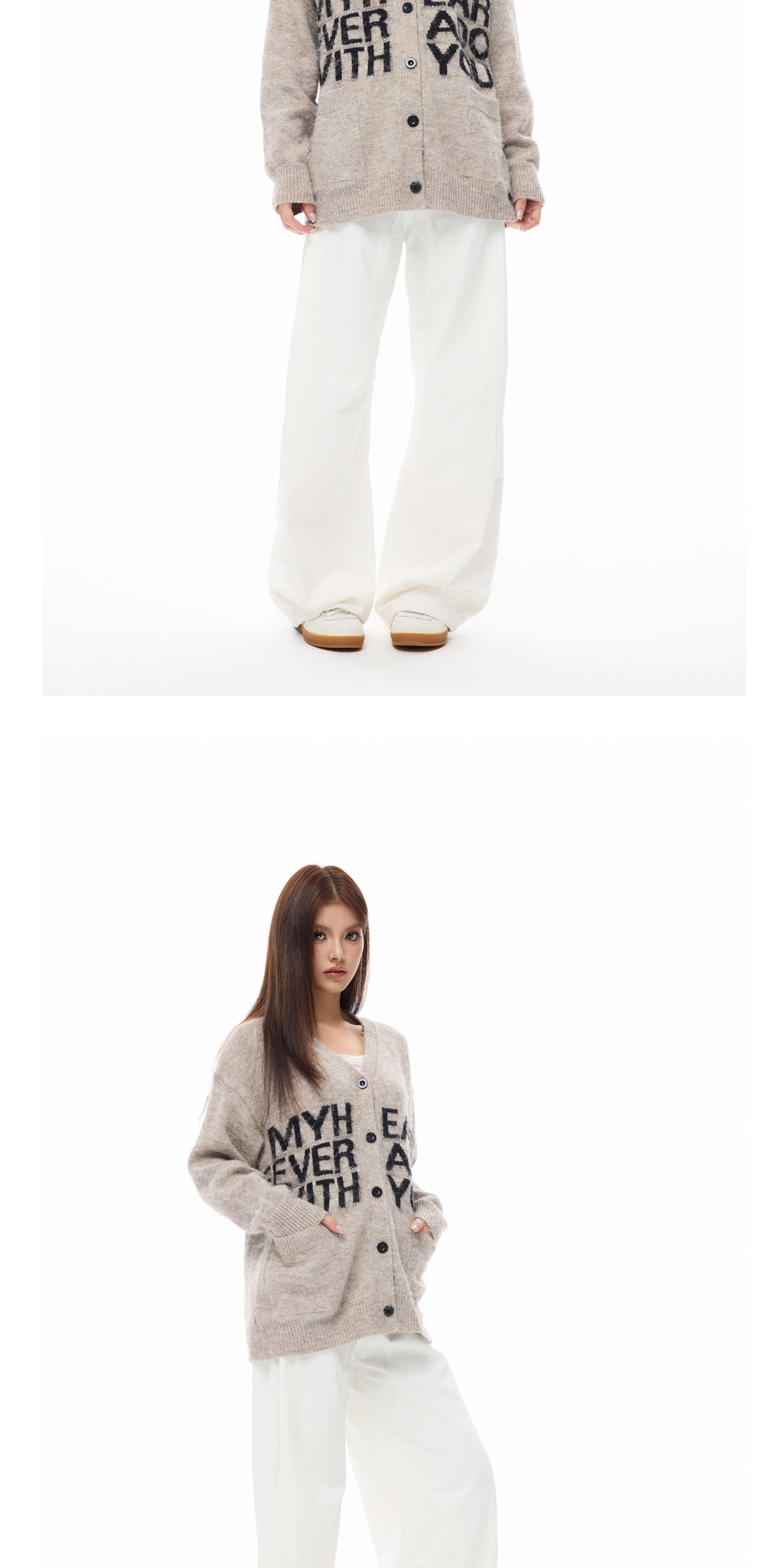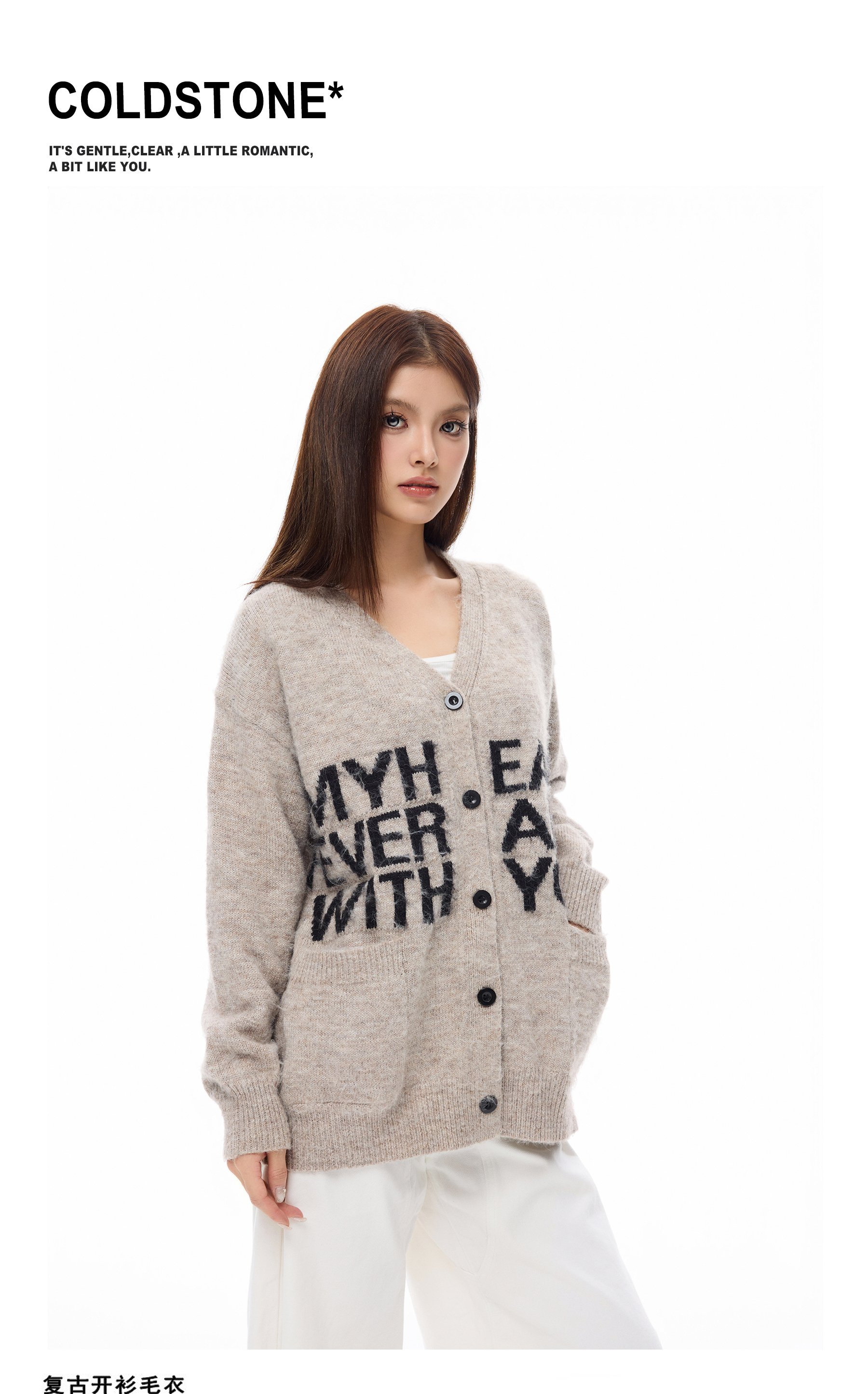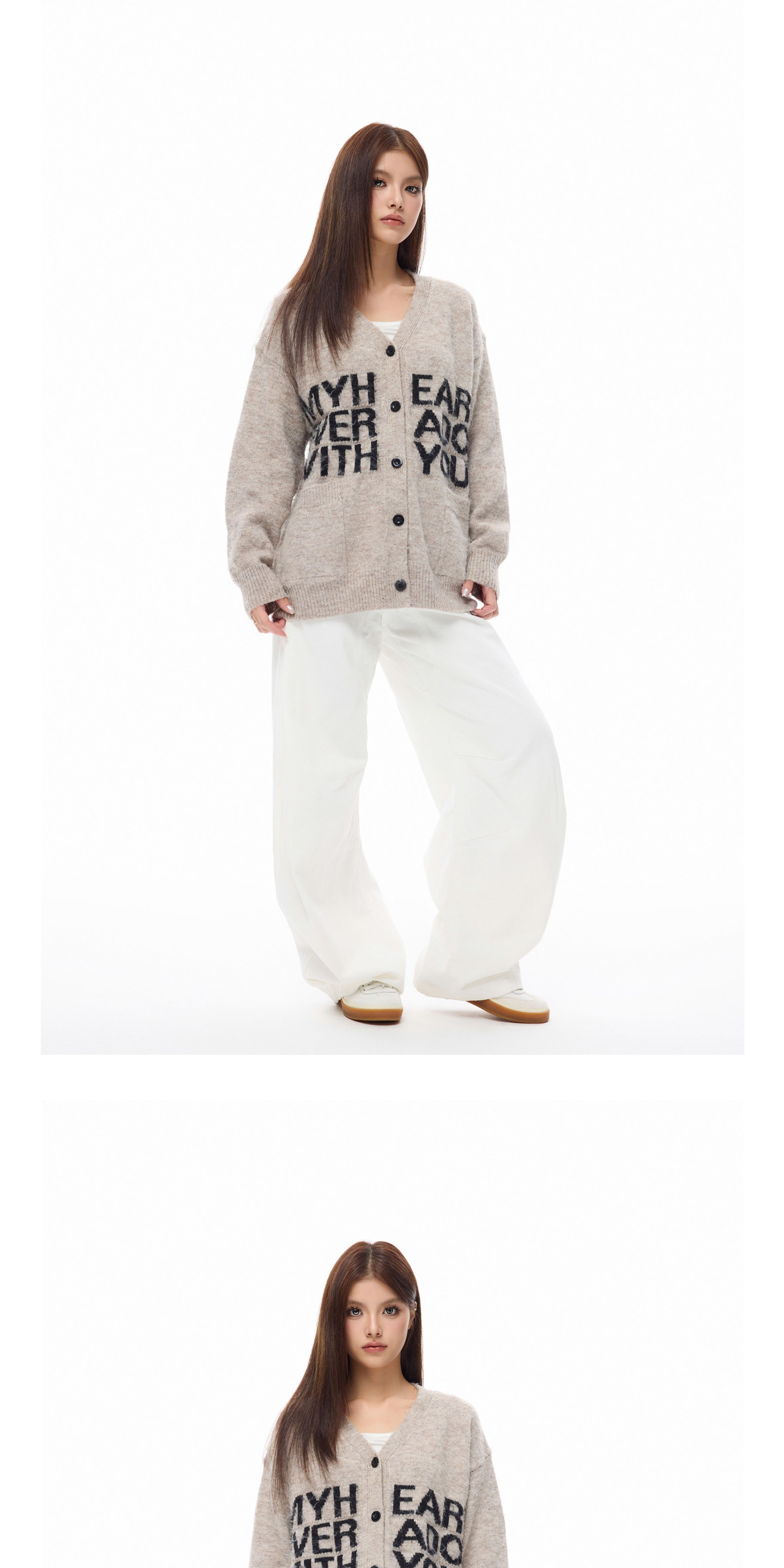 Wang Lujie's Same Style Coldstone Autumn and Winter High-End Letter Print Lazy Soft Sweater Retro Knit Cardigan for Men and Women