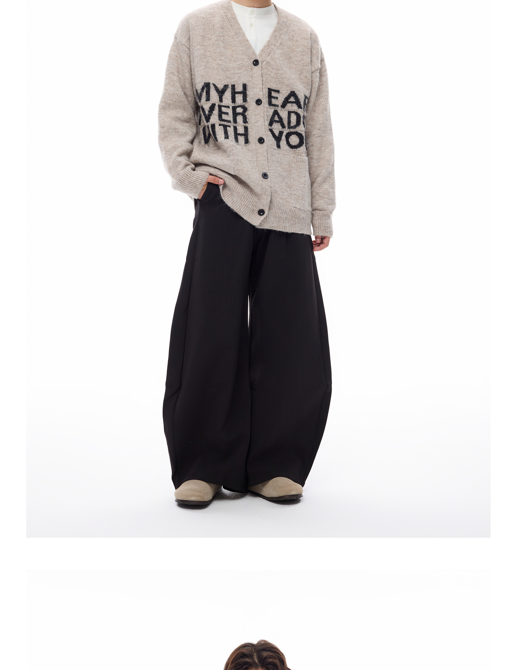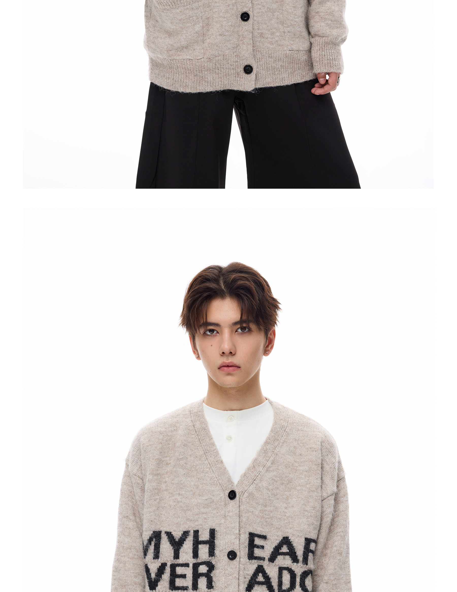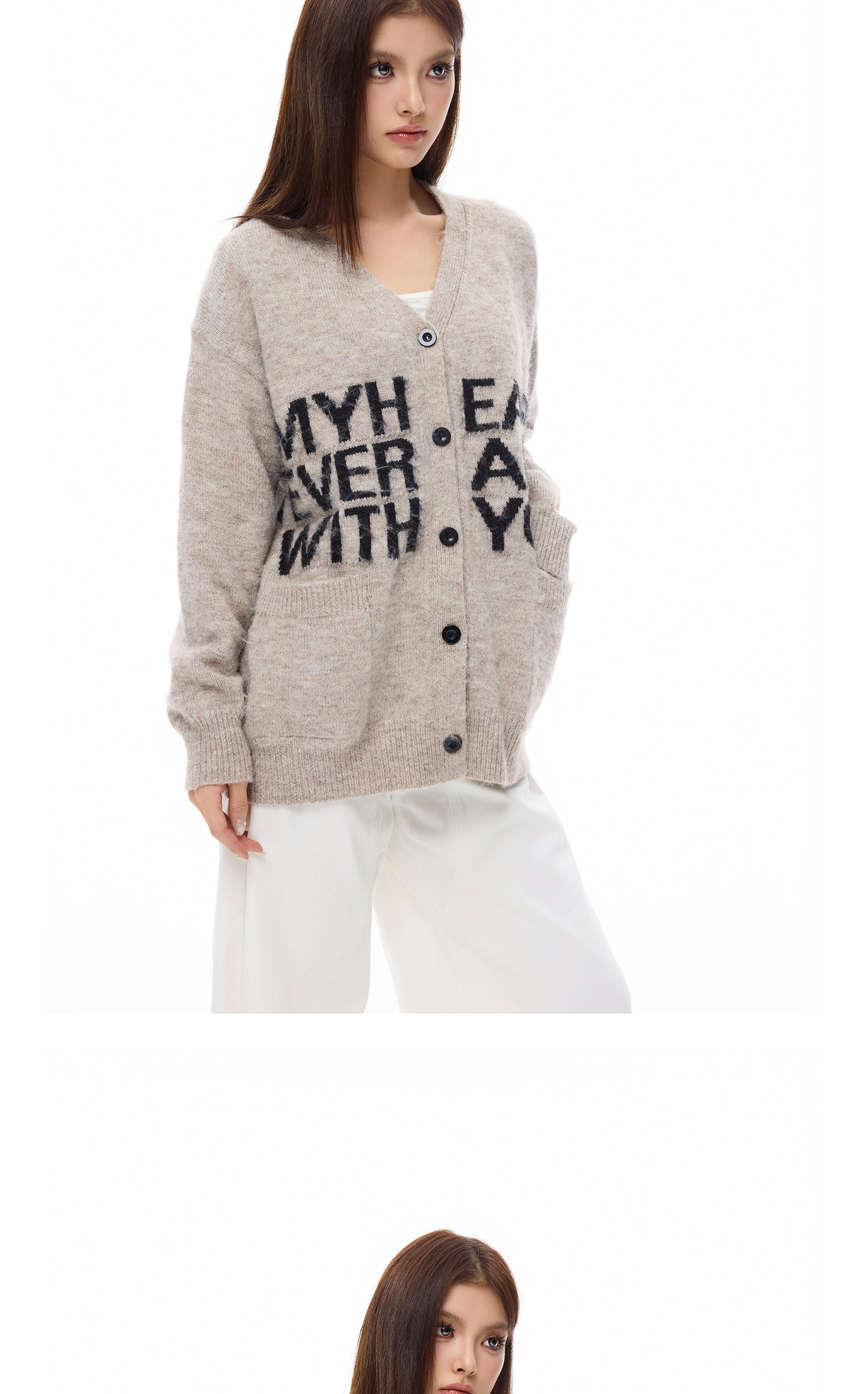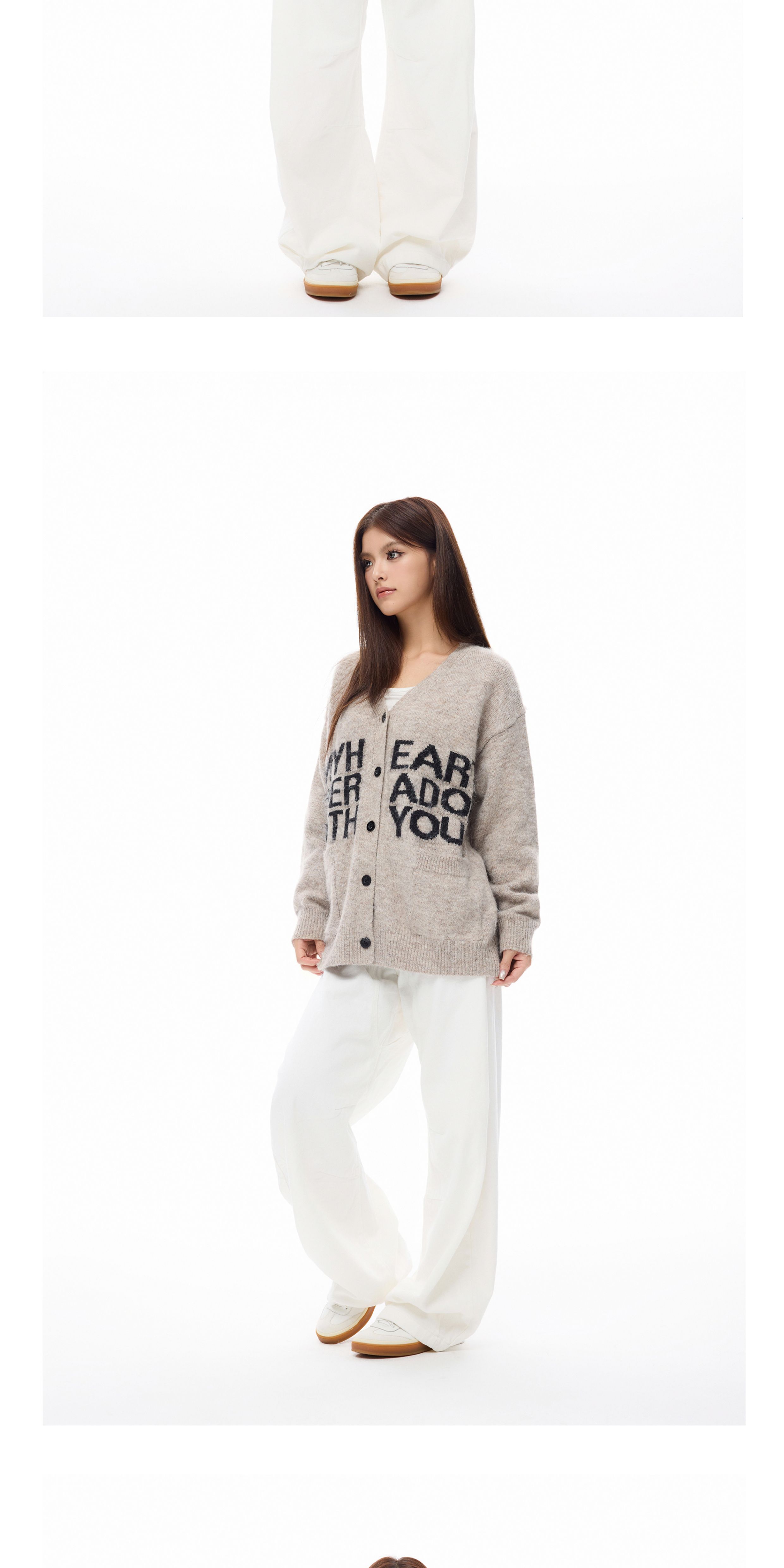 Wang Lujie's Same Style Coldstone Autumn and Winter High-End Letter Print Lazy Soft Sweater Retro Knit Cardigan for Men and Women