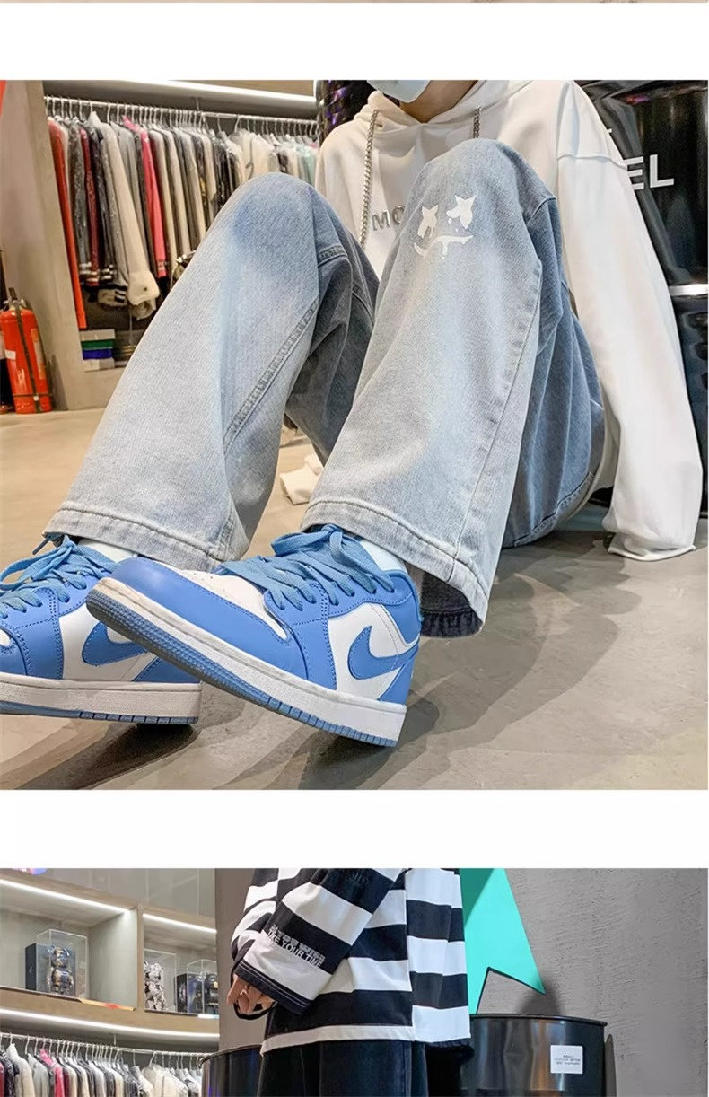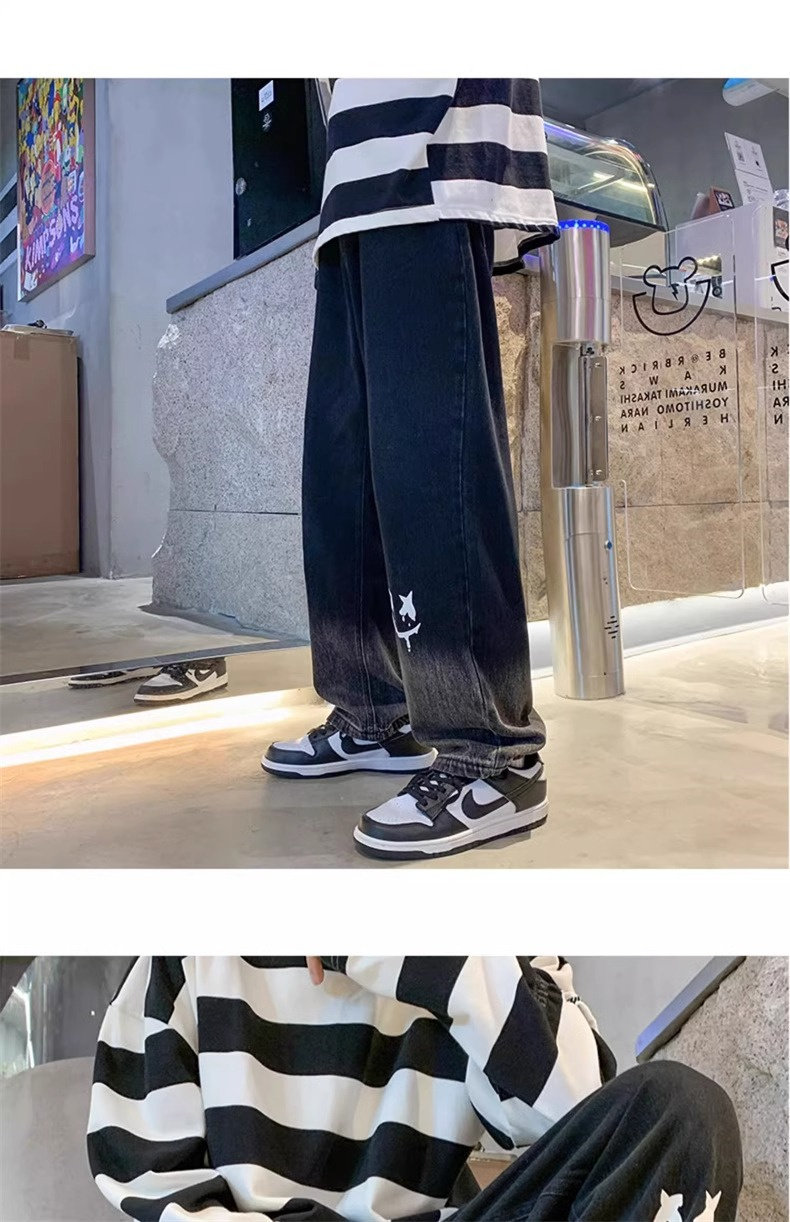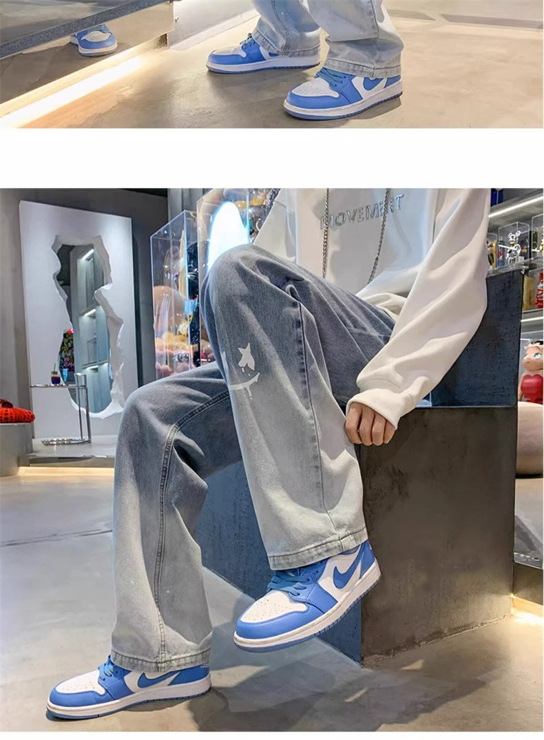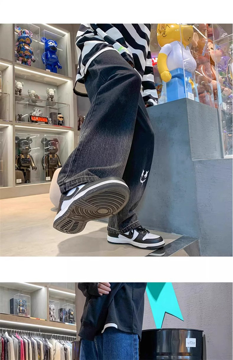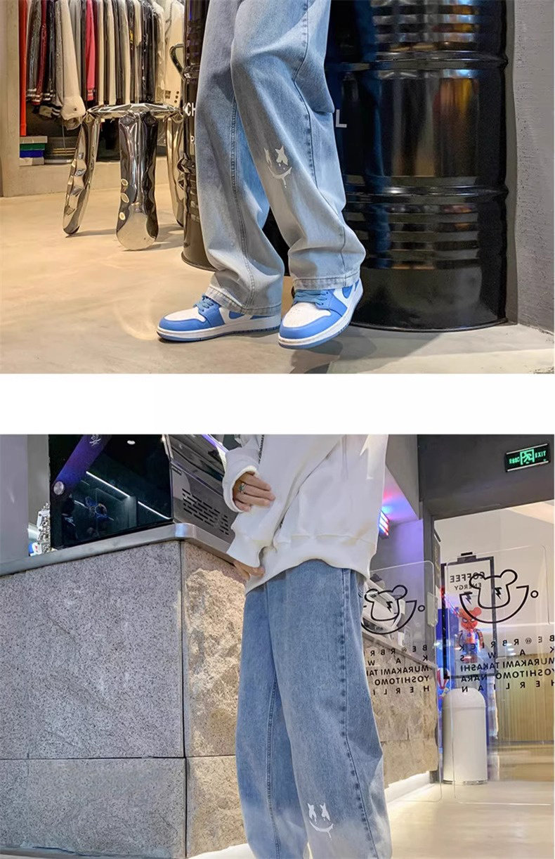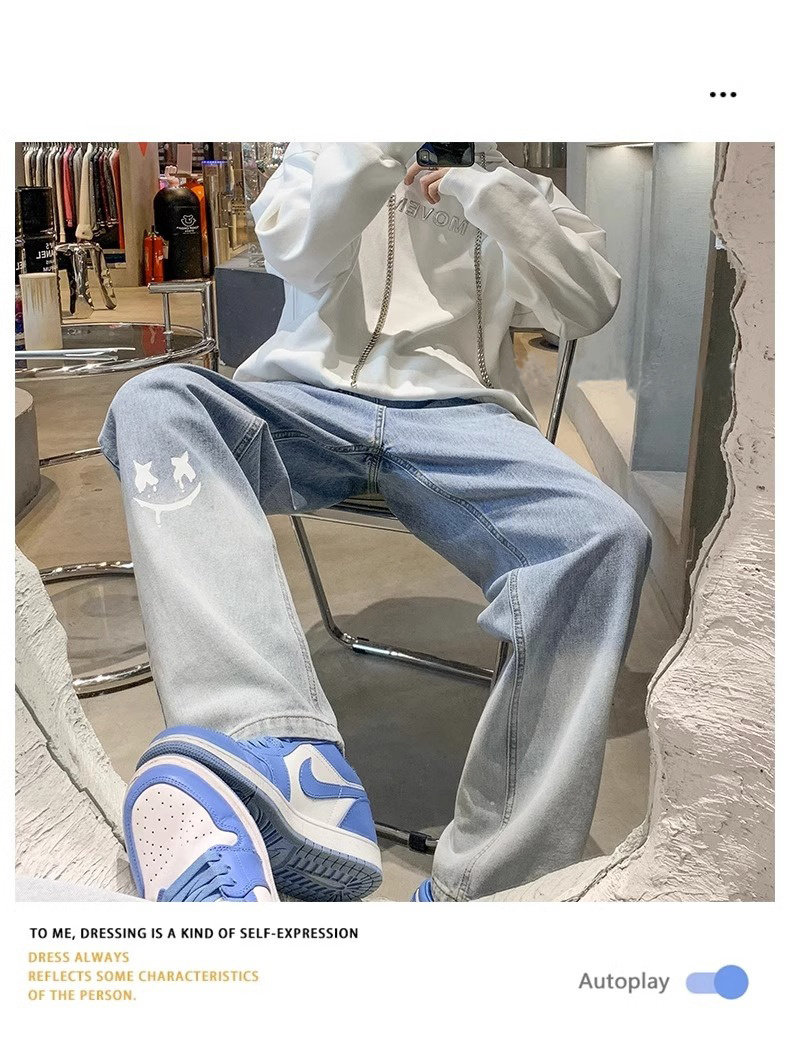Woodpecker Print Pants for Boys, Autumn and Winter Trendy Brand Smiley Face Graffiti Jeans, Loose Straight-Leg Trousers for Teenagers