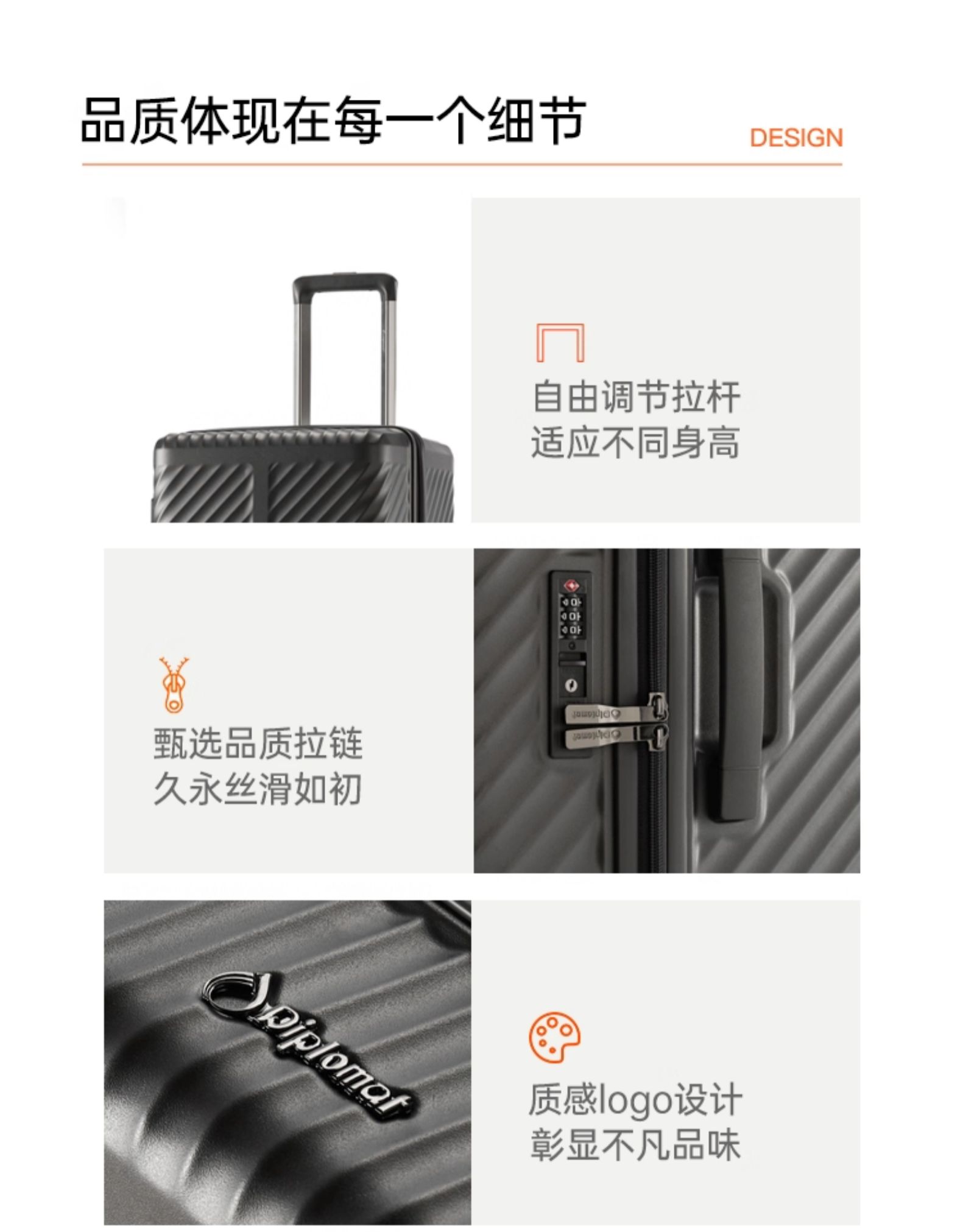 diplomat/diplomat Large Capacity Luggage Case 2025 New arrival Strong and Durable Trolley Case 26/30 Inches