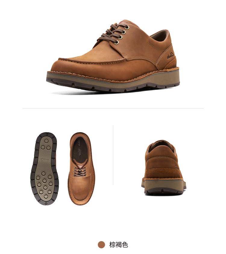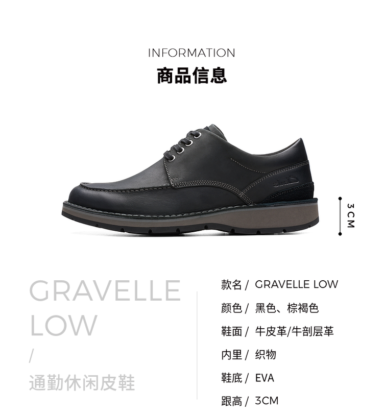 Clarks Gravellelow Men's Casual Leather Shoes, Late Autumn Thick-Soled Business Simple Commuting Cowhide Shoes