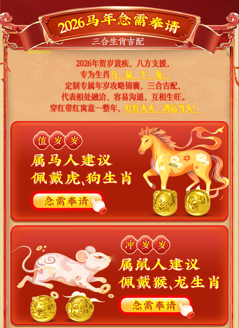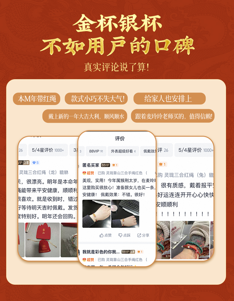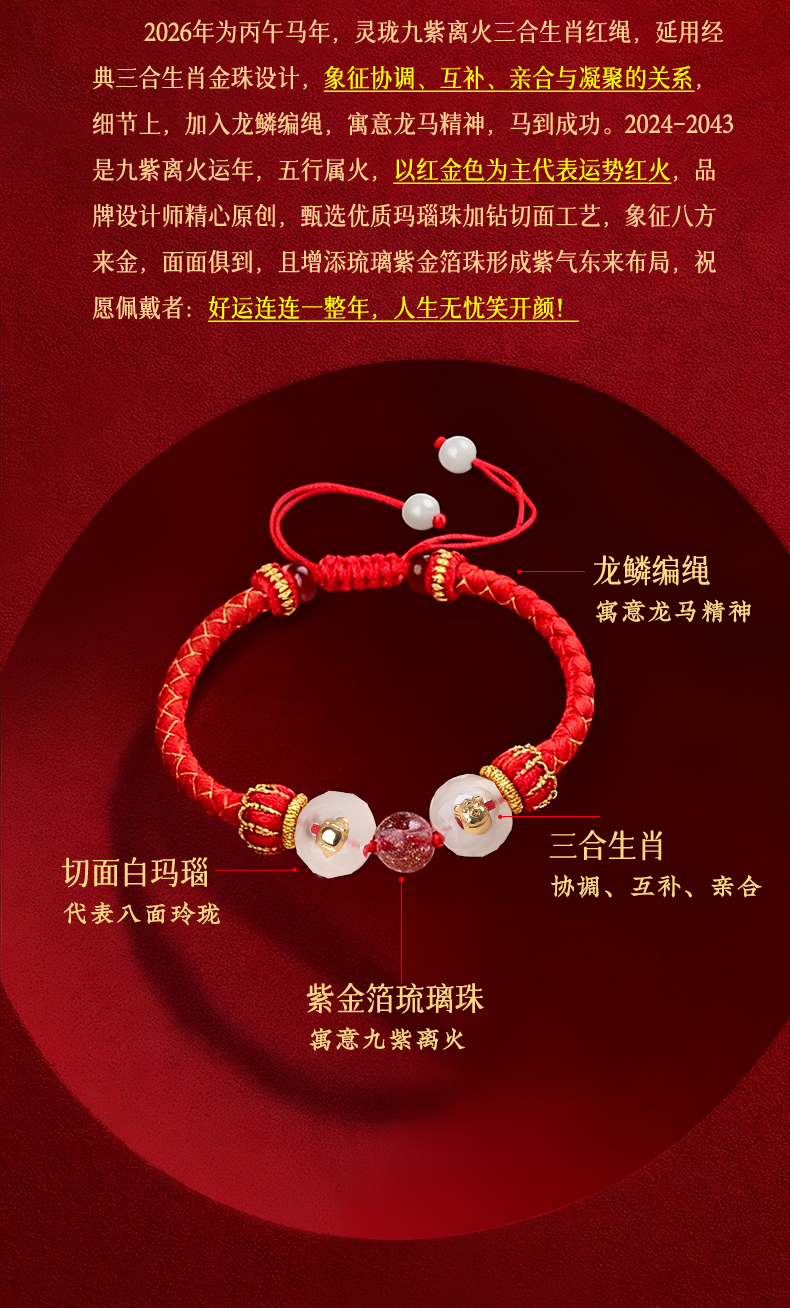 Lingji Mai Lingling 2026 Lucky Three Harmonies Zodiac Red String Bracelet for Horse, Ox, Rabbit, Rat - Birth Year Tai Sui Bracelet