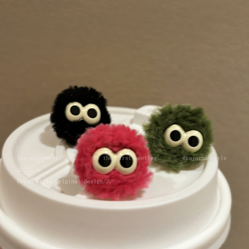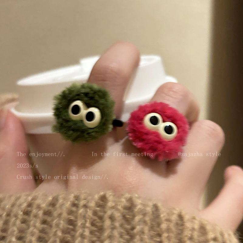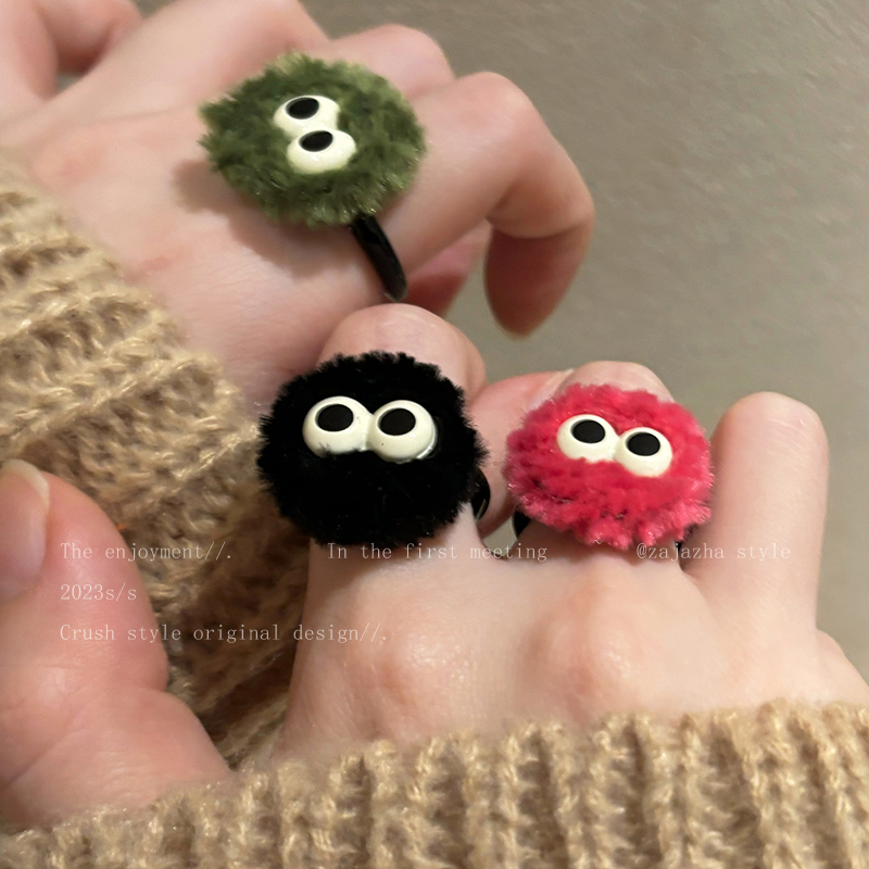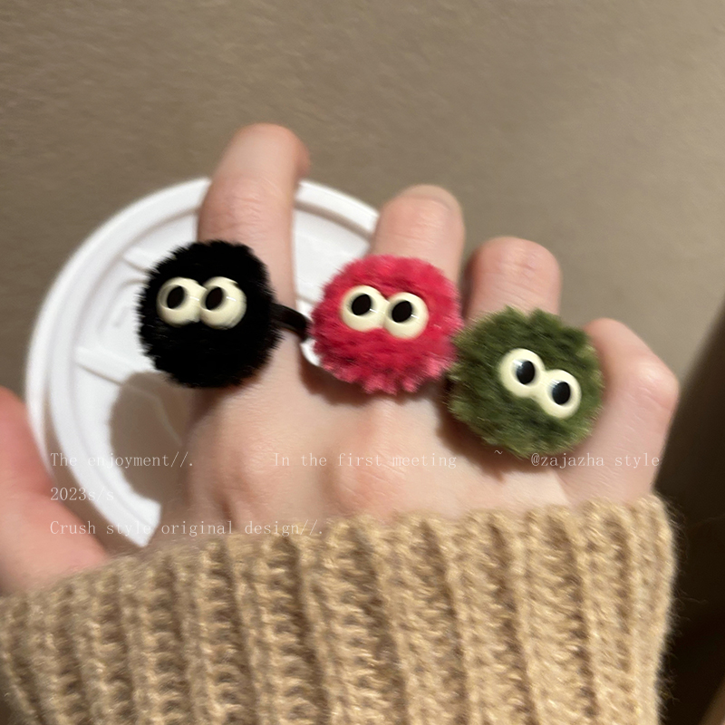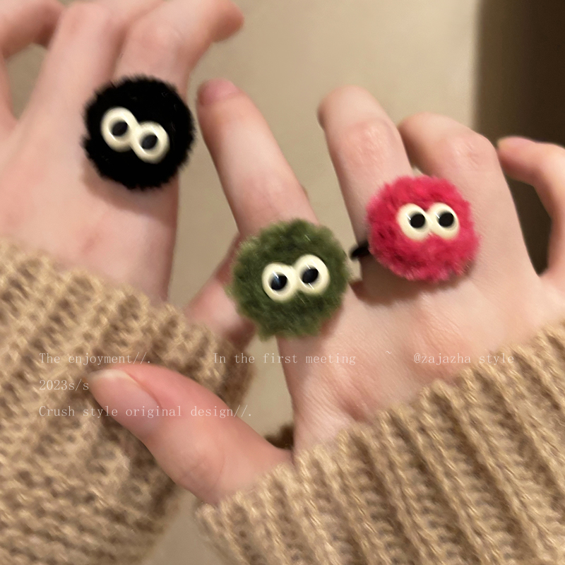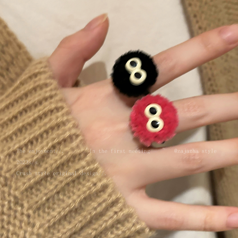 Cute Little Coal Ball Plush Ring for Women, Niche Design, Exaggerated and Quirky Index Finger Ring, Unusual and Unique Accessory Ring