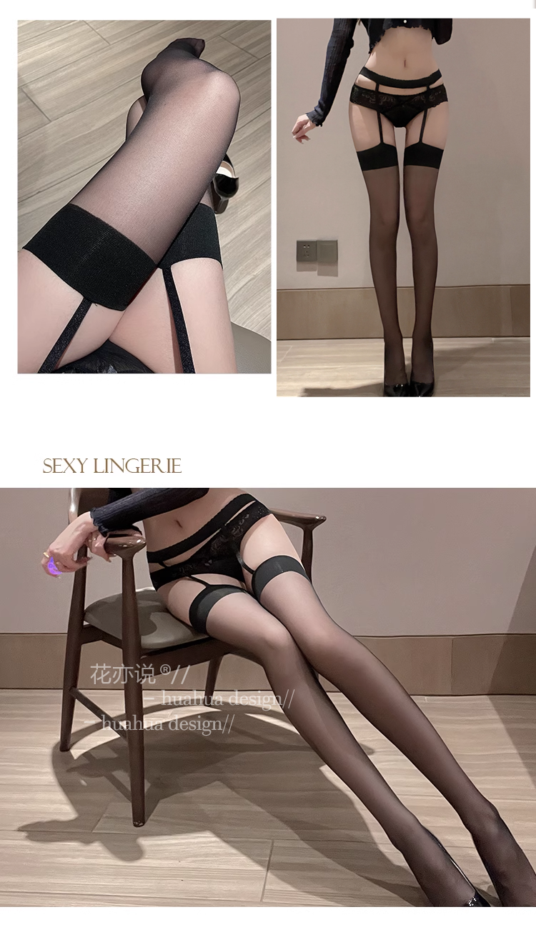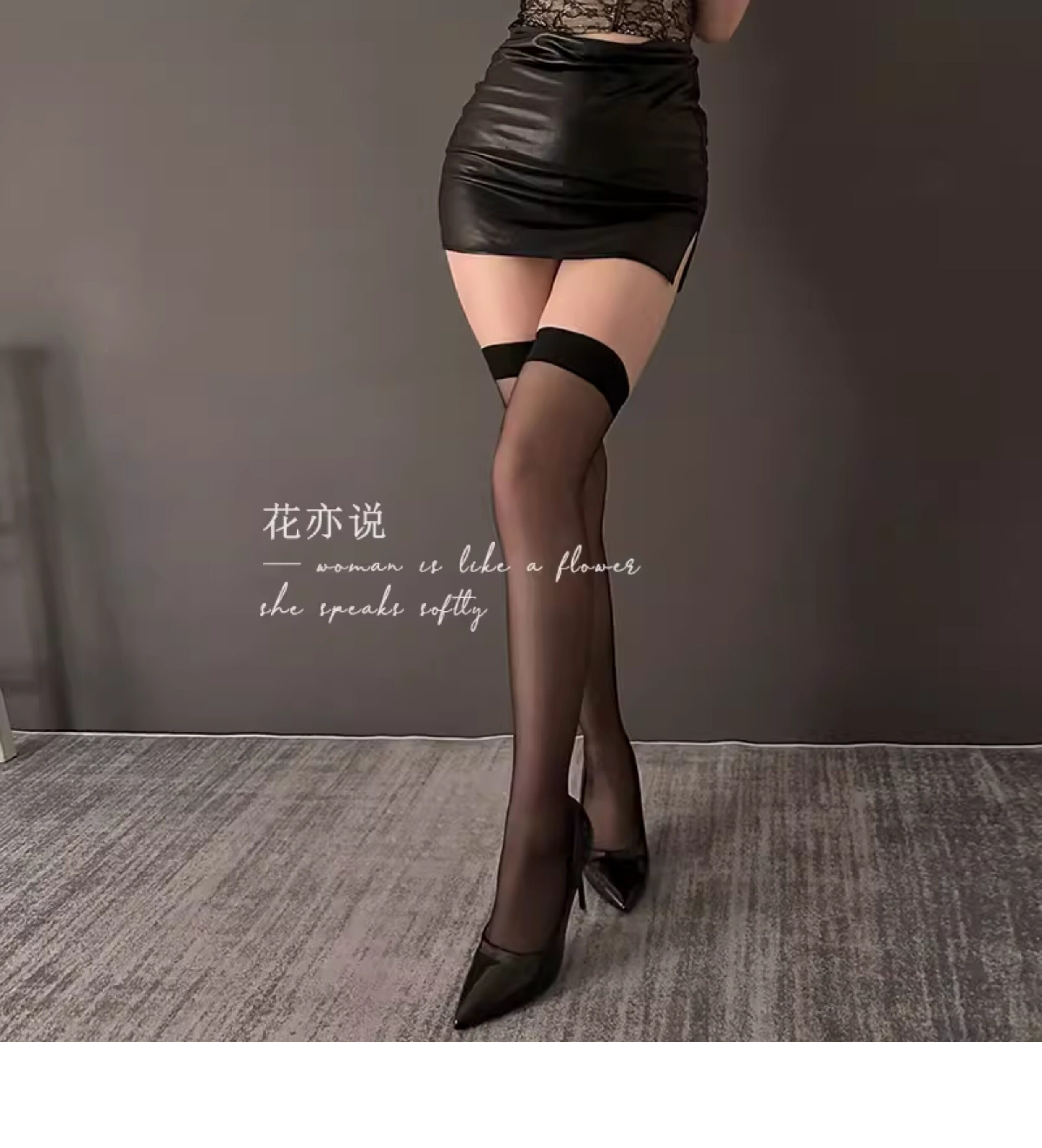 [Floral Plus Size] Sexy Red-Edged Black Stockings with Contrasting Colors, Slimming and Beautiful Legs, Mid-Calf Ultra-Thin Lace Garter Stockings All-In-One