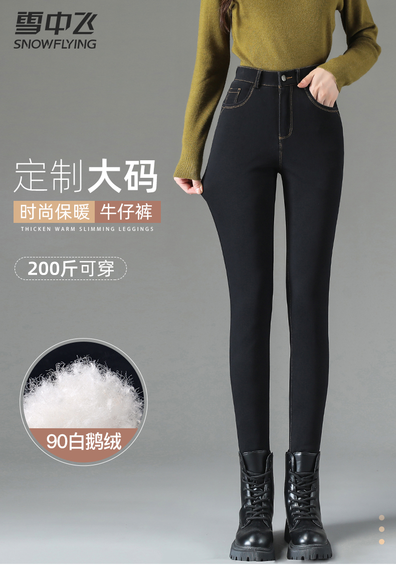 Snow-Proof Denim down Pants for Women, Large Size, 2025 New Style, Extra-Large Cotton Pants, Winter High-Waisted White Goose Down, Warm