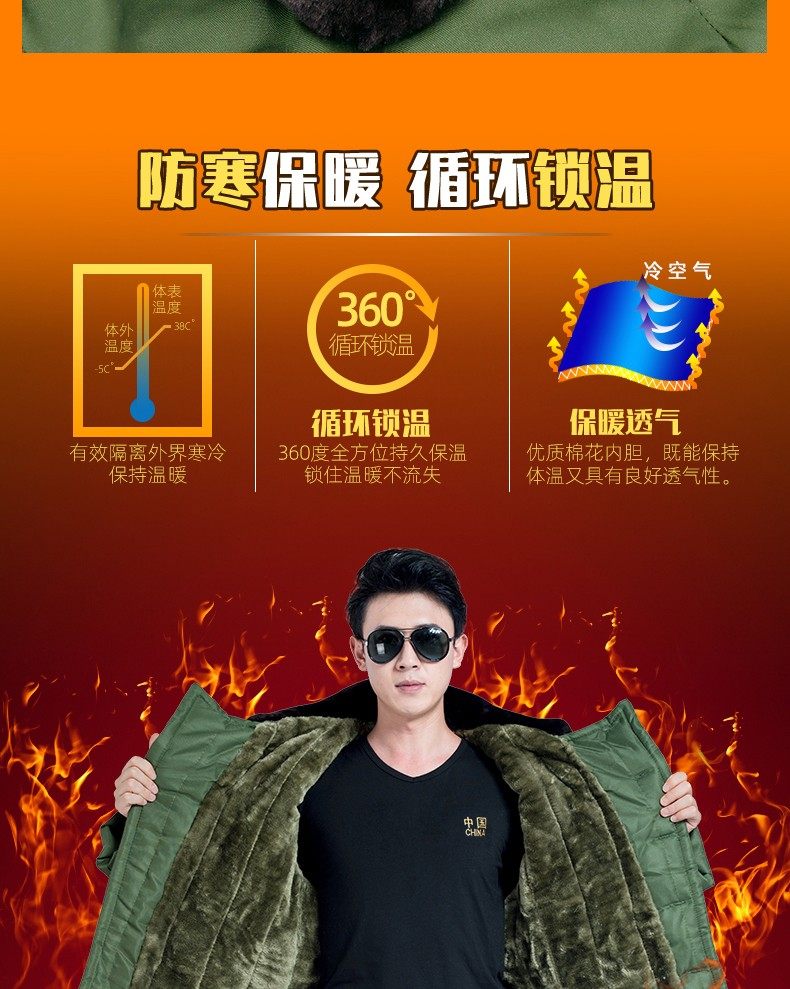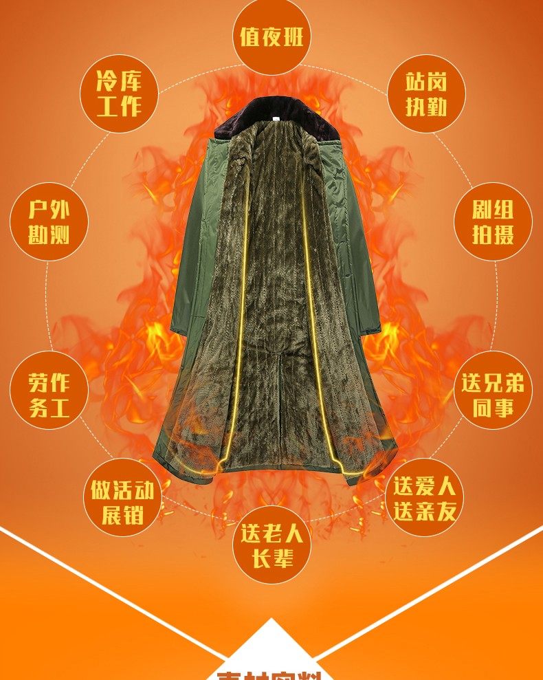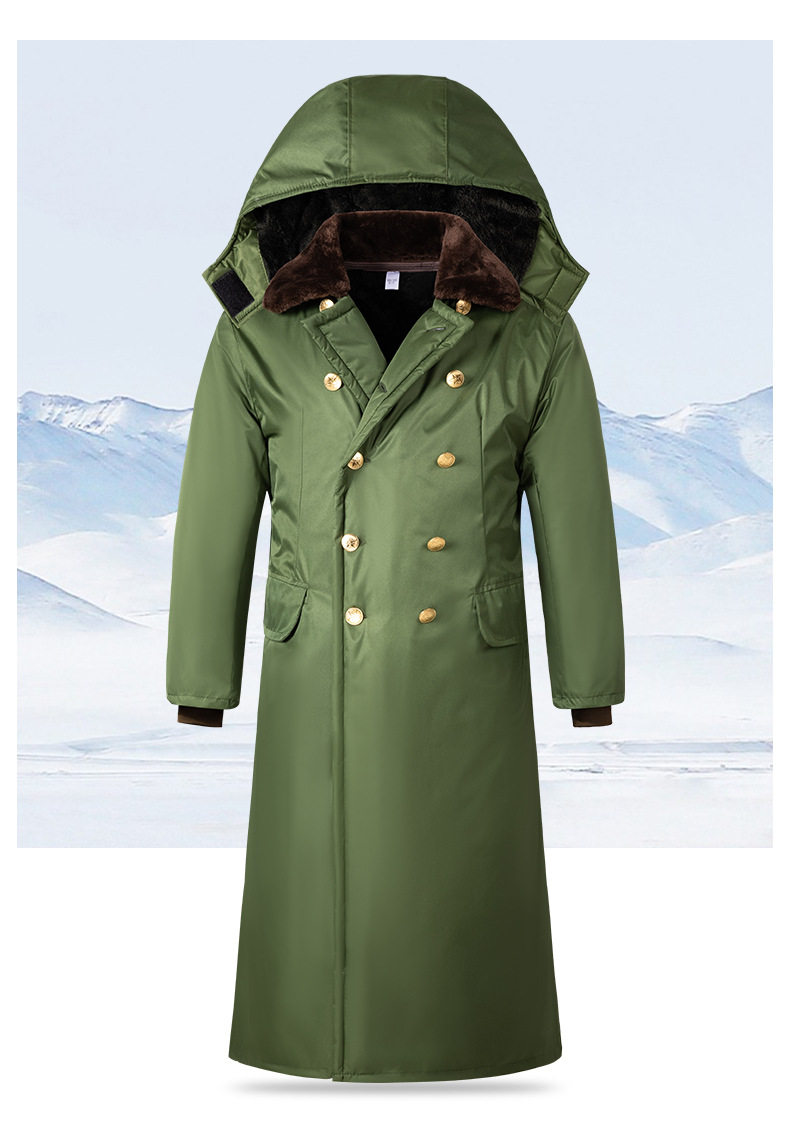 Men's Winter Military Coat with Fleece Lining, New Thickened Style, Women's Security Guard Cold-Proof Clothing, Northeast Cotton Jacket, Old-Fashioned Green Cotton Coat