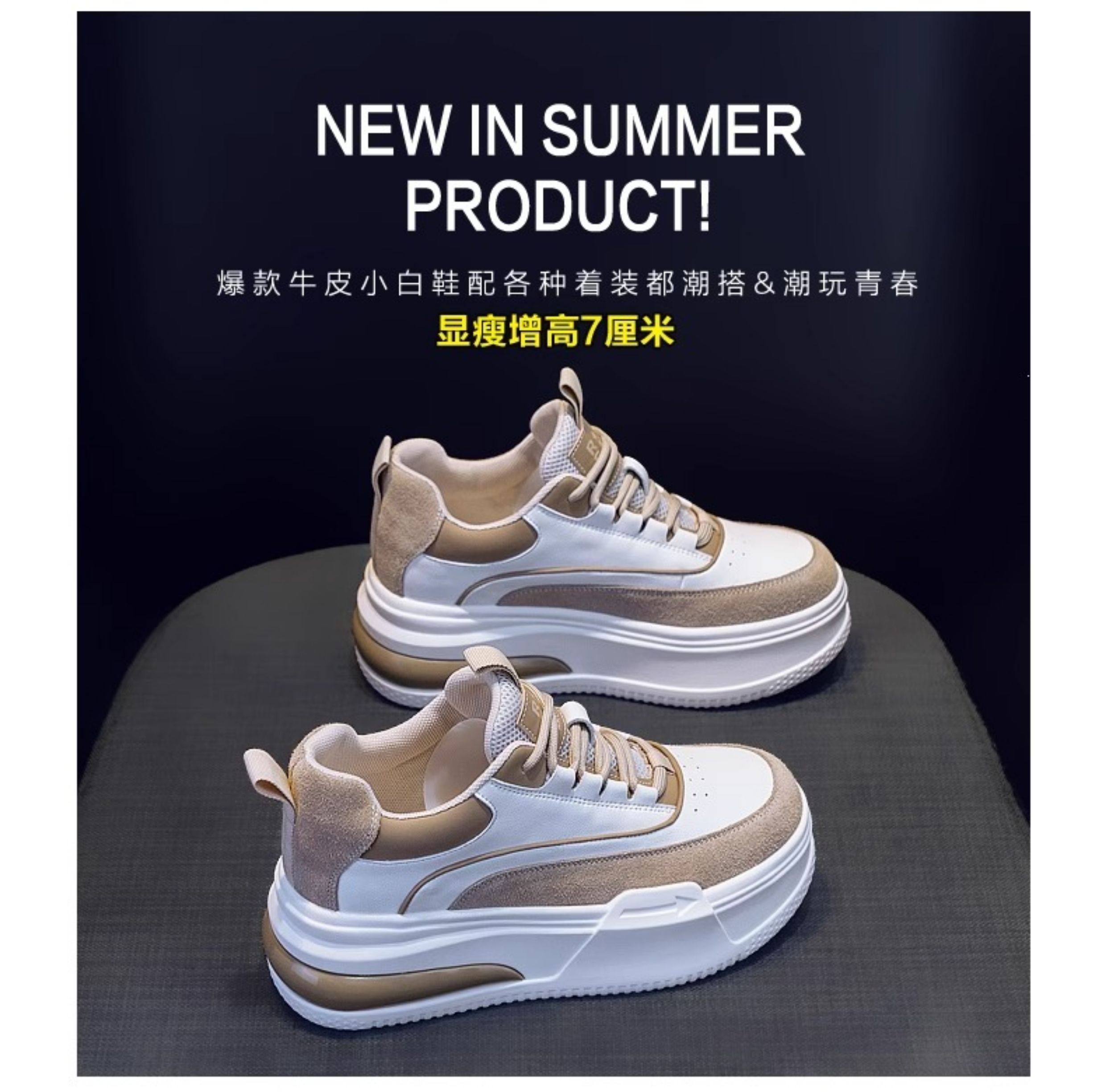 Hong Kong Thick-Soled Height-Increasing White Sneakers for Women 2025 Spring and Autumn Versatile Slimming Genuine Leather Platform Sports Casual Shoes Sneakers