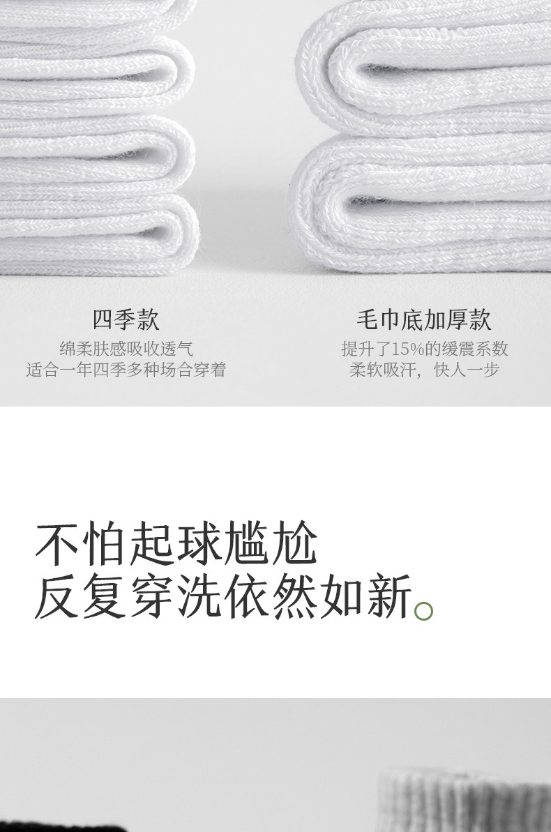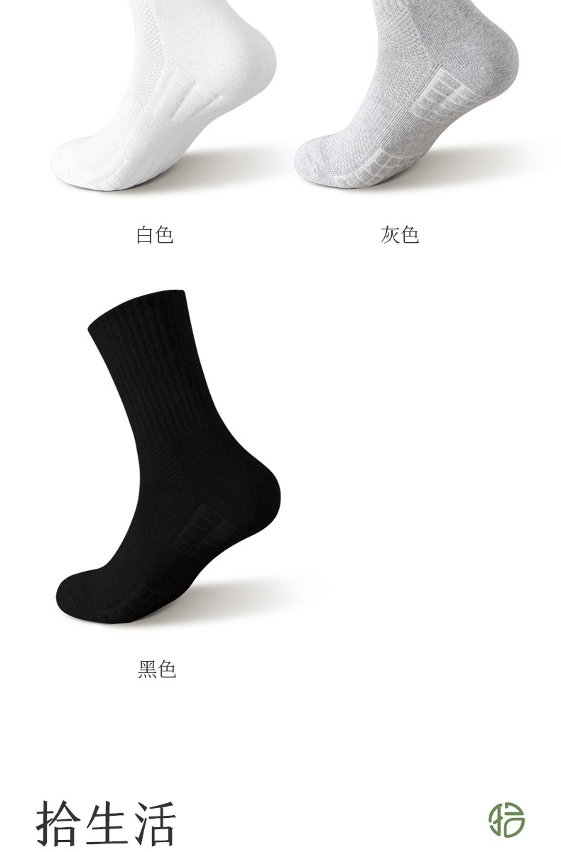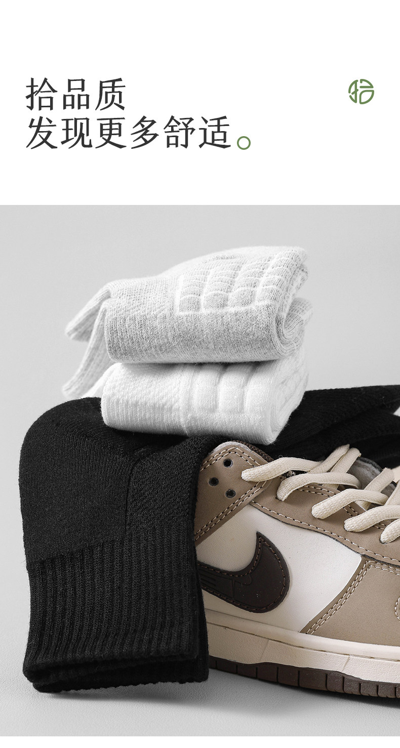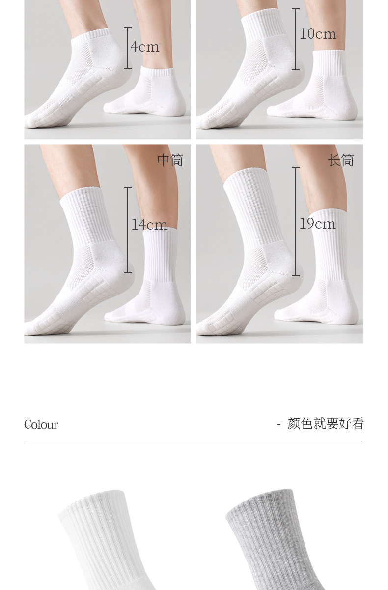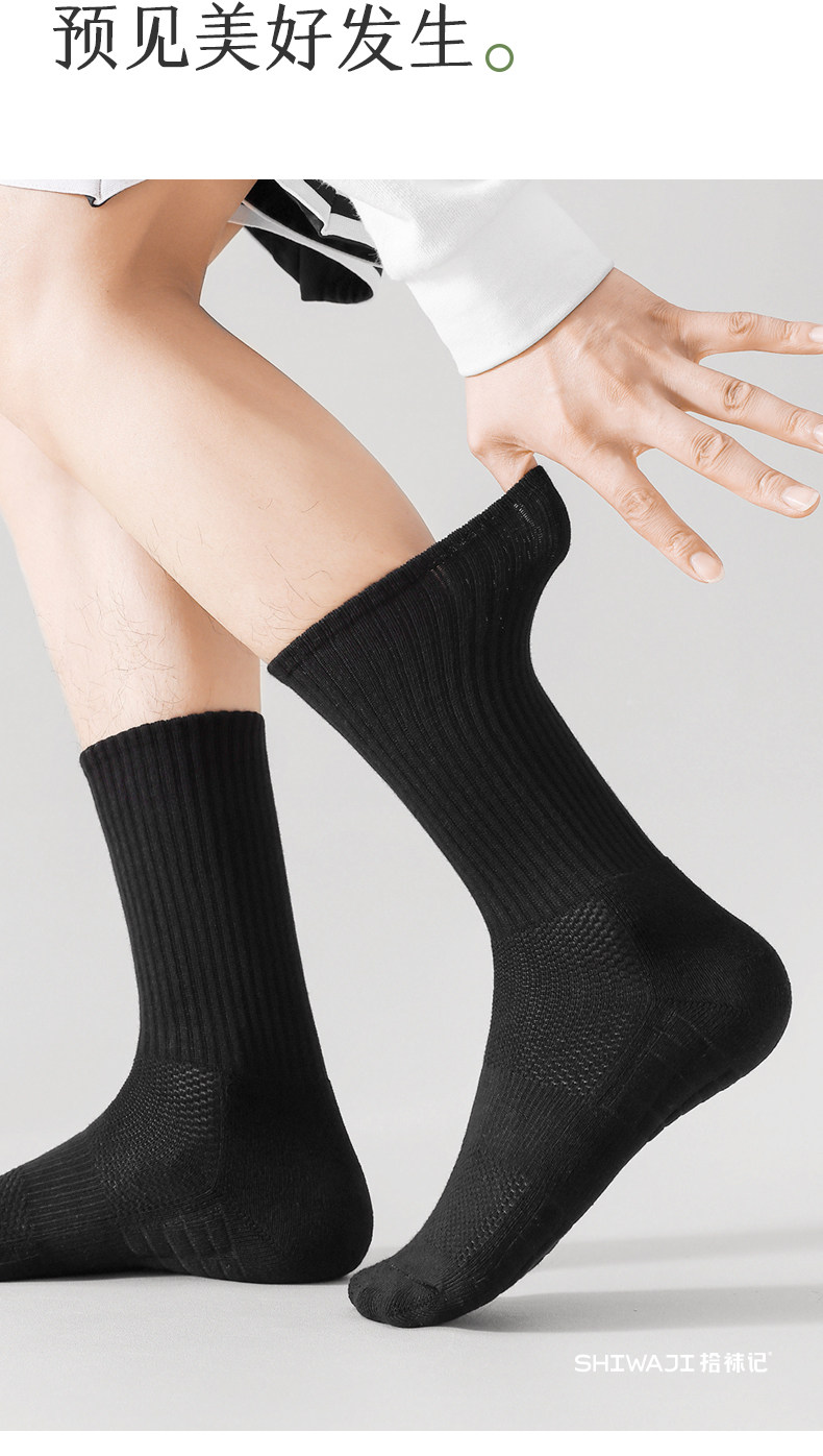 Men's Mid-Calf Sports Socks with Towel Bottom, Thin Cotton Socks for Spring and Summer, Odor-Resistant, Pure White, Non-Slip, Black Long Socks
