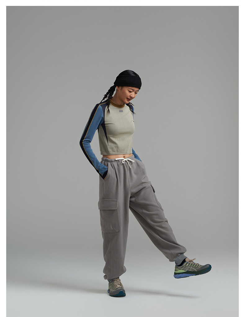 Women's Autumn and Winter Thin Fleece-Like Knit Jogger Pants with Large Pockets and Adjustable Drawstring | Ankorau