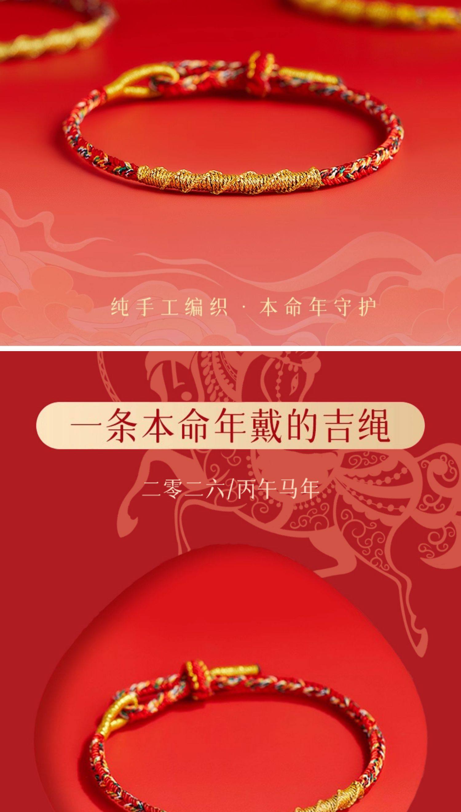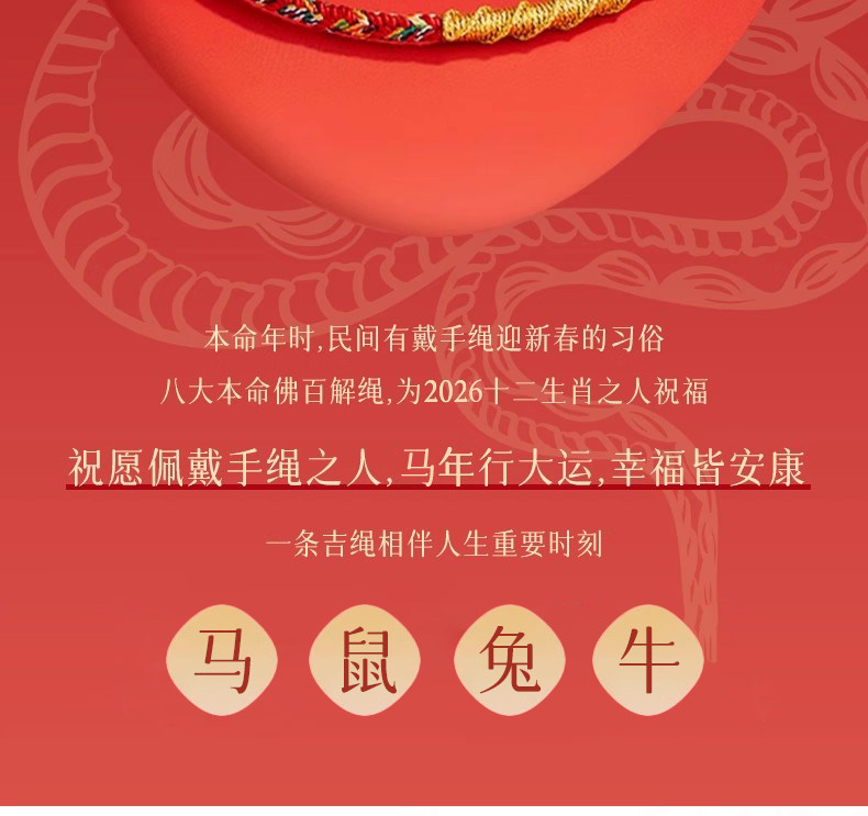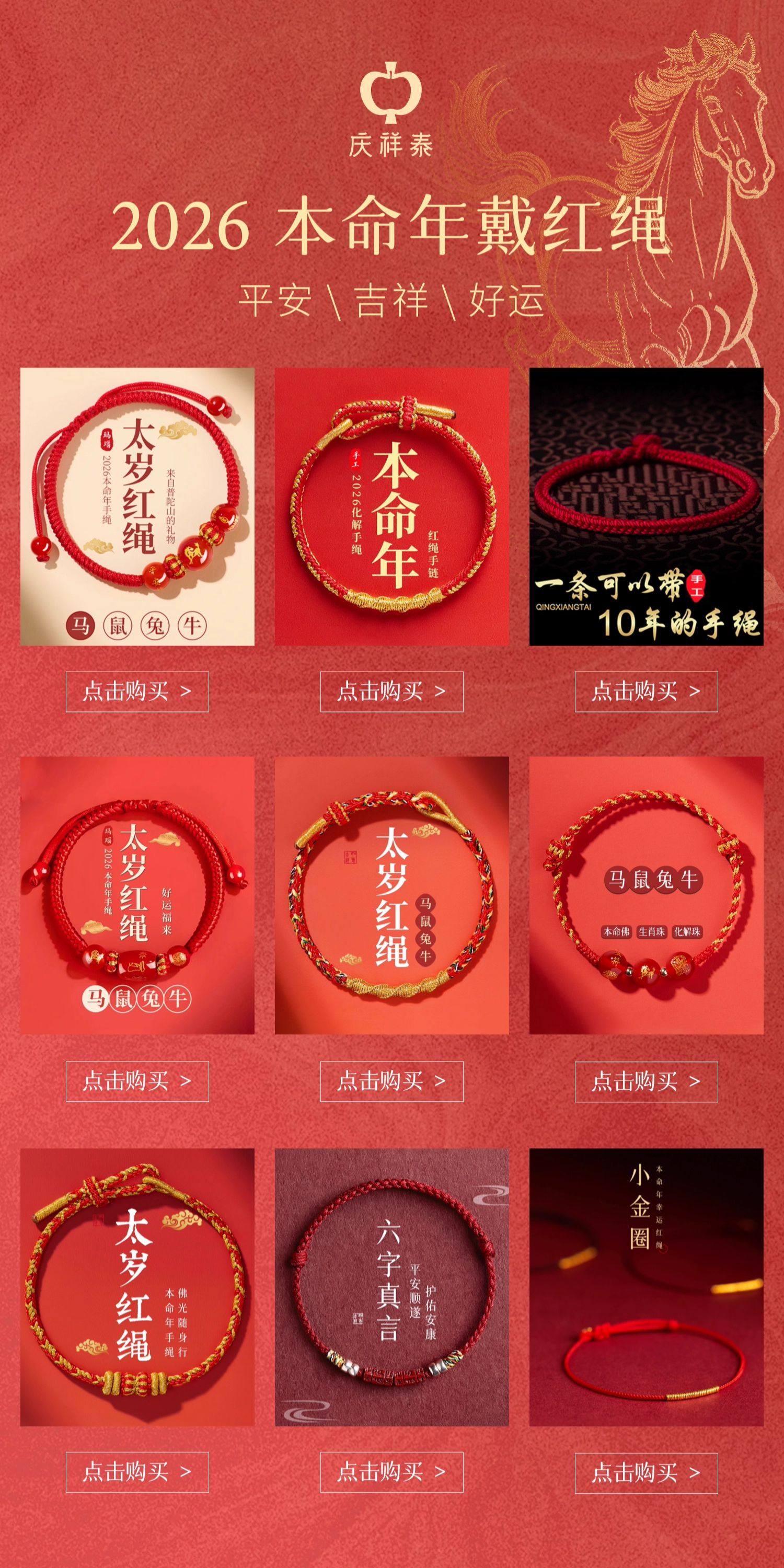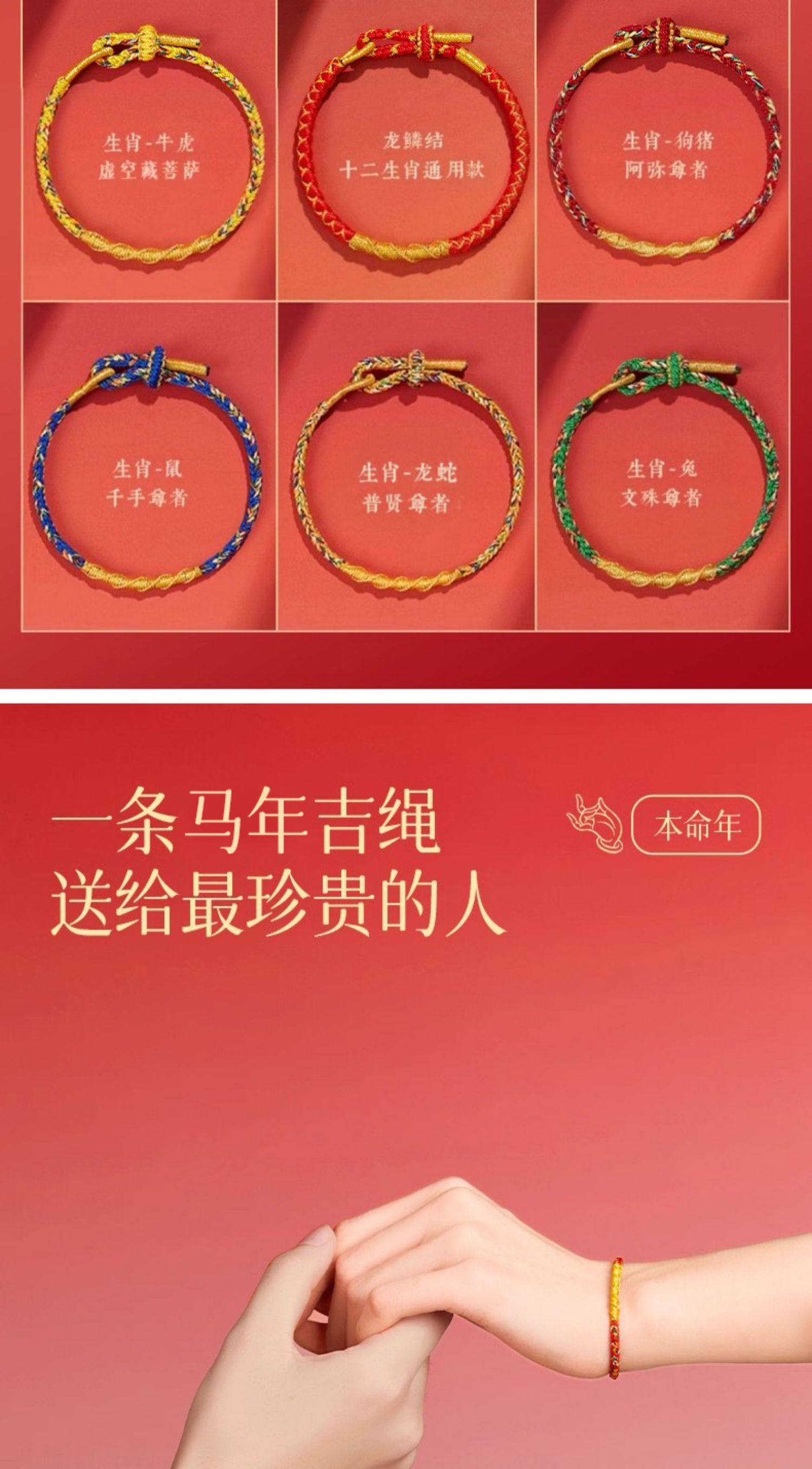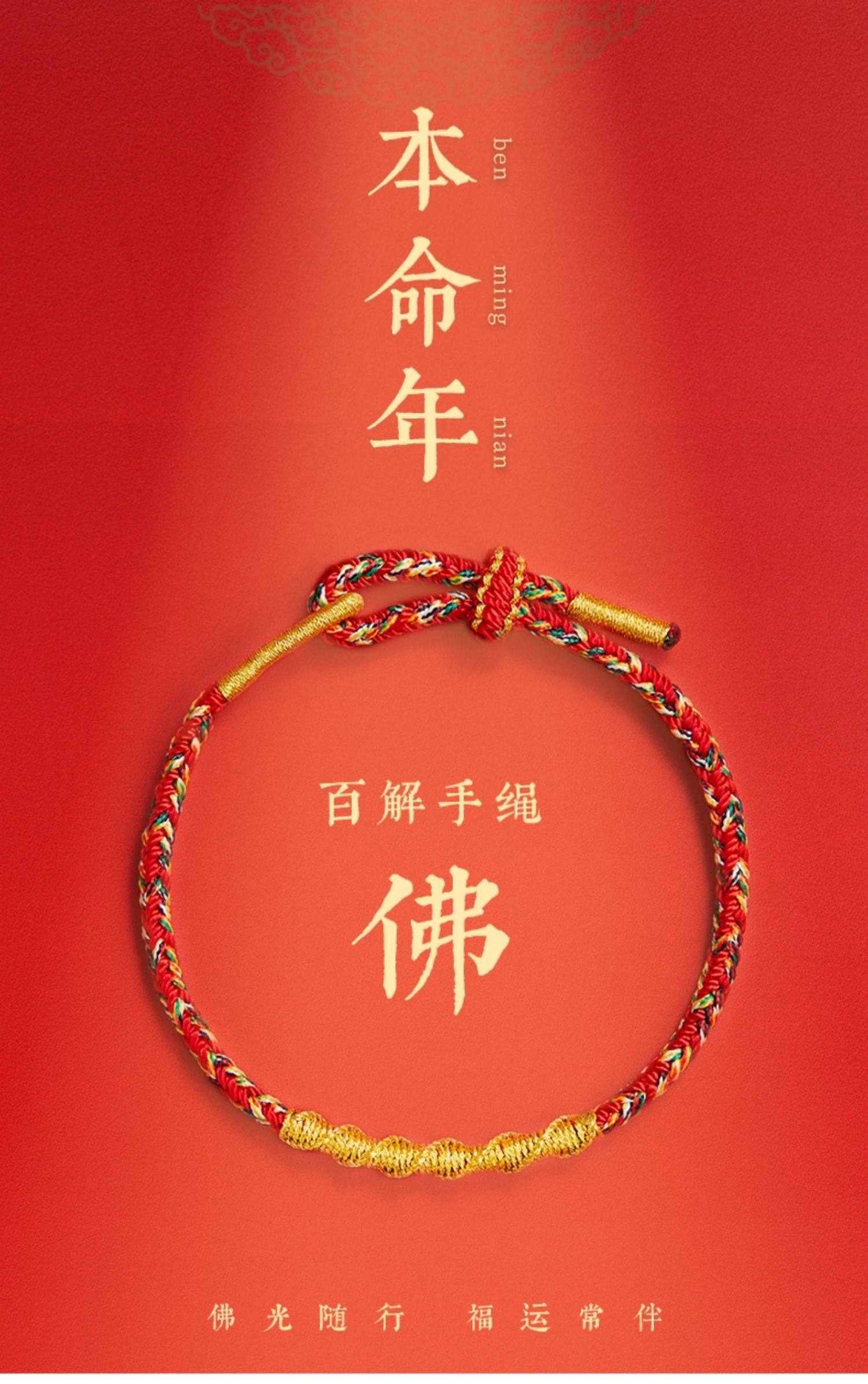 Putuo Mountain Qingxiangtai 2026 Zodiac Year Red String Bracelet for Women, Red Braided Rope for Men, Year of the Horse Tai Sui Gift