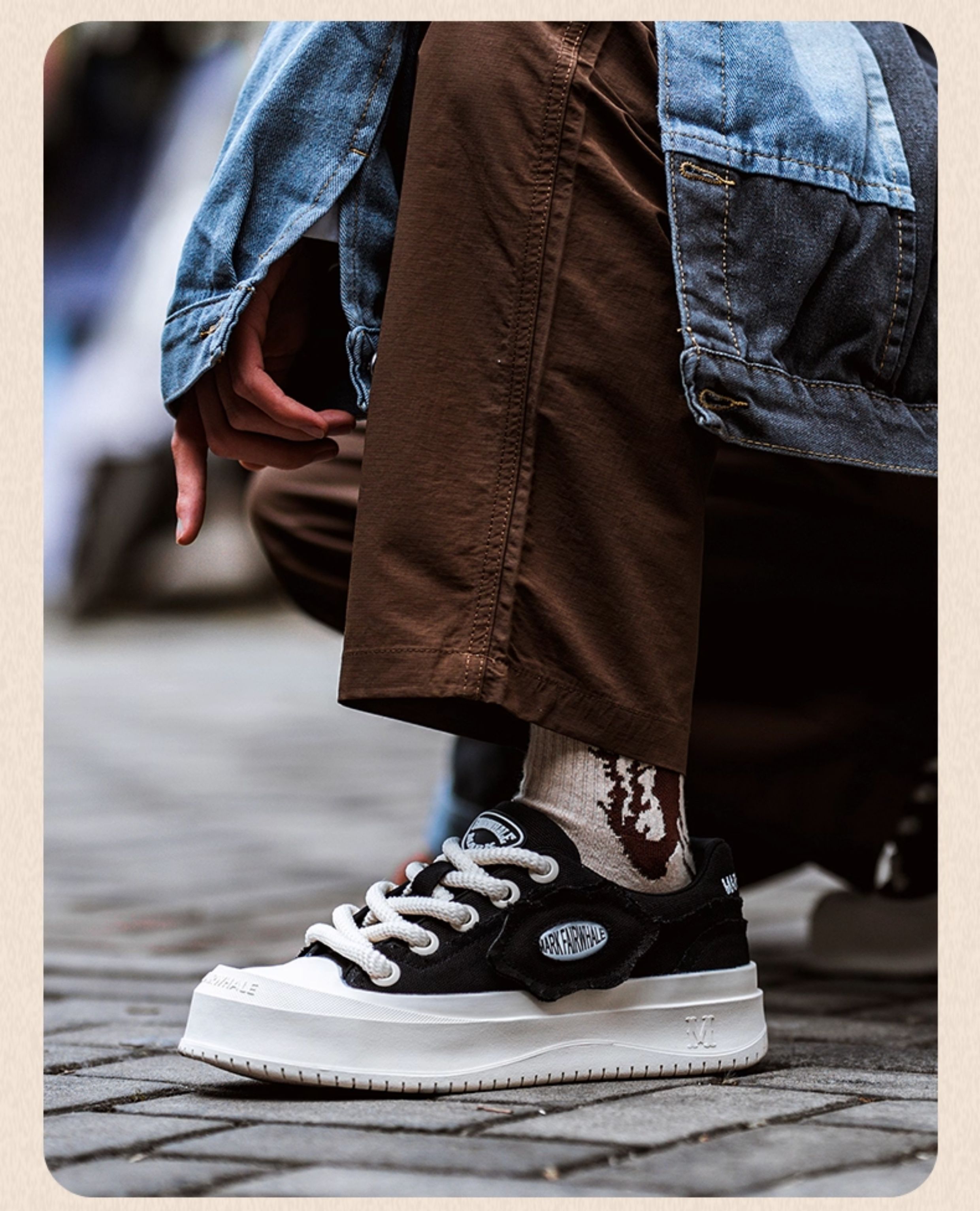 Mark Huafei Canvas Shoes for Men, Autumn and Winter Shoes, New Thick-Soled Height-Increasing Casual Sneakers, Versatile Trendy Shoes