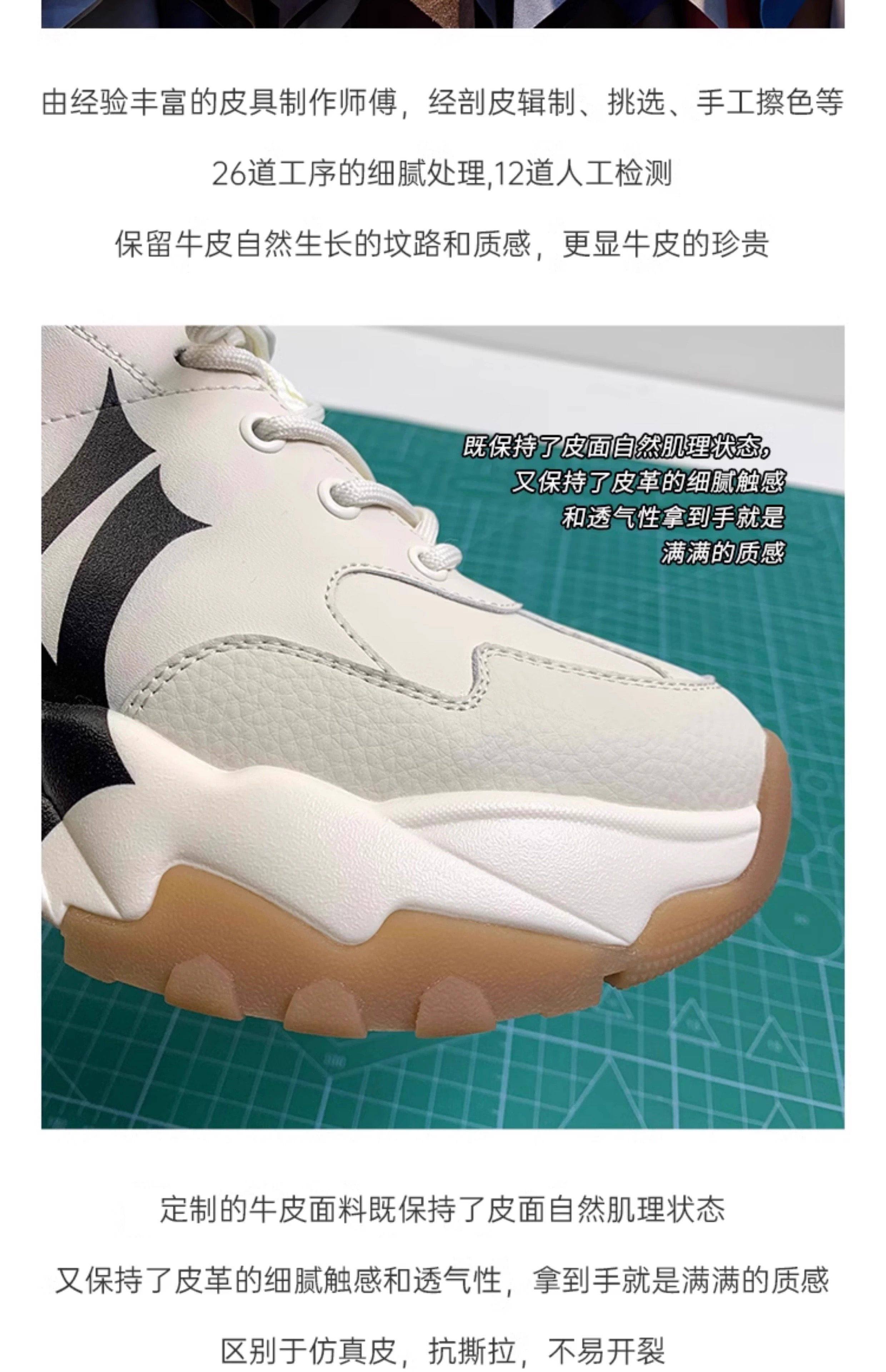 Hong Kong Thick-Soled Dad Shoes for Women 2025 Spring and Autumn New Versatile Lace-Up Trendy Platform Sole Genuine Leather Casual Sneakers