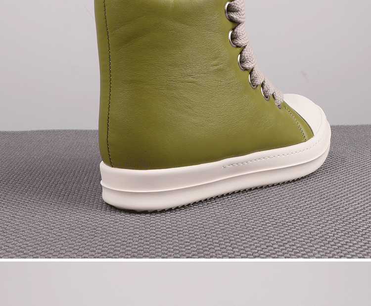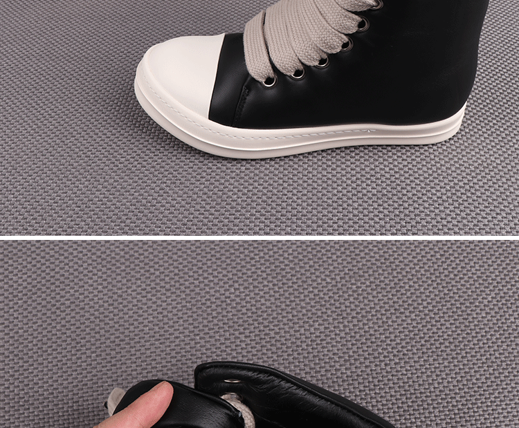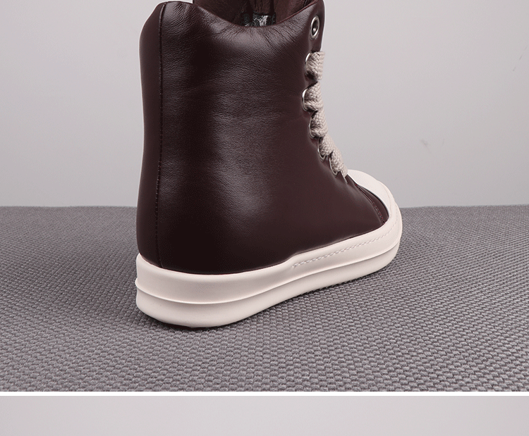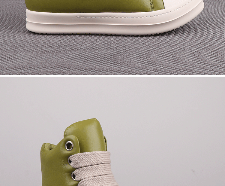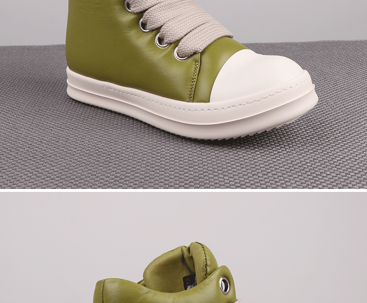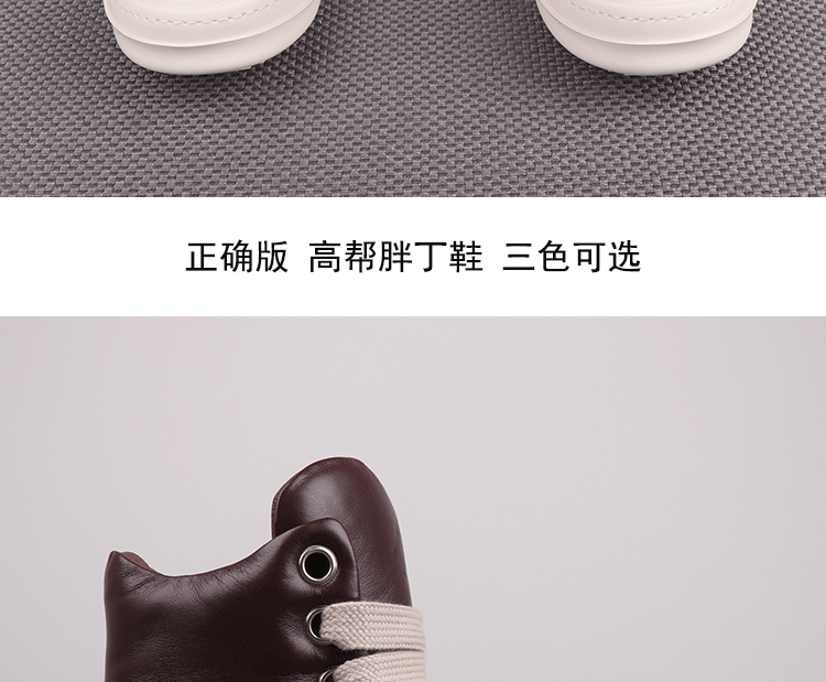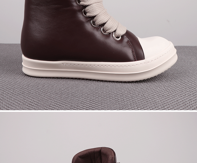 Spring New High-Top Shoes Ro Bread Shoes Men's Genuine Leather Heightening Thick-Soled Sneakers Fat Shoes Women's Goatskin Short Boots 2025