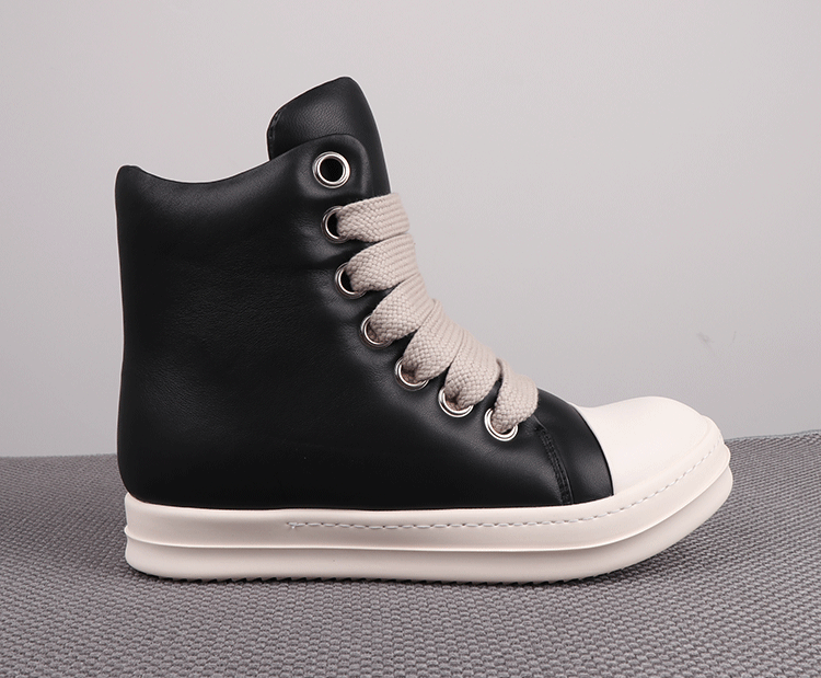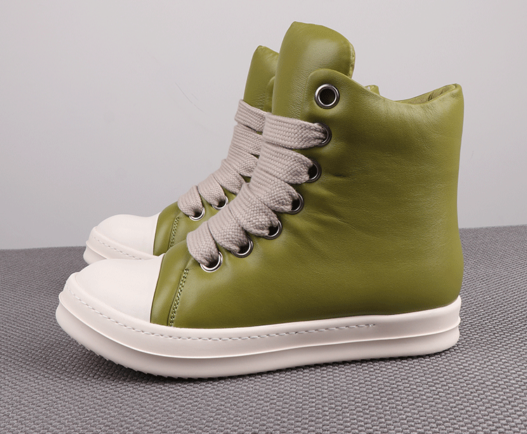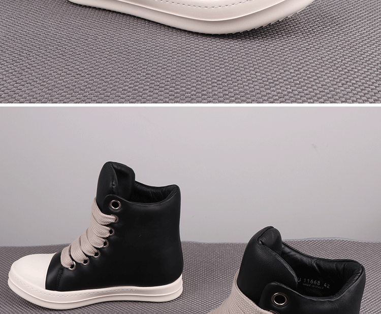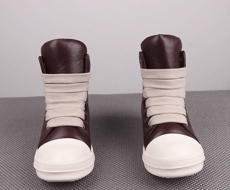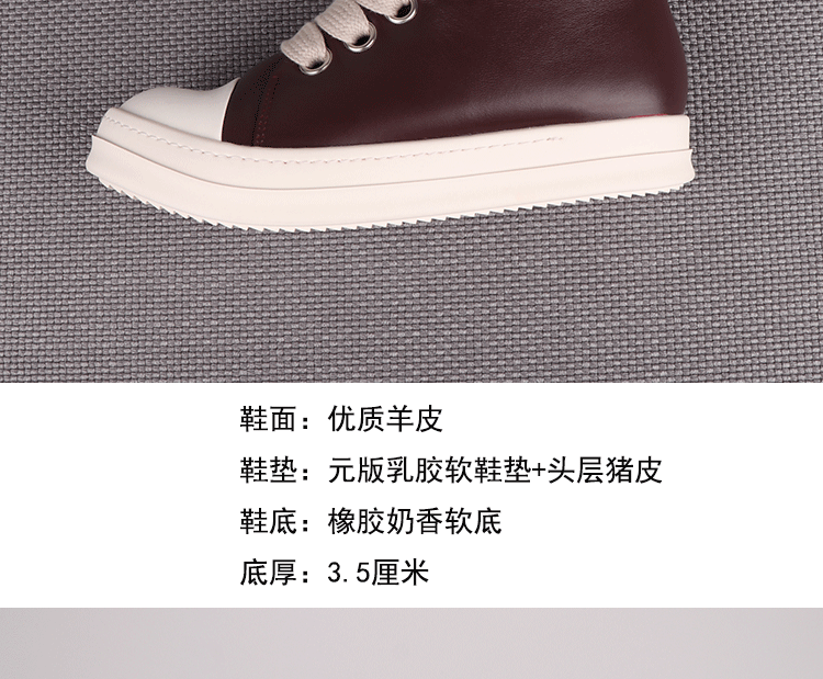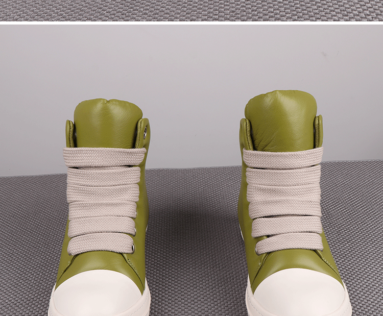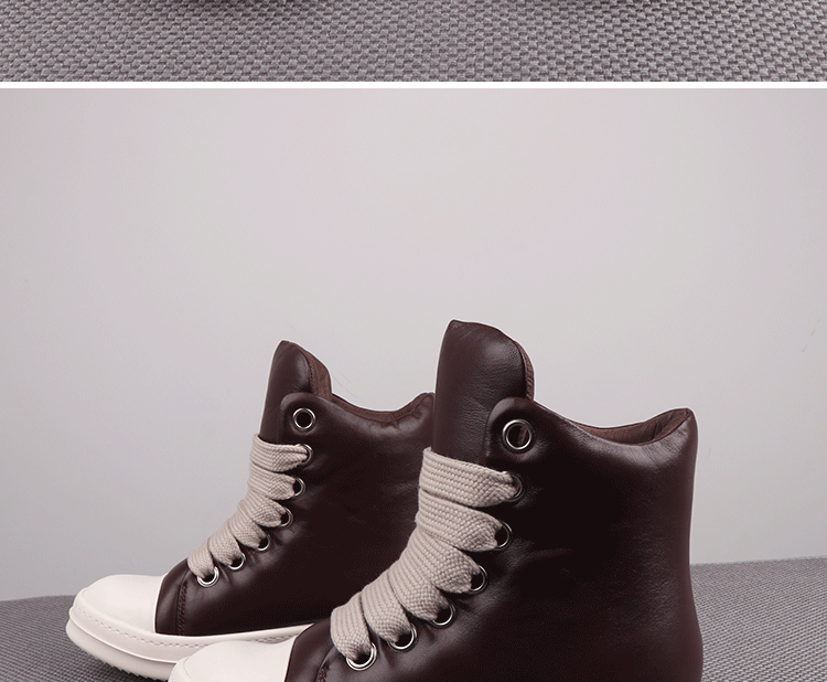 Spring New High-Top Shoes Ro Bread Shoes Men's Genuine Leather Heightening Thick-Soled Sneakers Fat Shoes Women's Goatskin Short Boots 2025