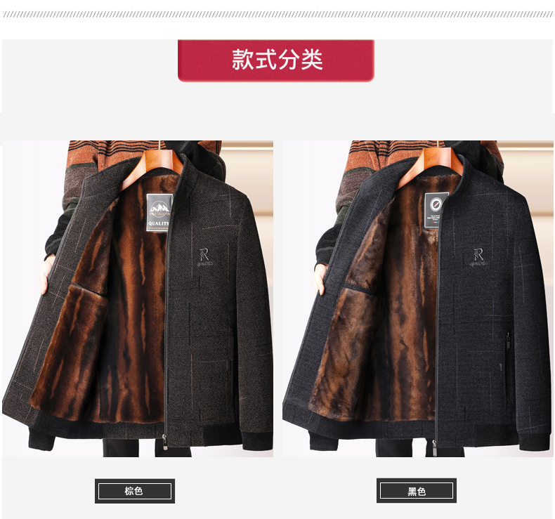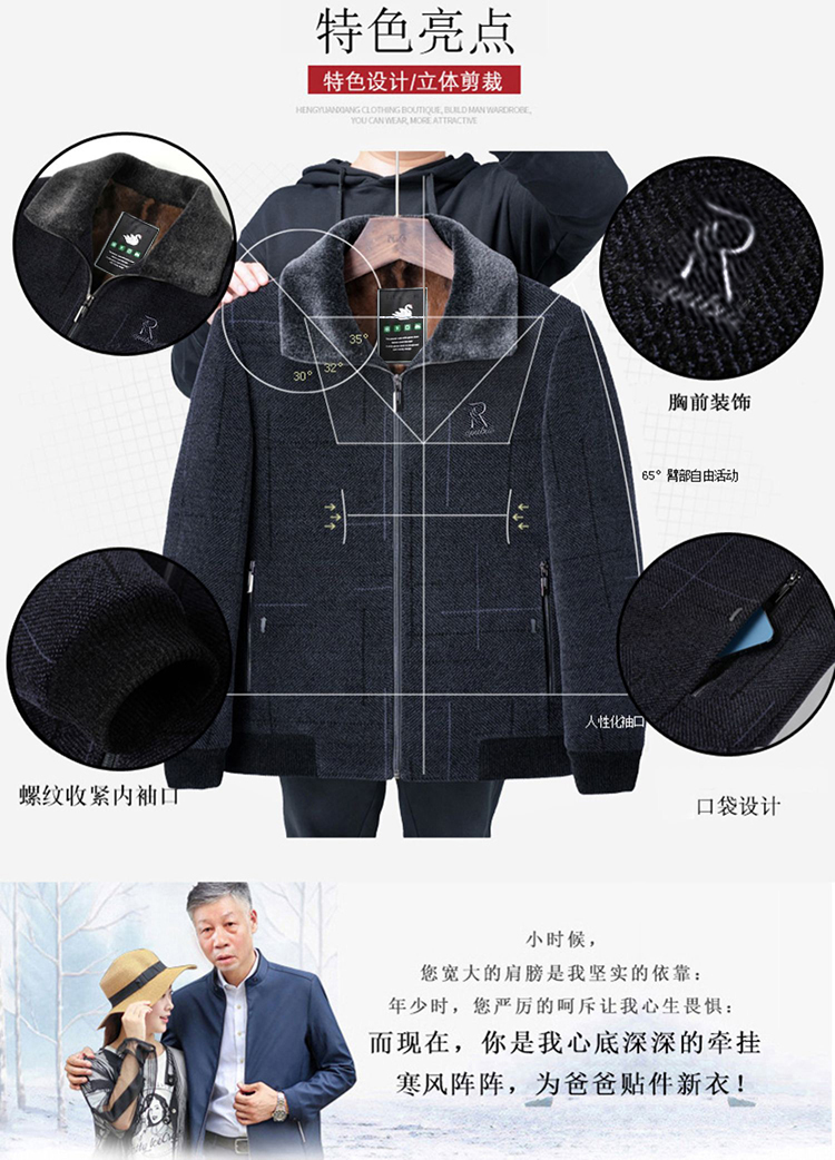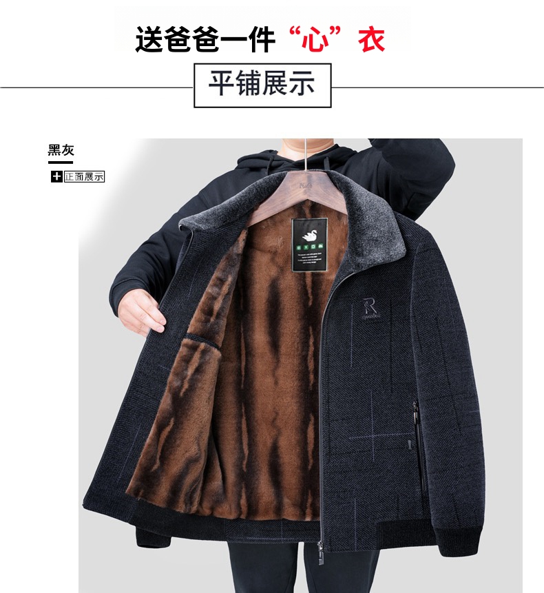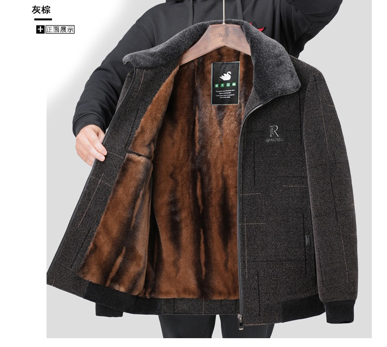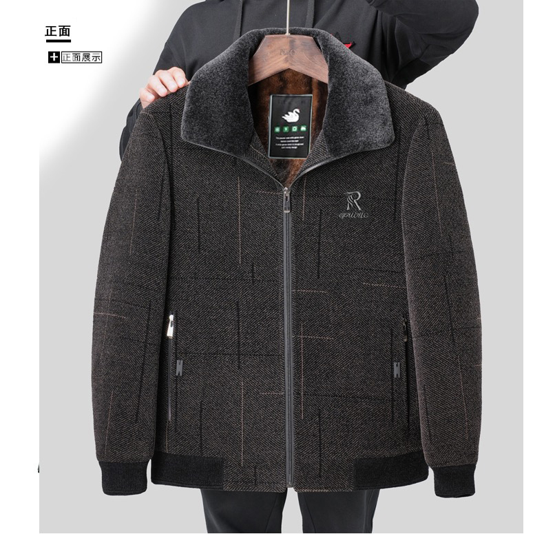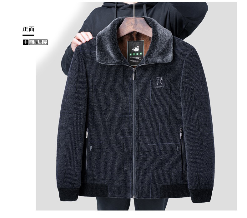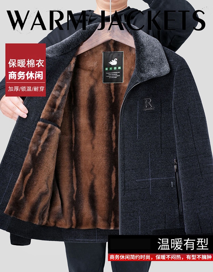 Middle-Aged and Elderly Men's Chenille Jacket, Winter Woolen Cotton Coat for Middle-Aged Men, Dad's Winter Clothing, Fleece-Lined and Thickened Cotton Jacket