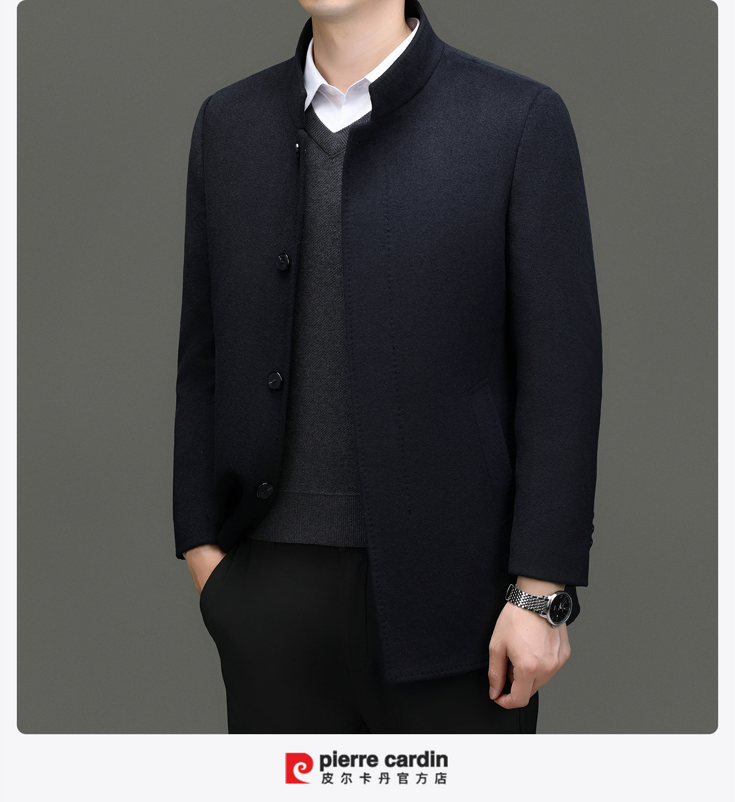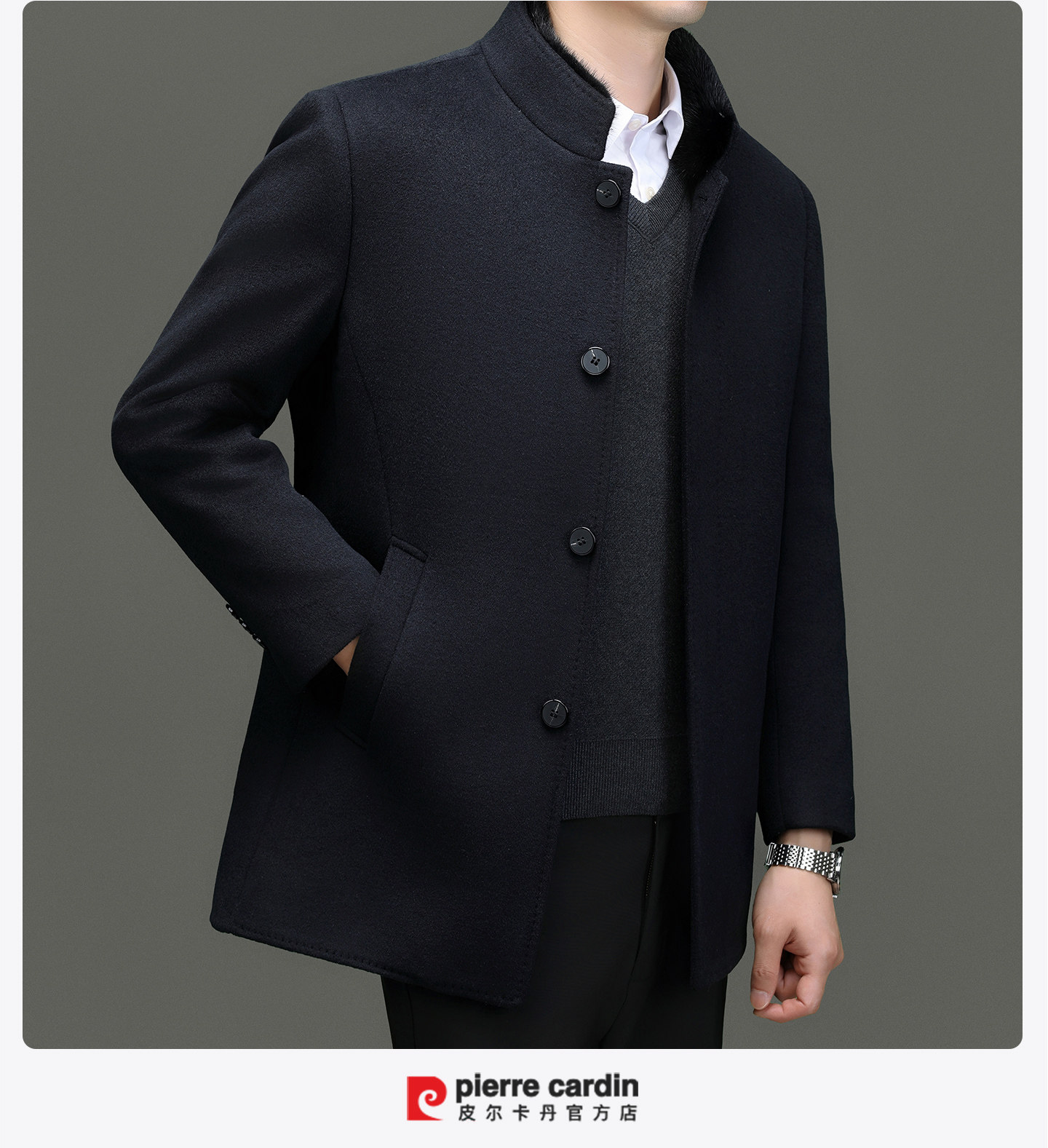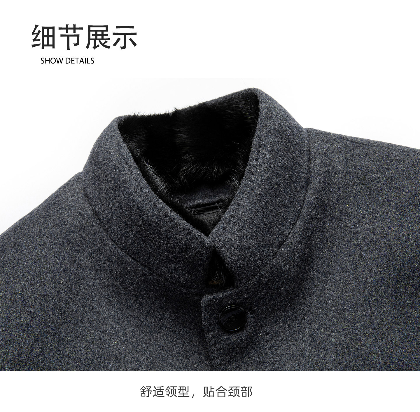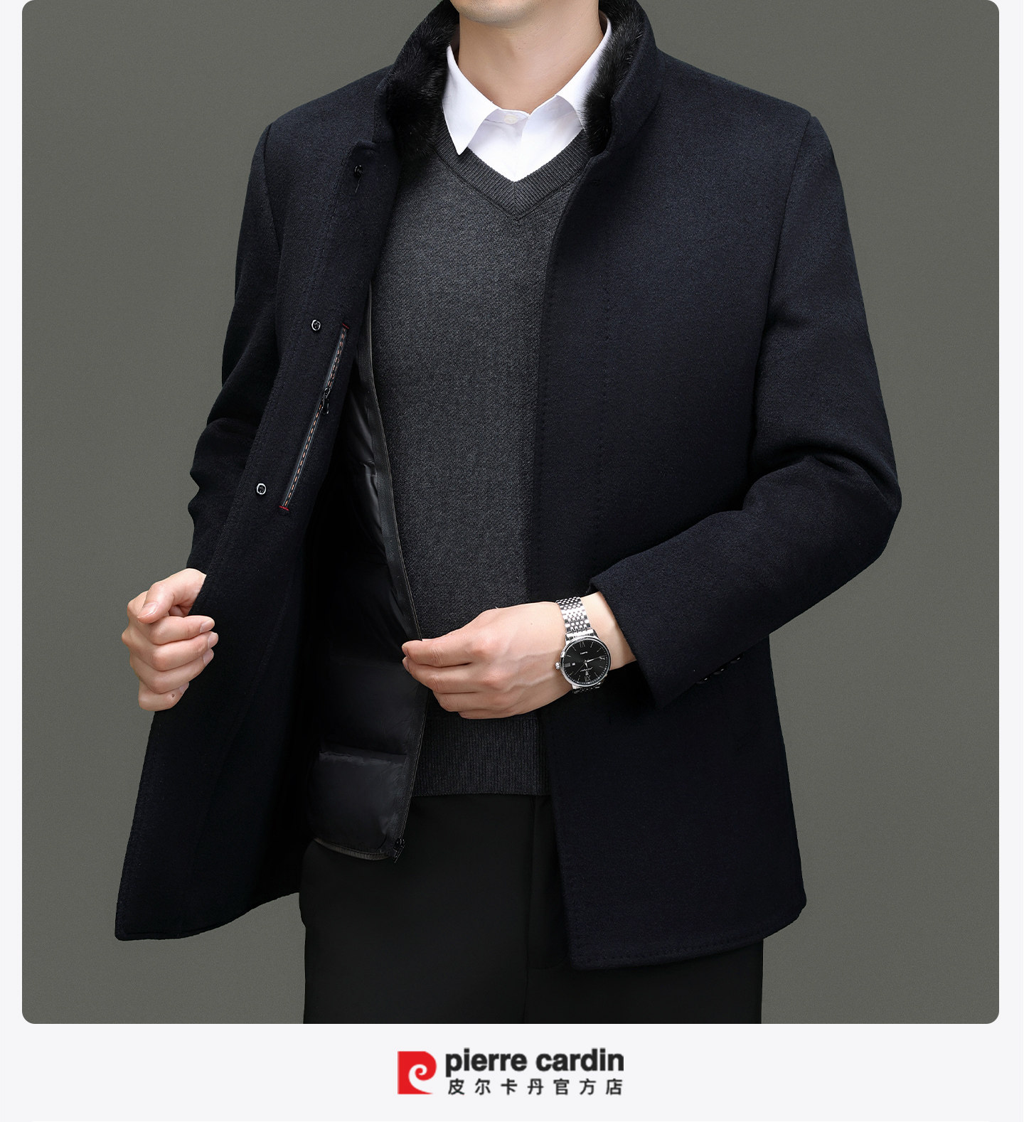 Pierre Cardin Double-Sided Woolen Coat for Men with Mink Fur Collar and down Lining, Winter Woolen Overcoat for Dad, Mid-Length